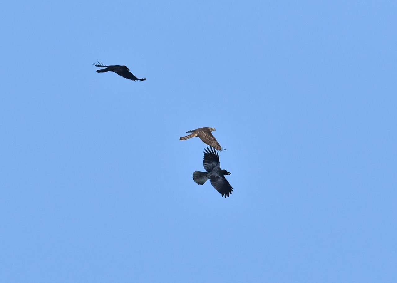 先ずは、3羽の固体が採餌しているシーンです。1羽は交代で周囲を見張っており、なかなか3羽とも首を上げるシーンが取れません。