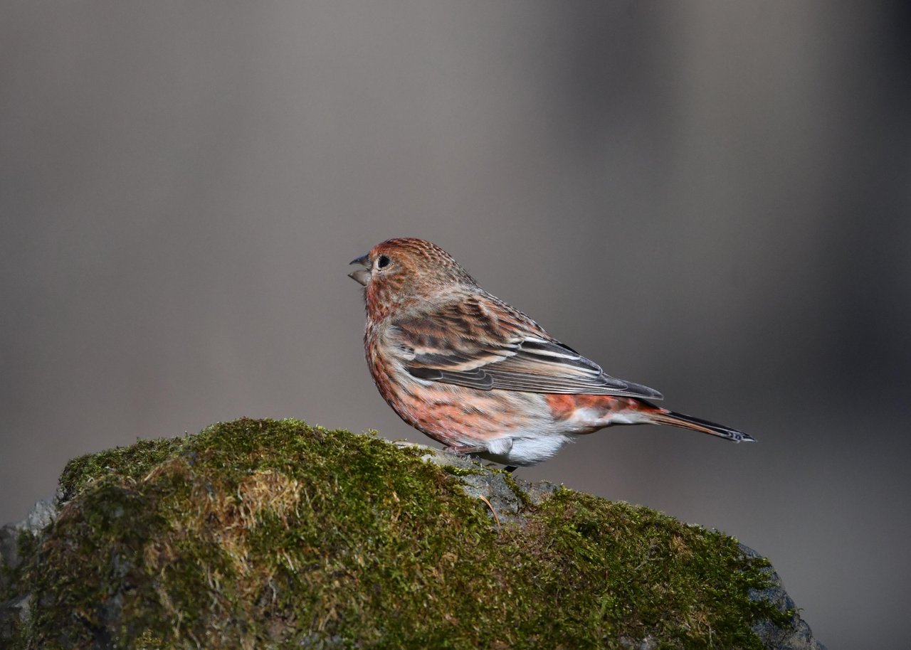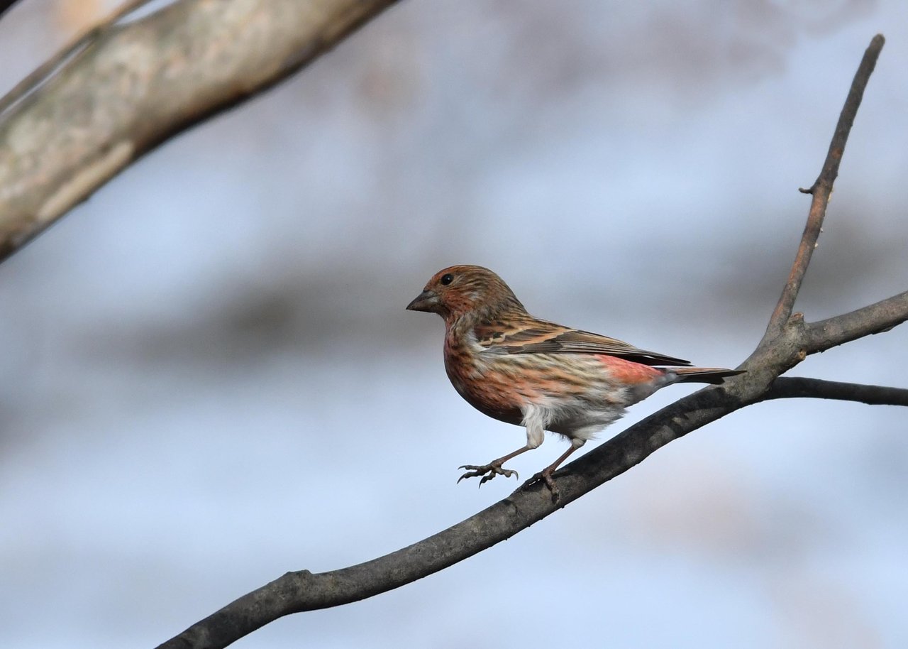 オオマシコがやって来るポイントで待つと、、、傍の高枝に群れがやってきました。