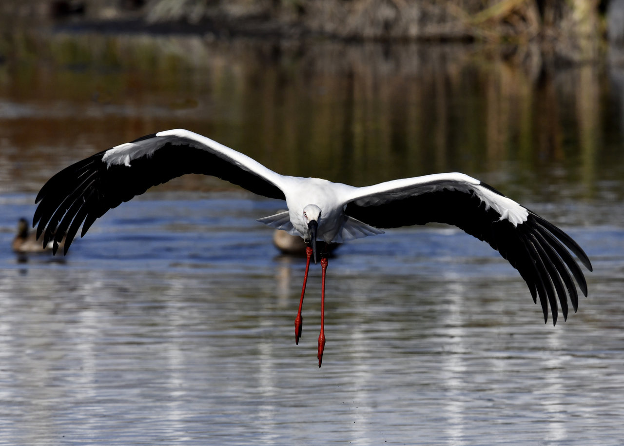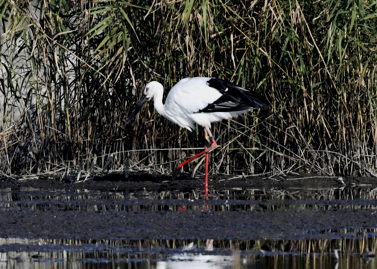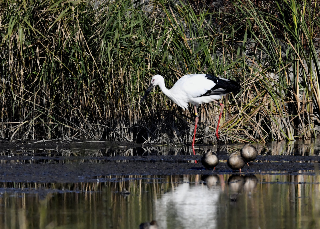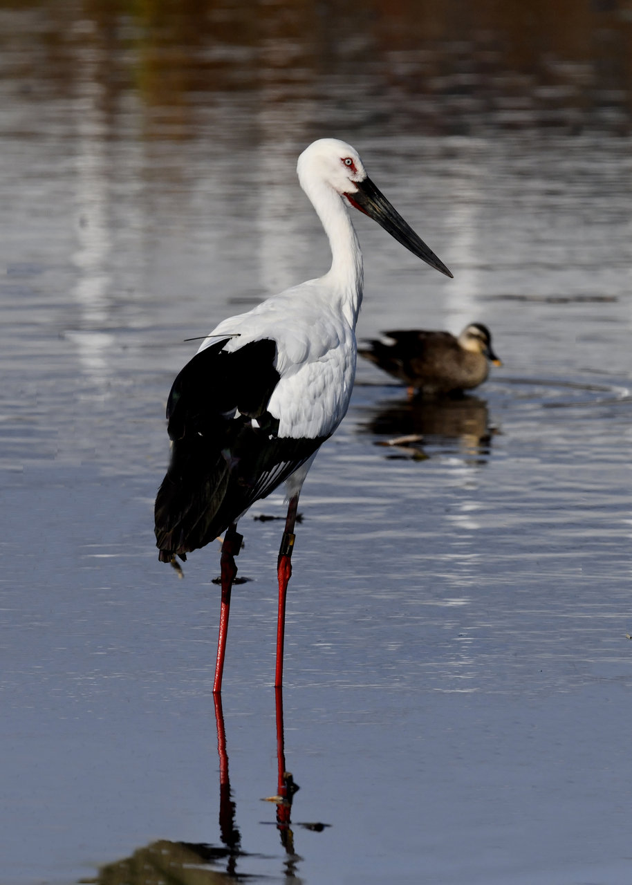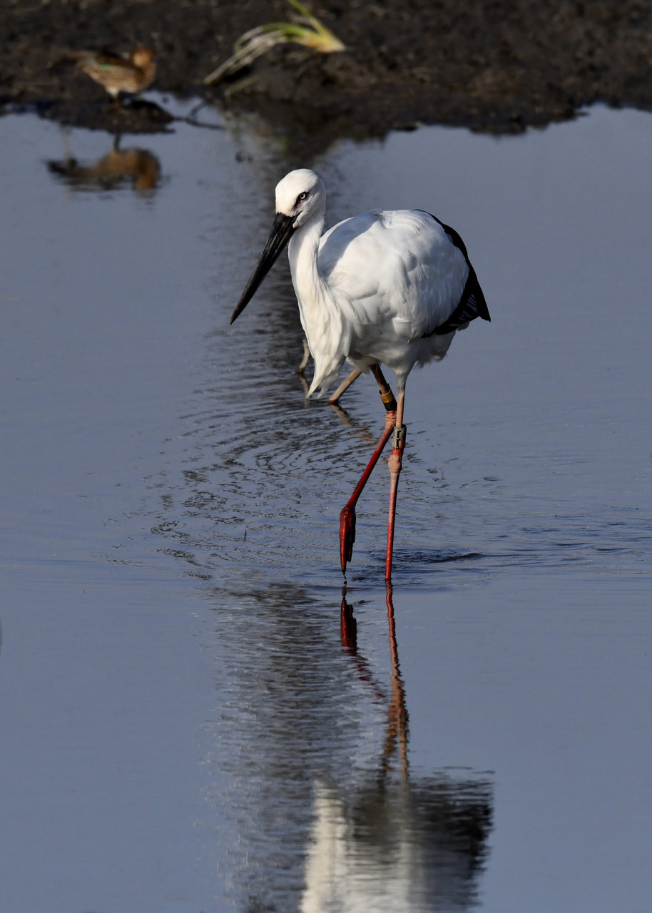 過日、近くの沼に来ていたコウノトリは少し前からこちらの調整池に来ており、もう1羽の