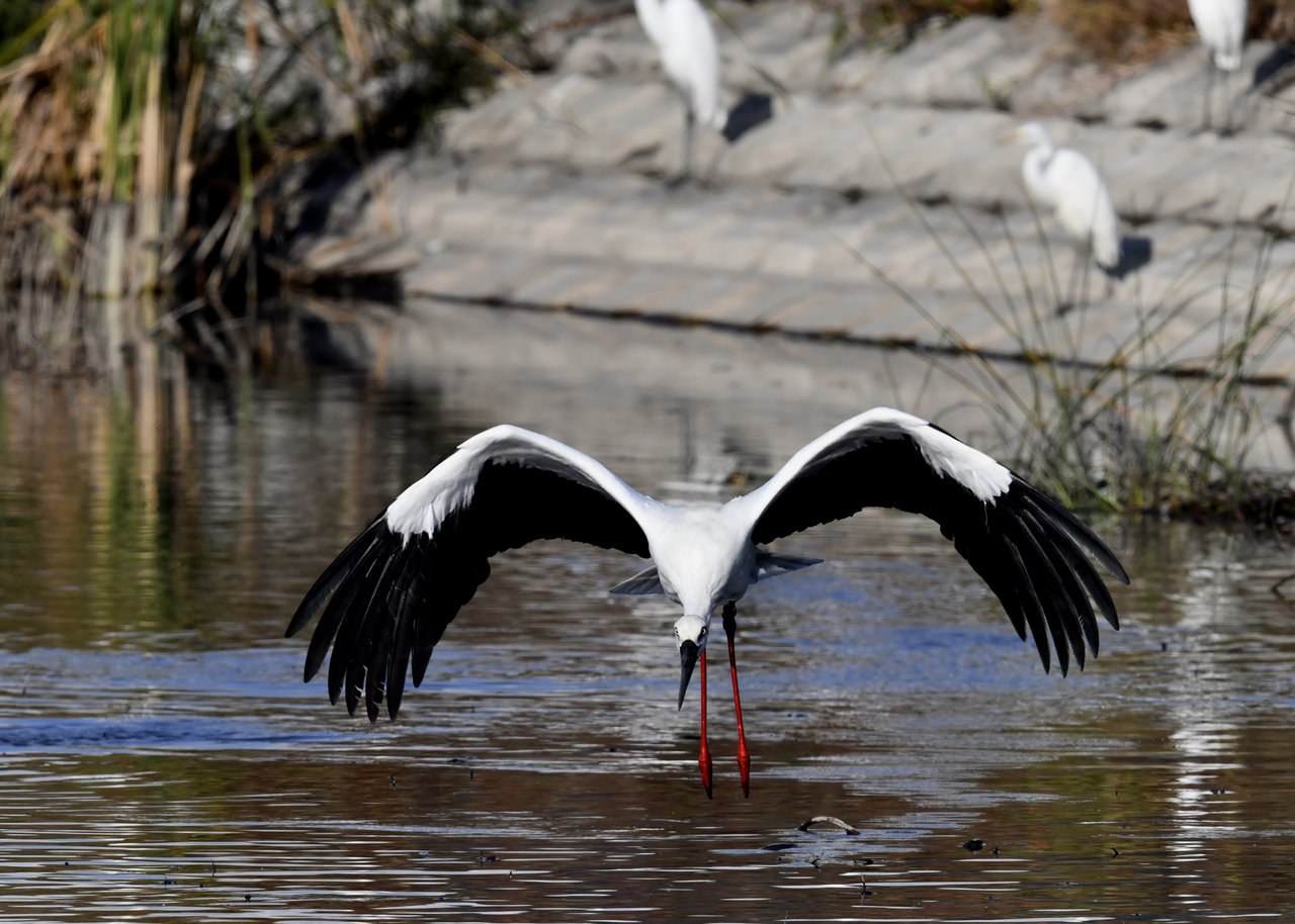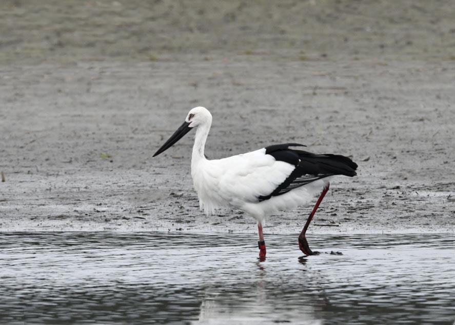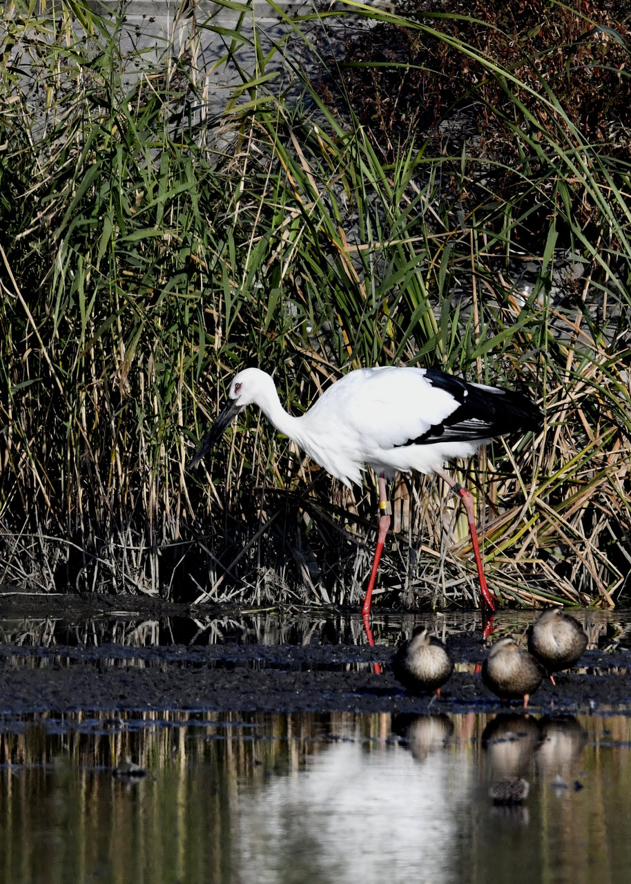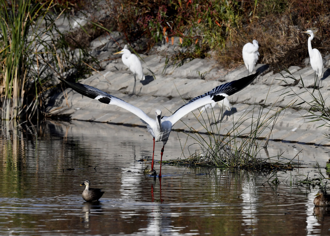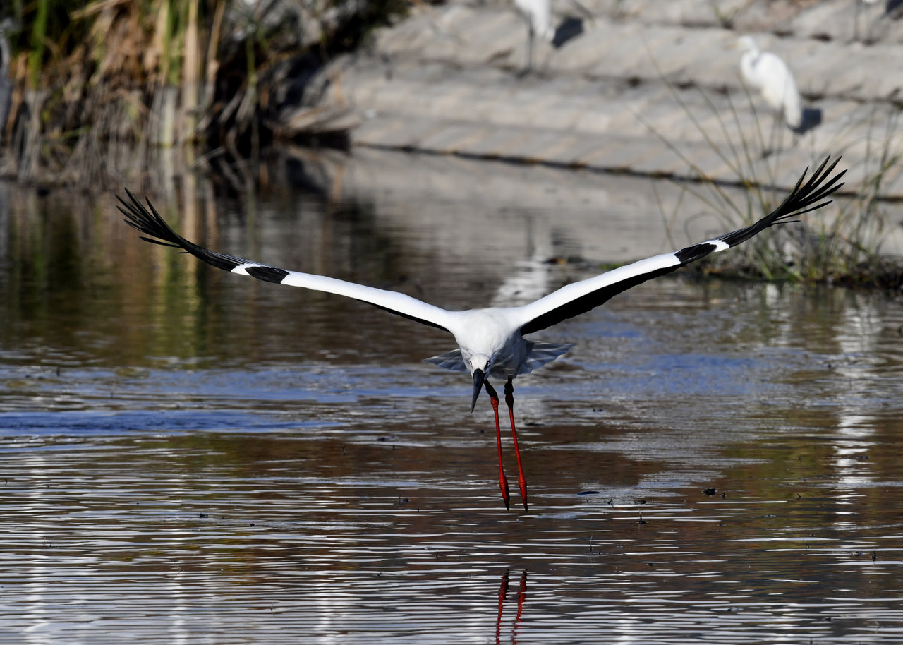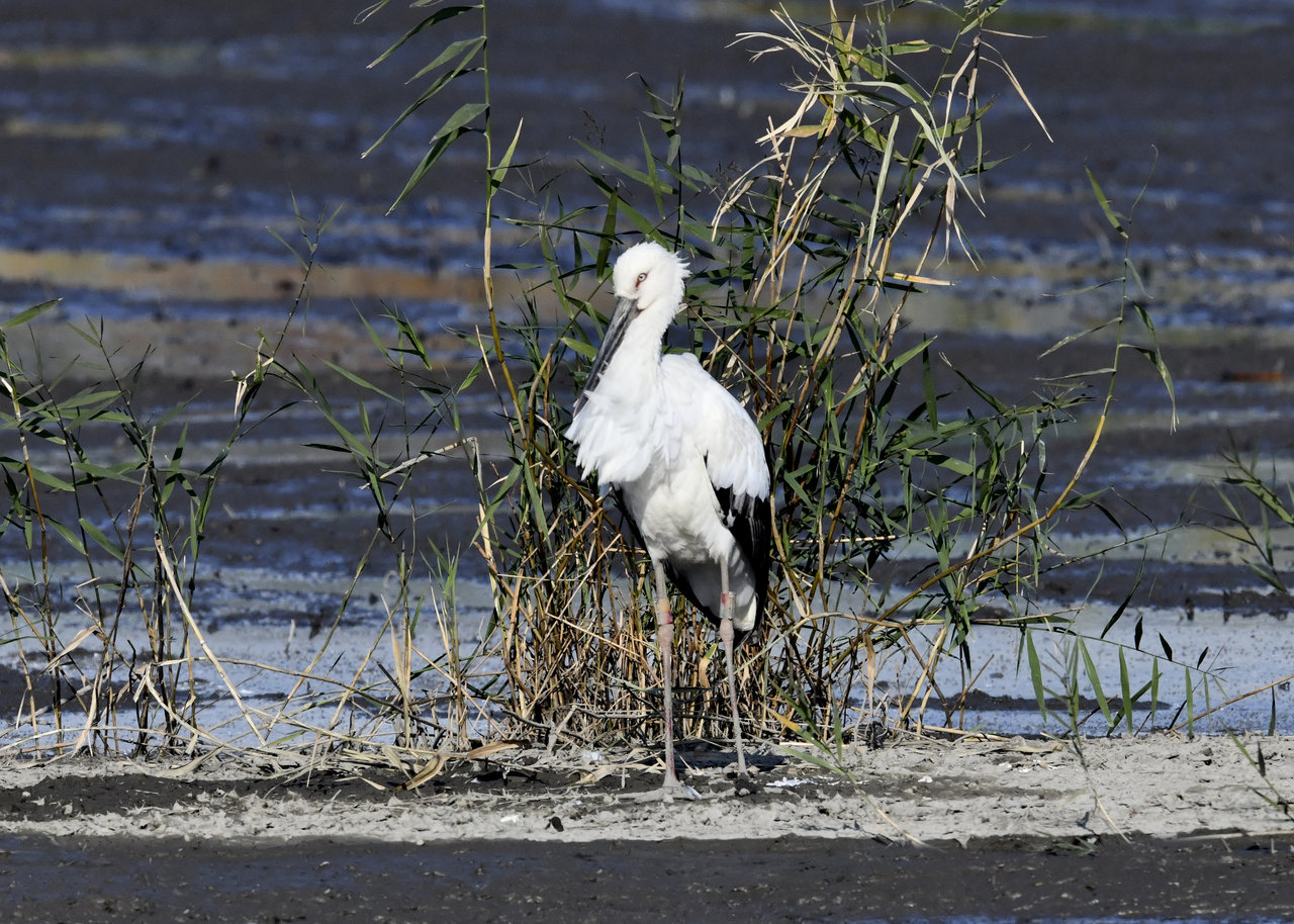 過日、近くの沼に来ていたコウノトリは少し前からこちらの調整池に来ており、もう1羽の