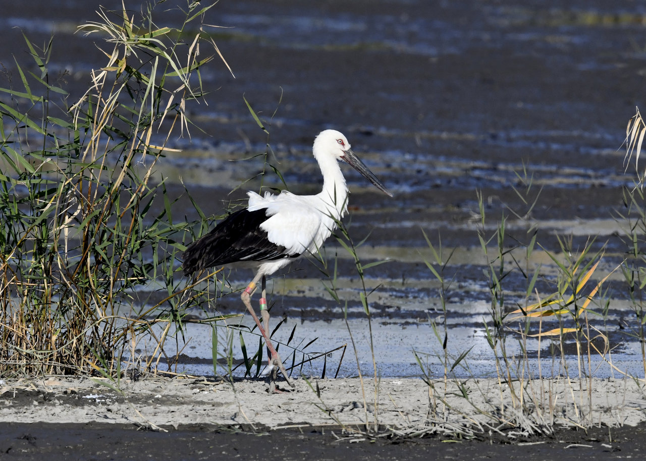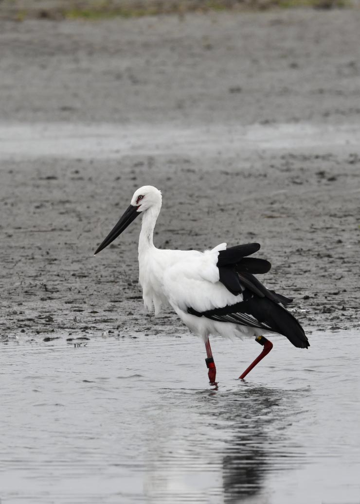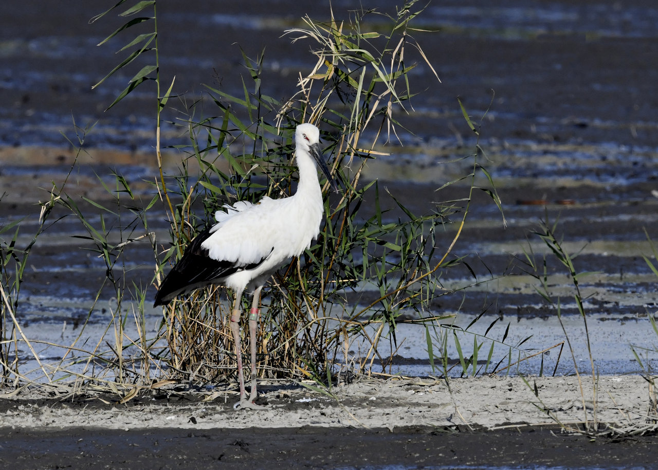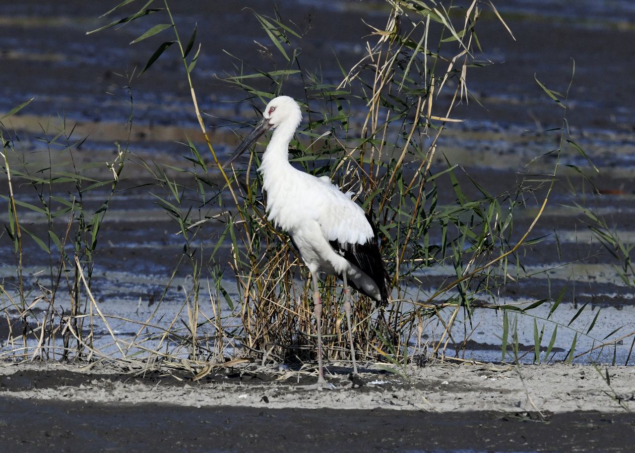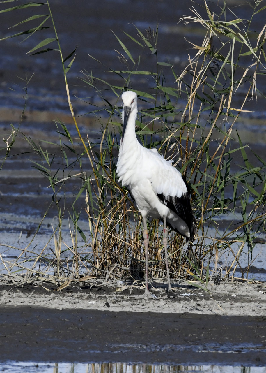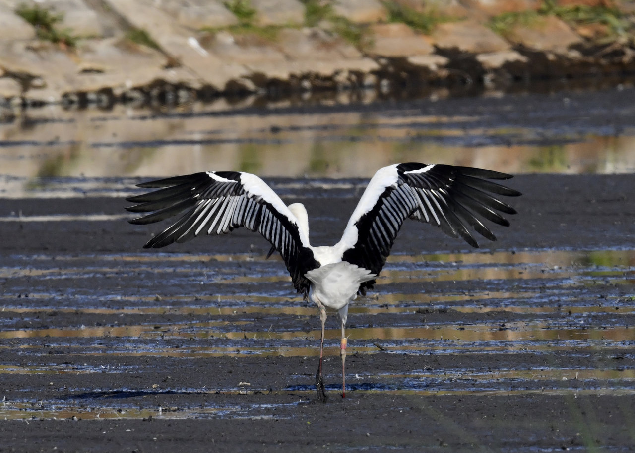 過日、近くの沼に来ていたコウノトリは少し前からこちらの調整池に来ており、もう1羽の