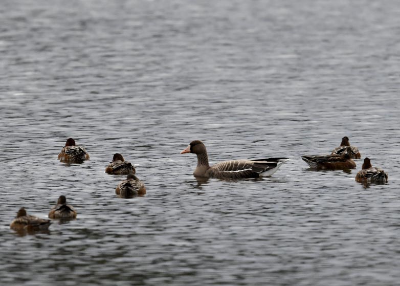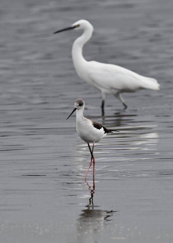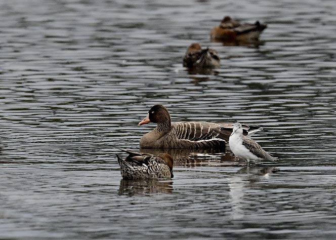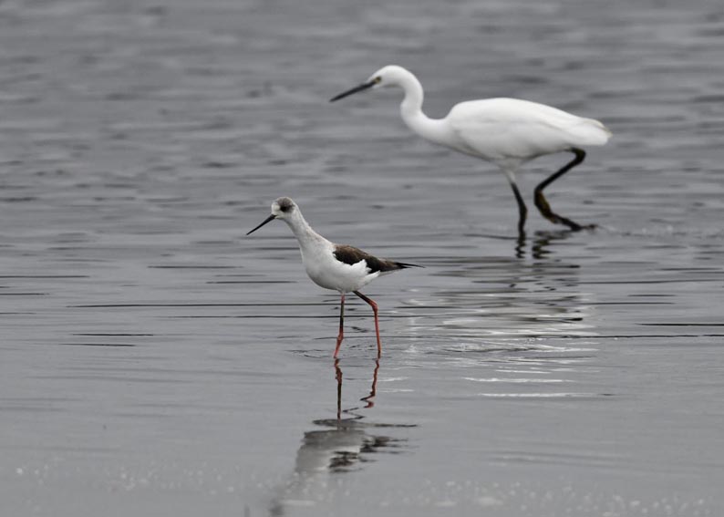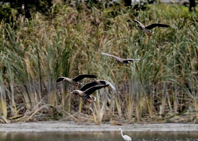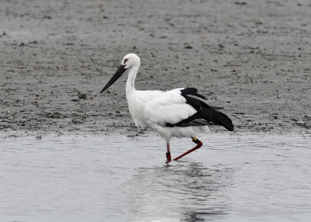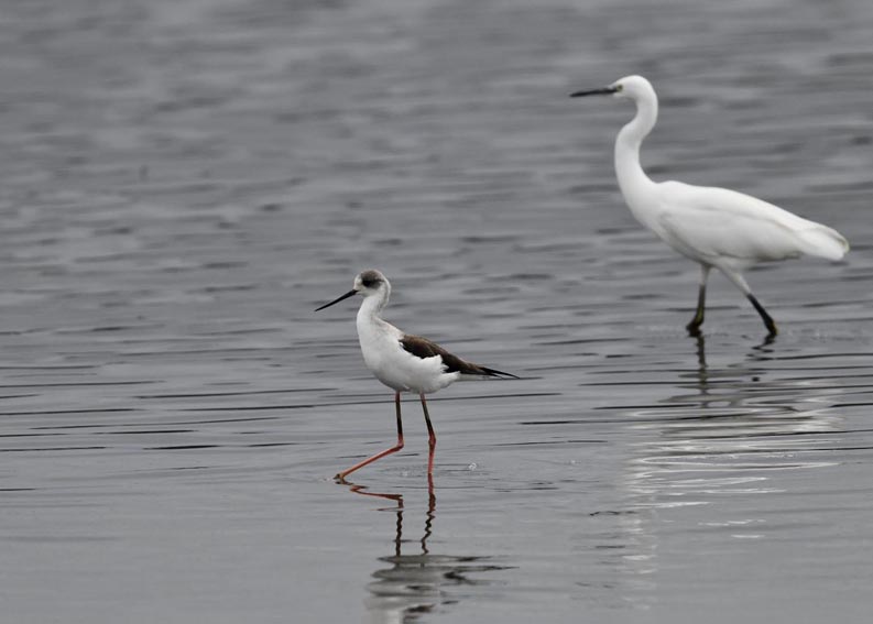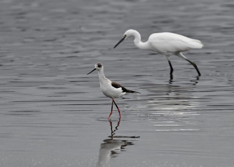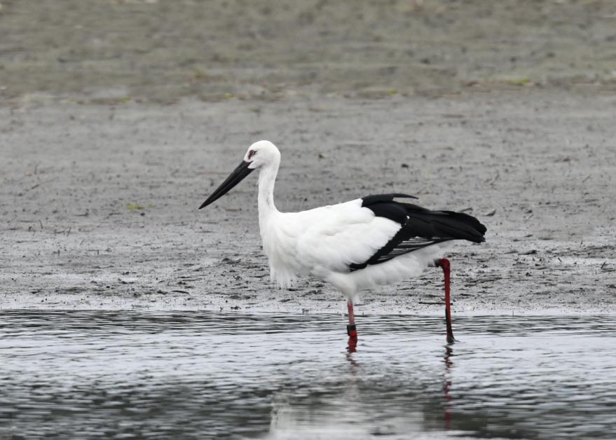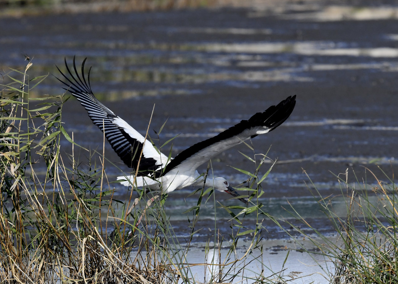 過日、近くの沼に来ていたコウノトリは少し前からこちらの調整池に来ており、もう1羽の