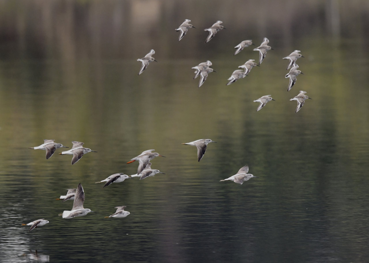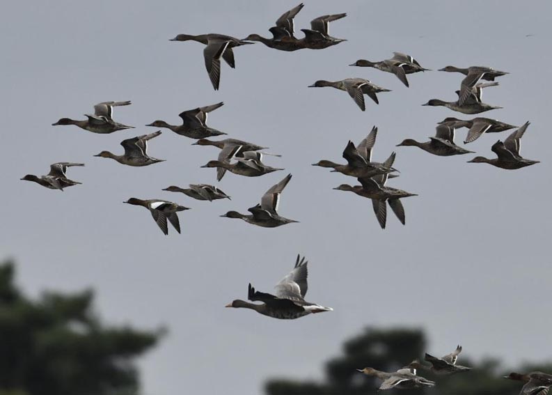 個体とともに2羽がこの調整池を塒としているようです。
