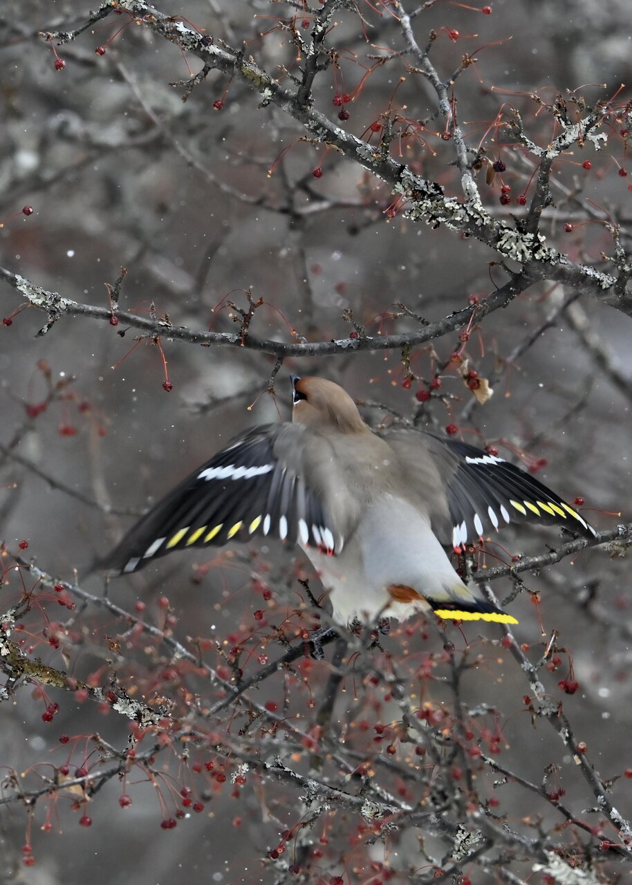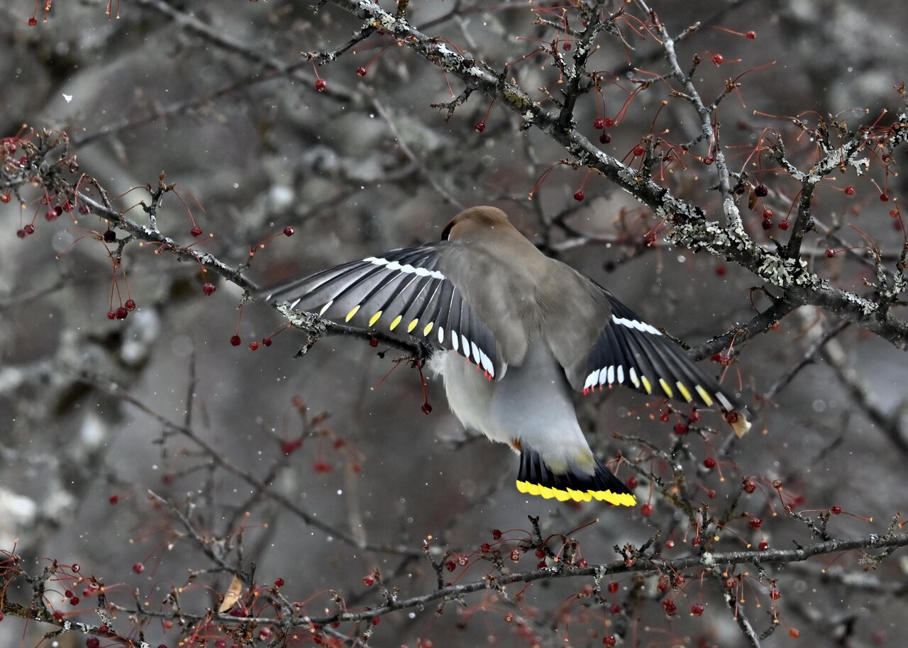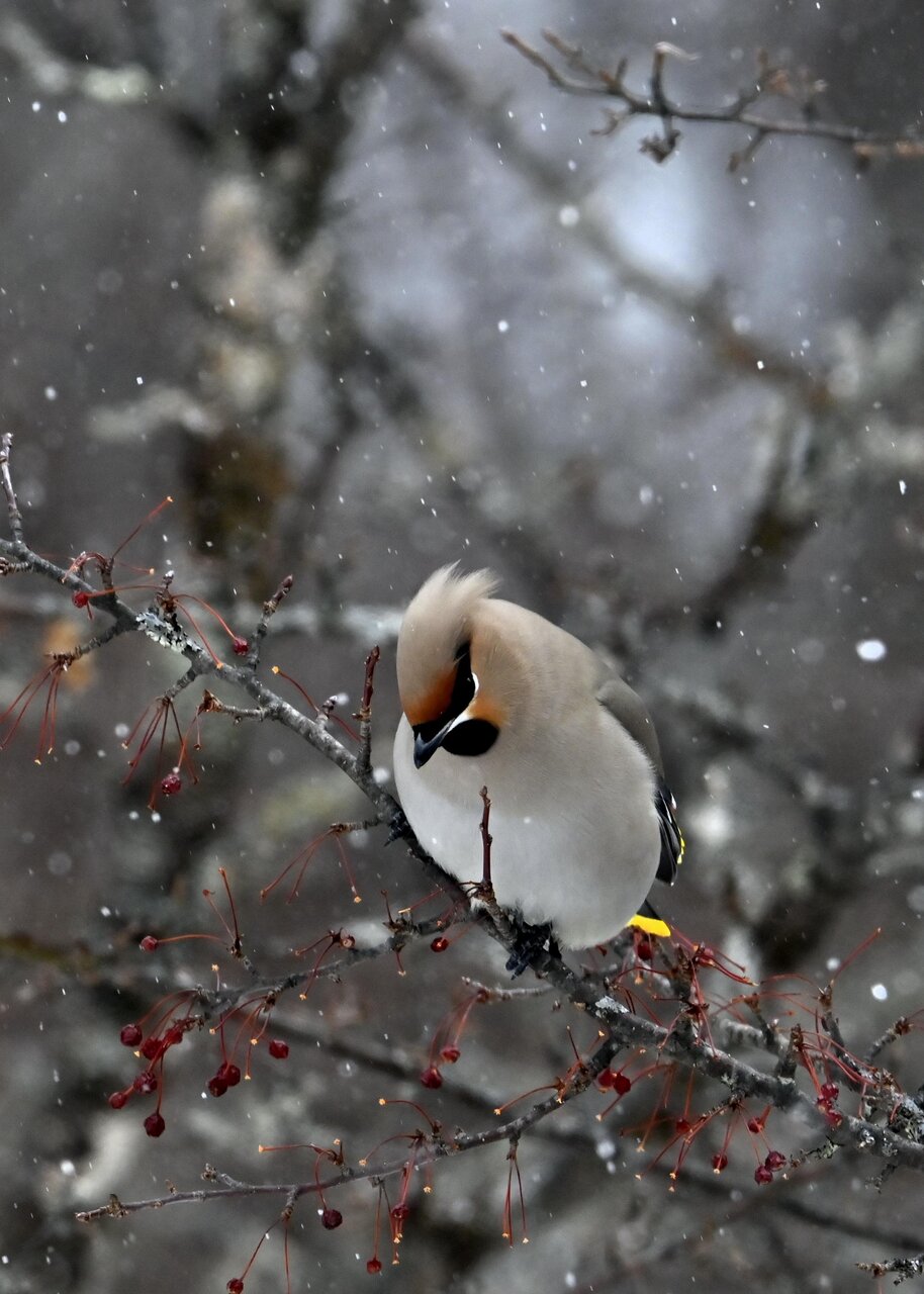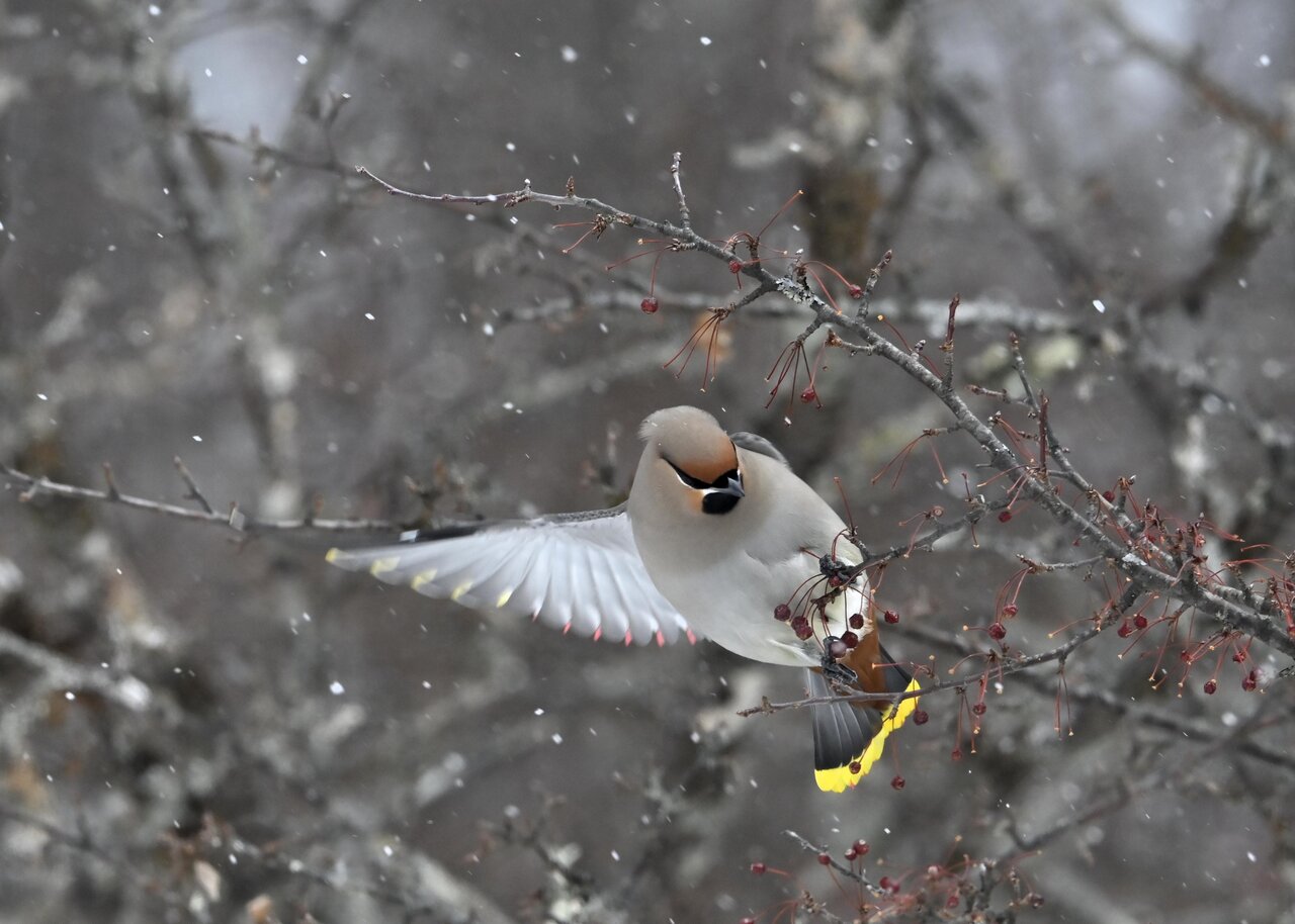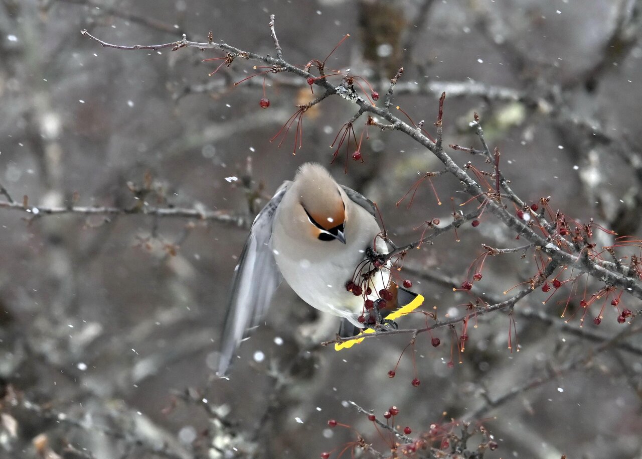 「降雪の中・キレンジャク」 撮影地 : 栃木県