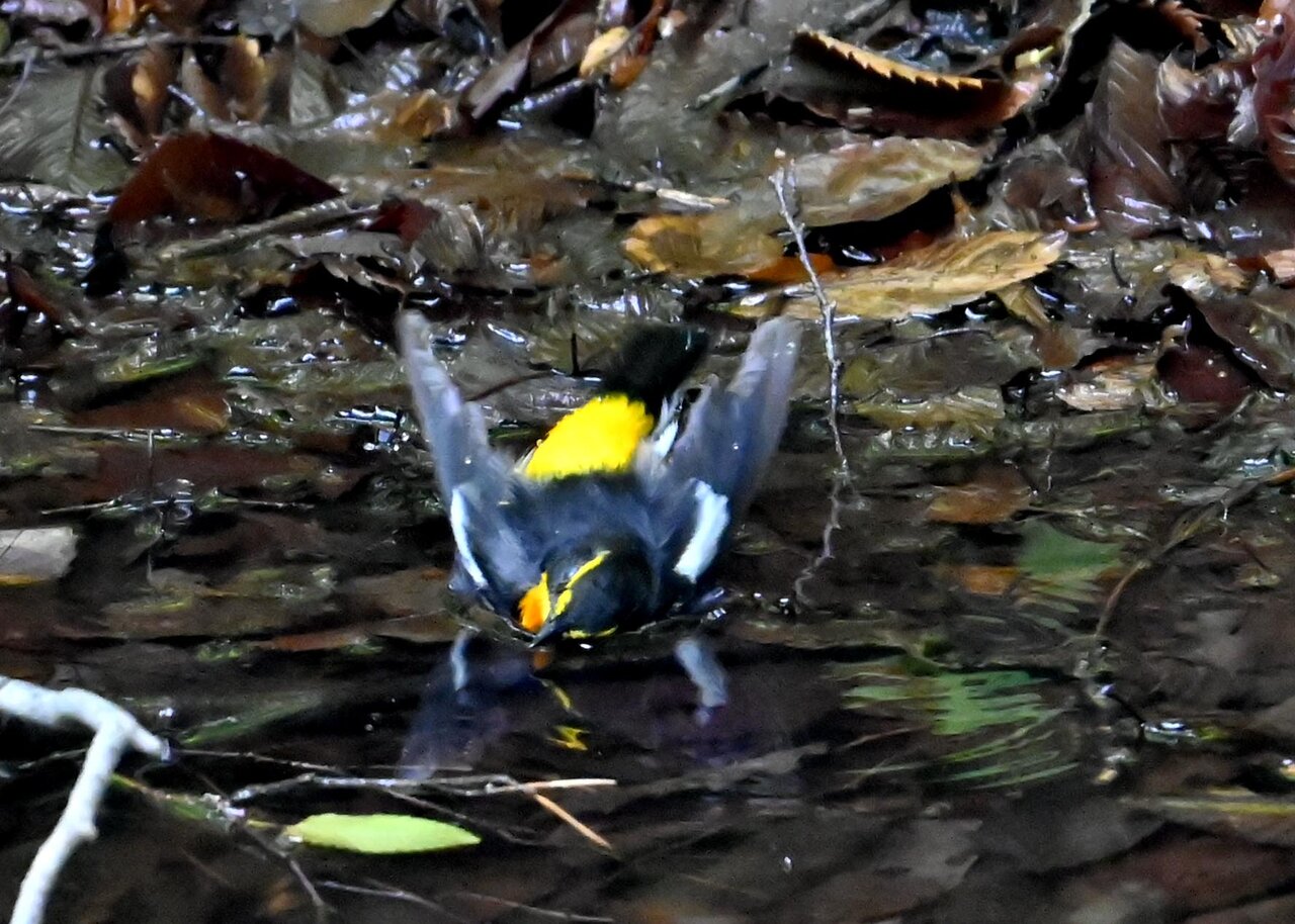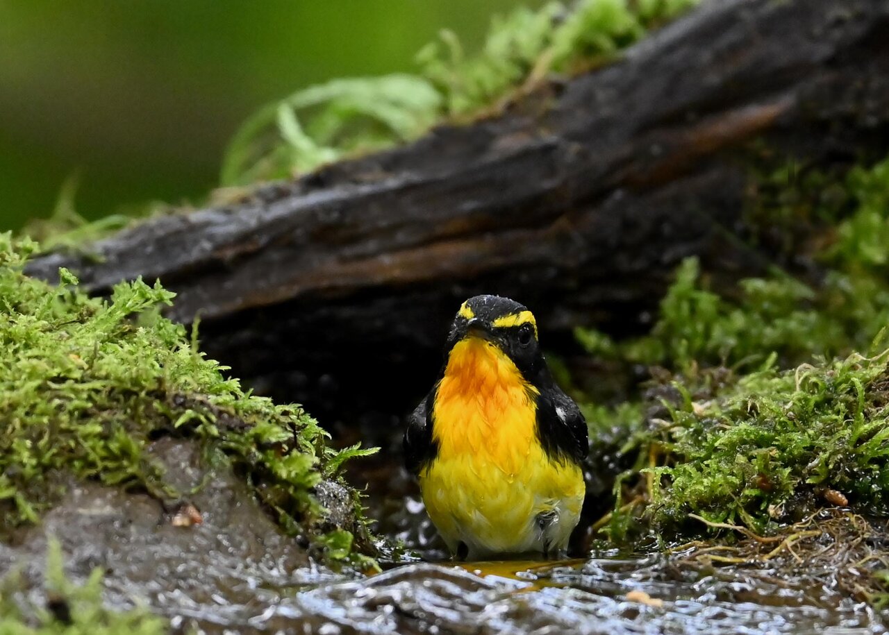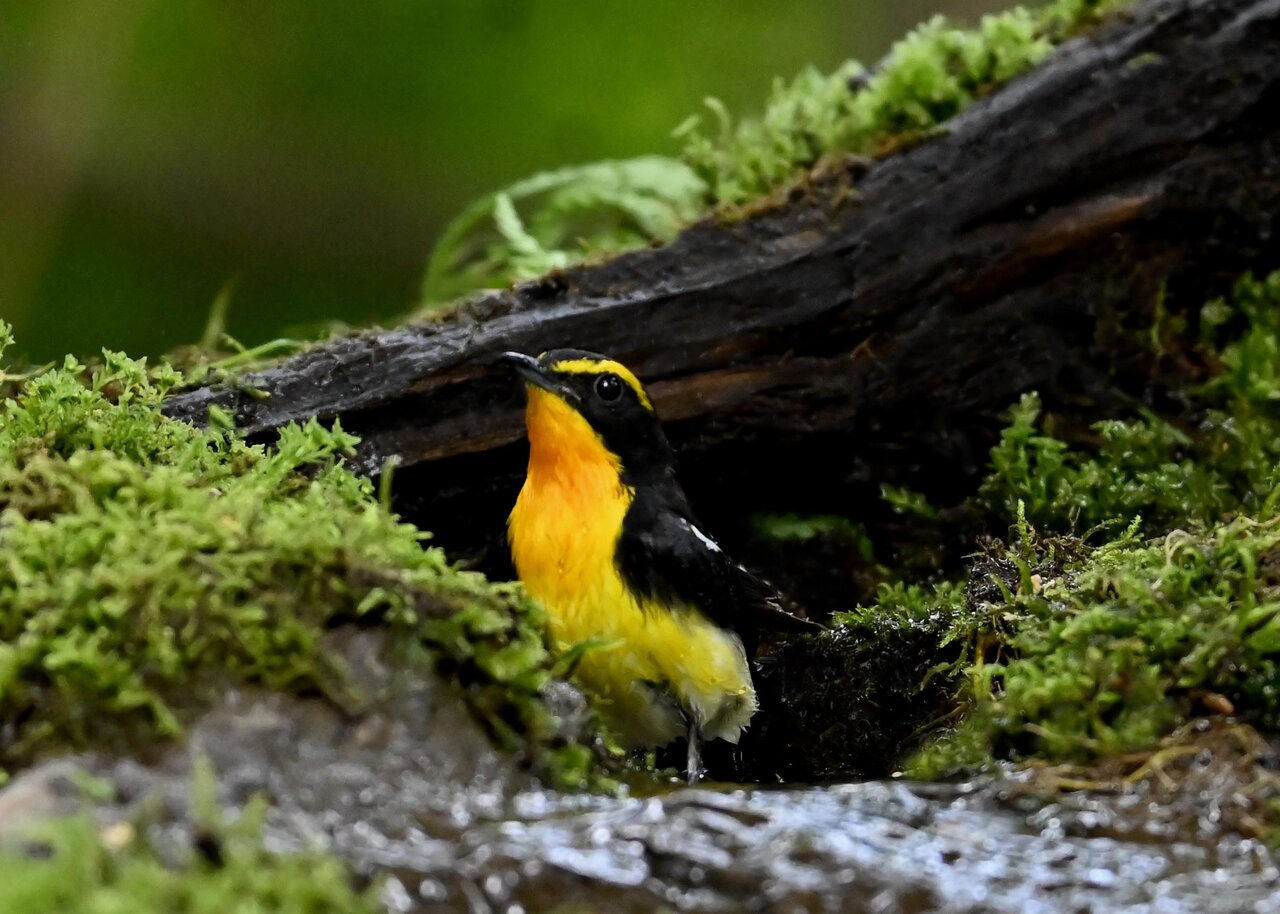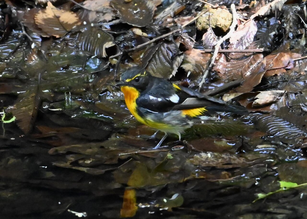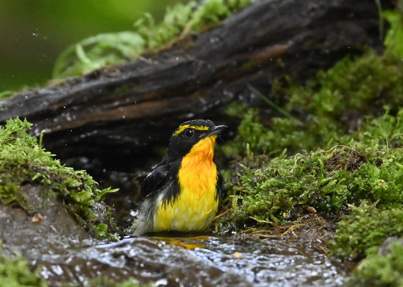 今日は、昨日に続き、キビタキ♂の水浴びシーンです。 この森林では、数組のキビタキが営巣しているようで同じ日に時間を置いて次に掲載のとおり別個体の♂がやって来ました。(♀個体は判別難しいですが、♂個体は黄色い眉斑の形状で別個体である事が明瞭です。)