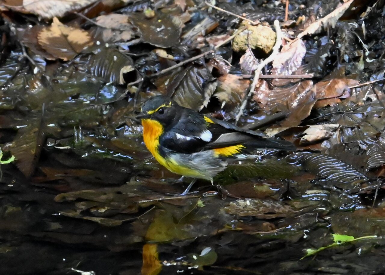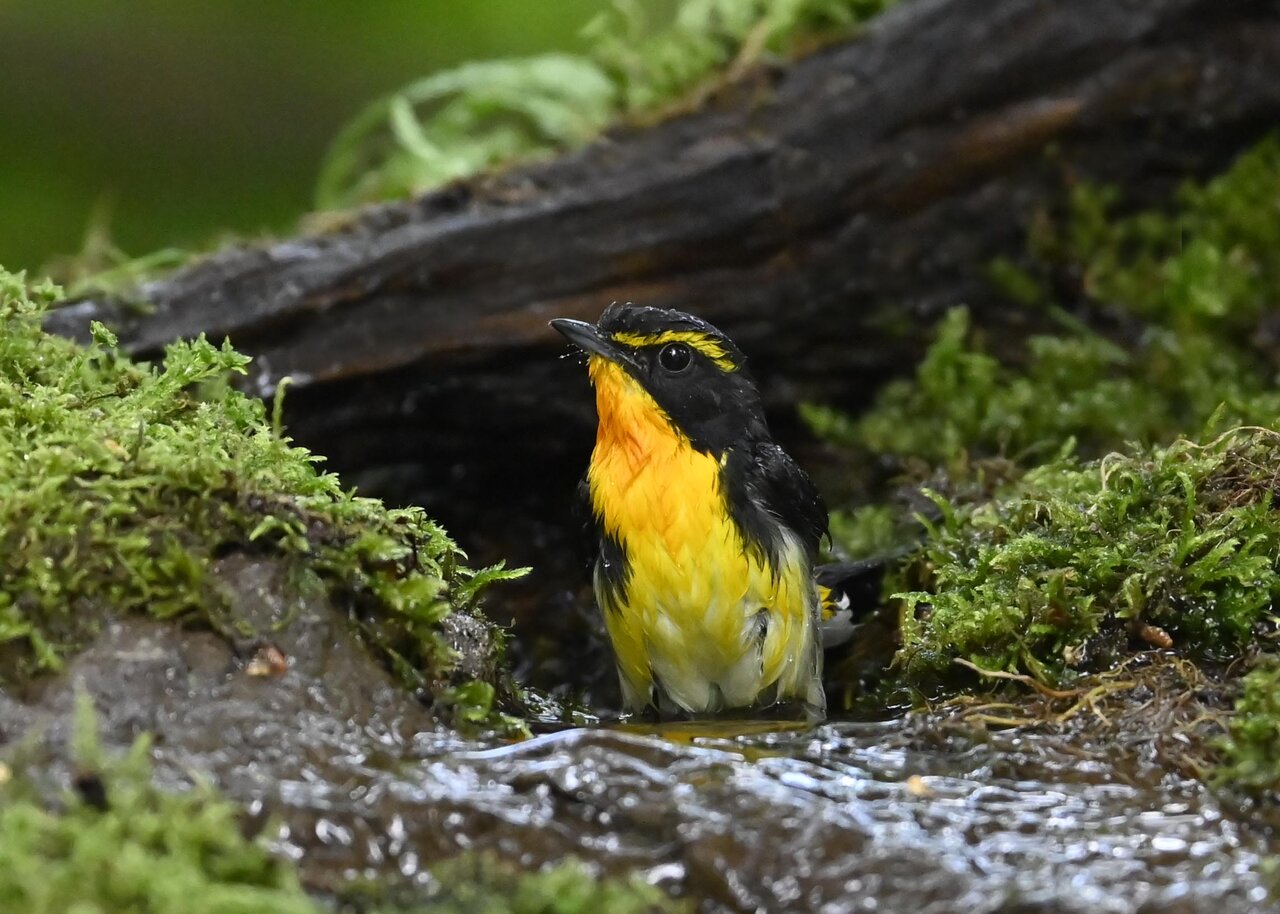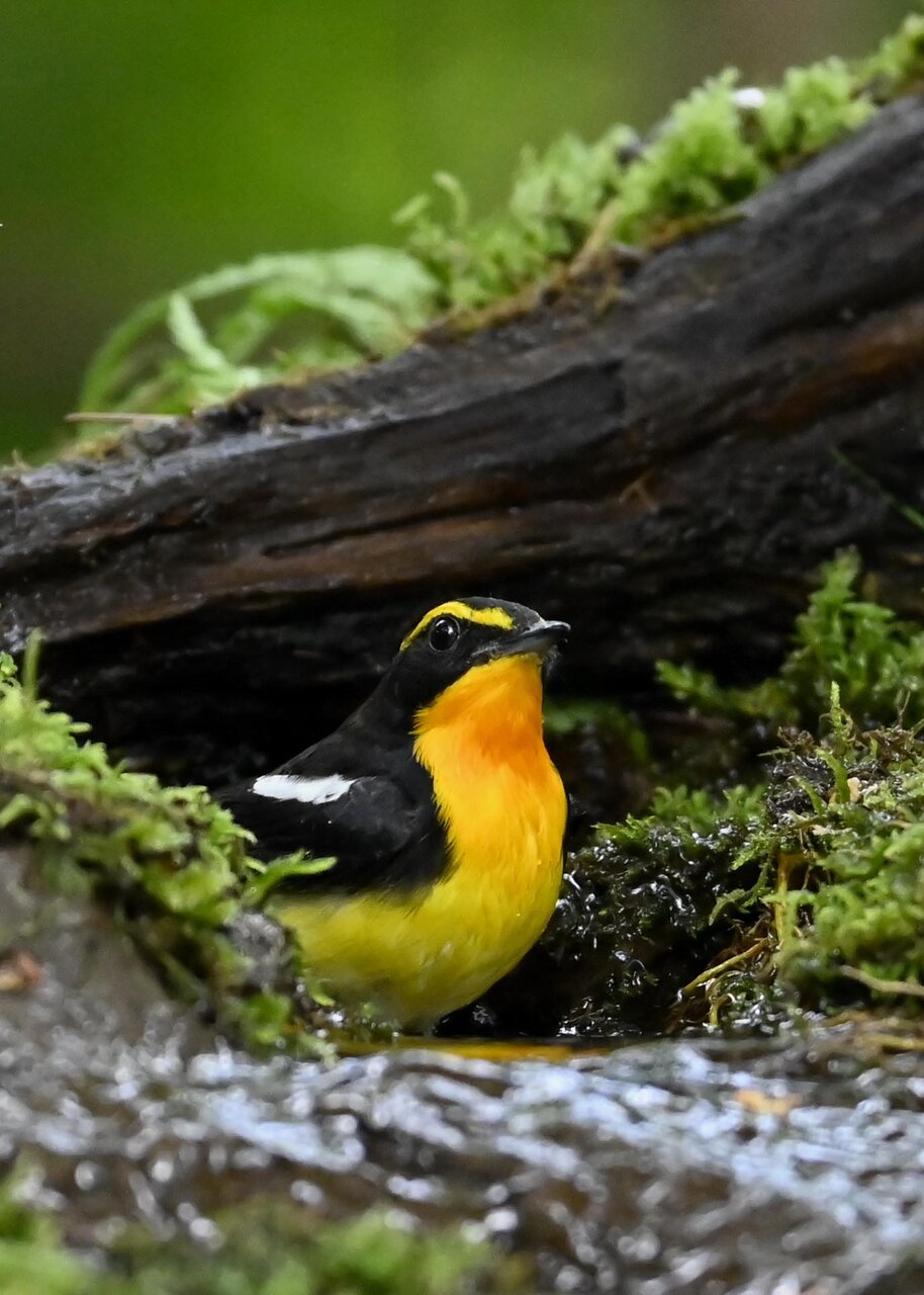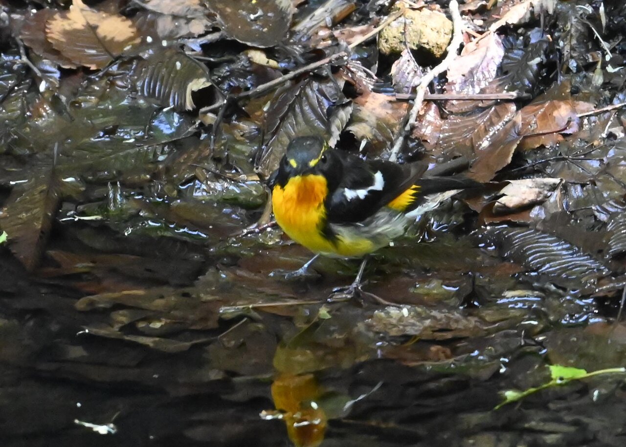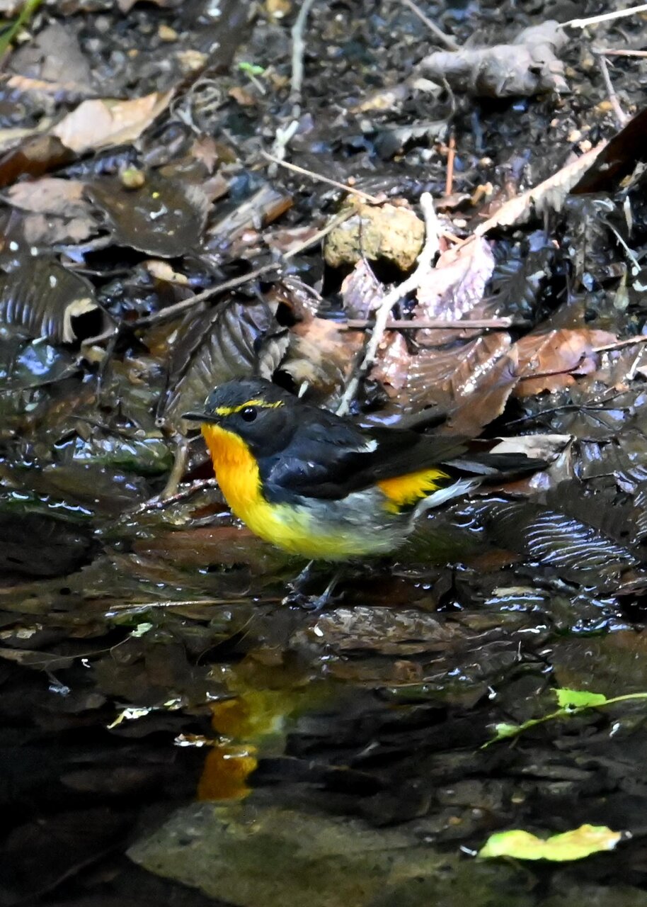 今日は、昨日に続き、キビタキ♂の水浴びシーンです。 この森林では、数組のキビタキが営巣しているようで同じ日に時間を置いて次に掲載のとおり別個体の♂がやって来ました。(♀個体は判別難しいですが、♂個体は黄色い眉斑の形状で別個体である事が明瞭です。)