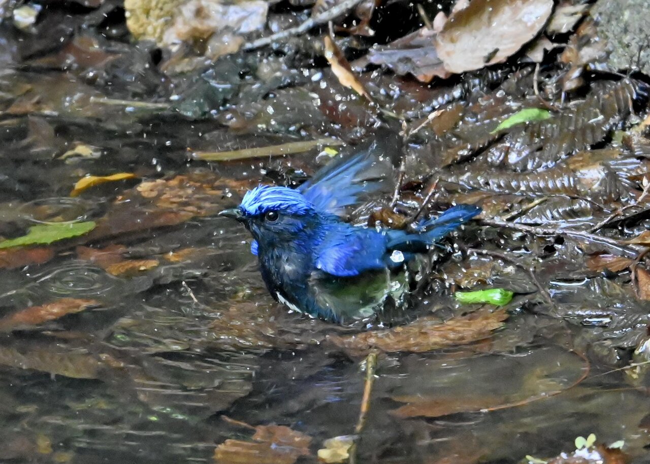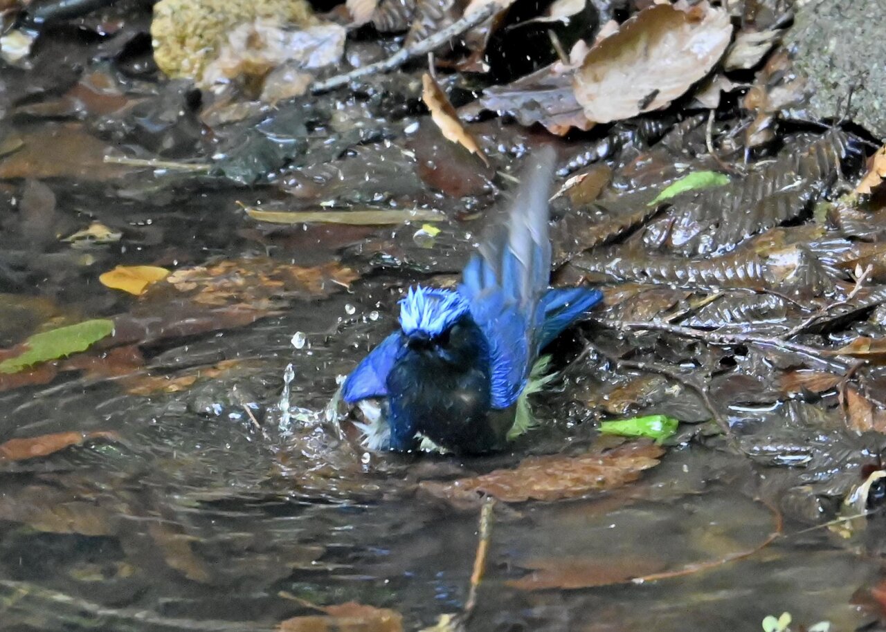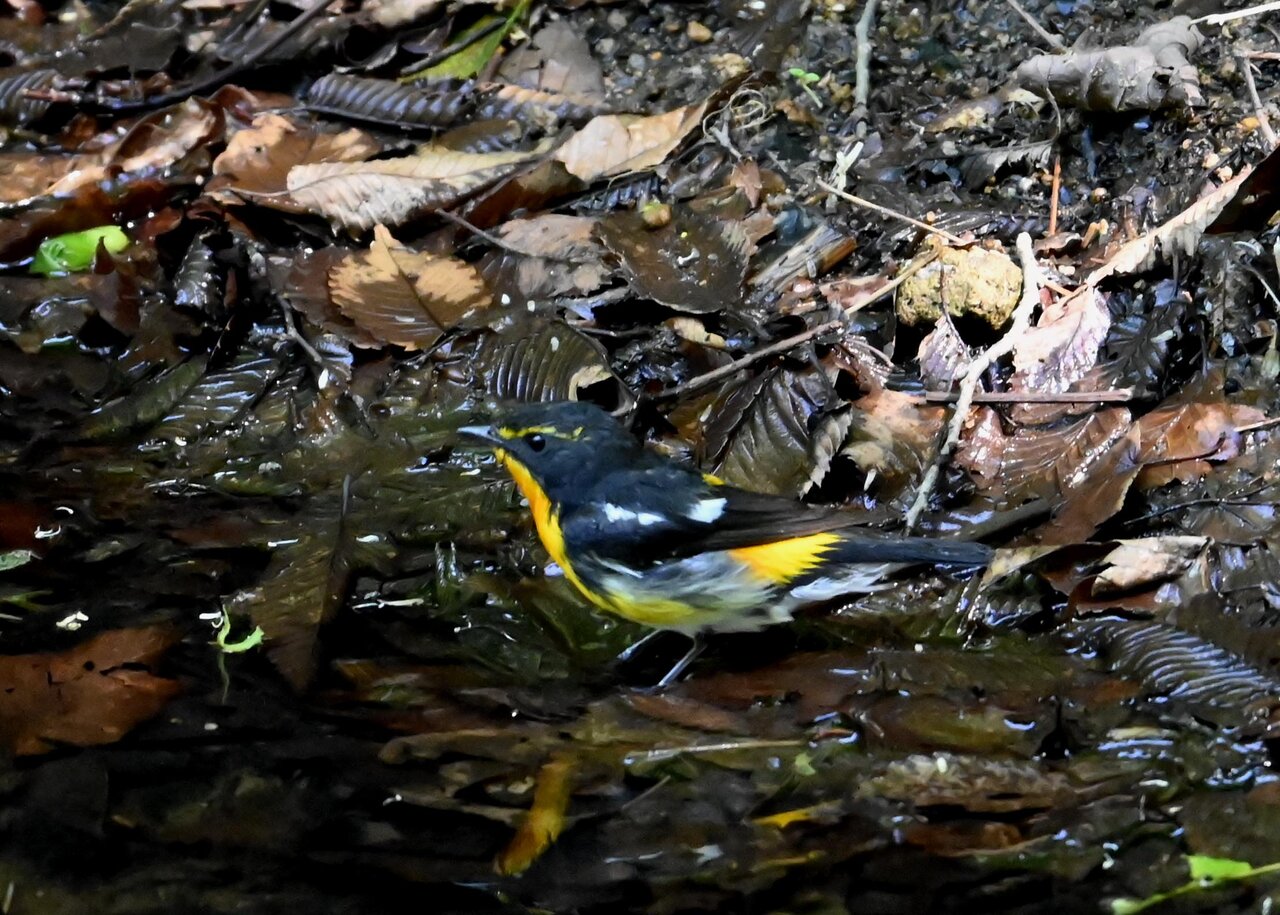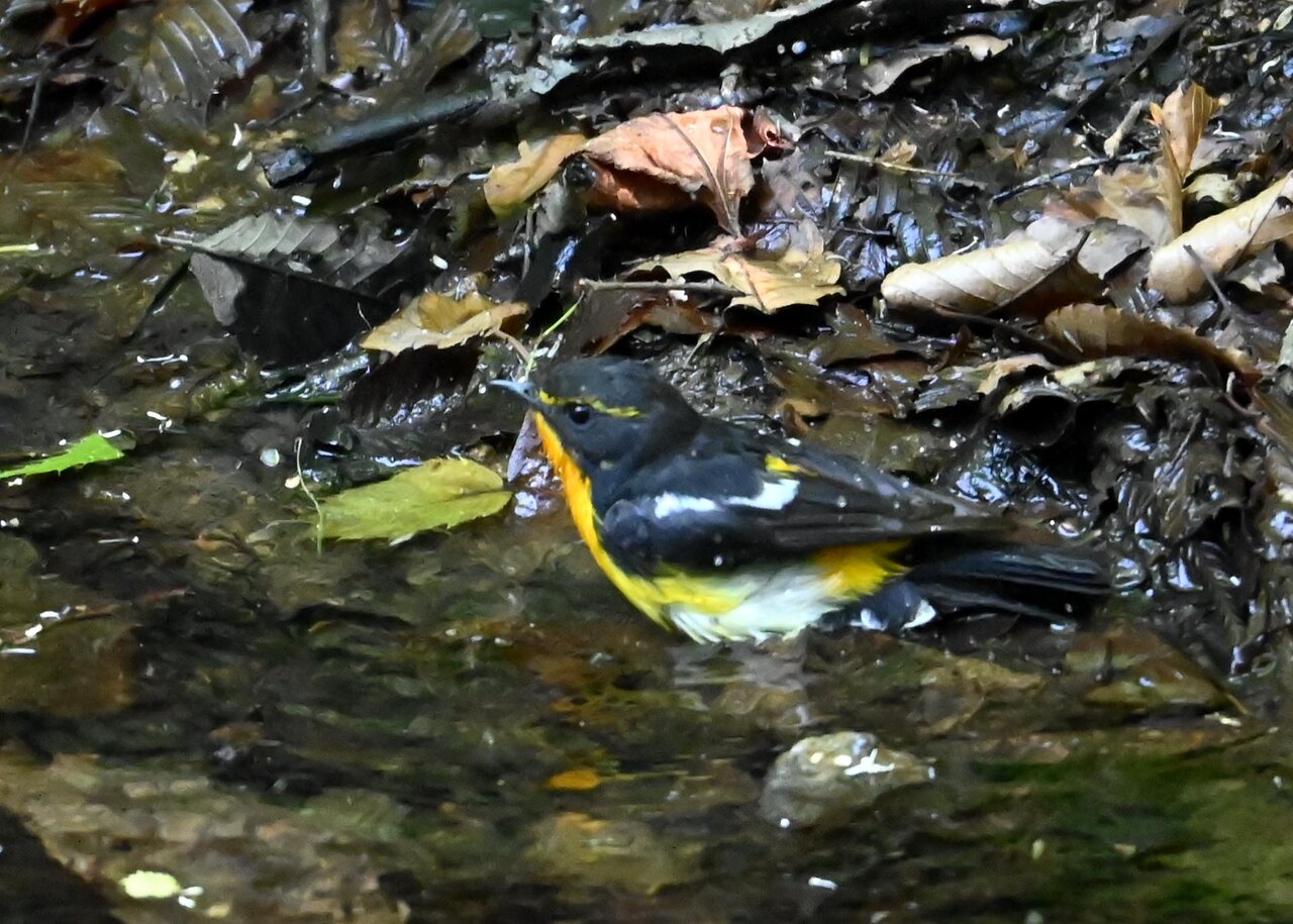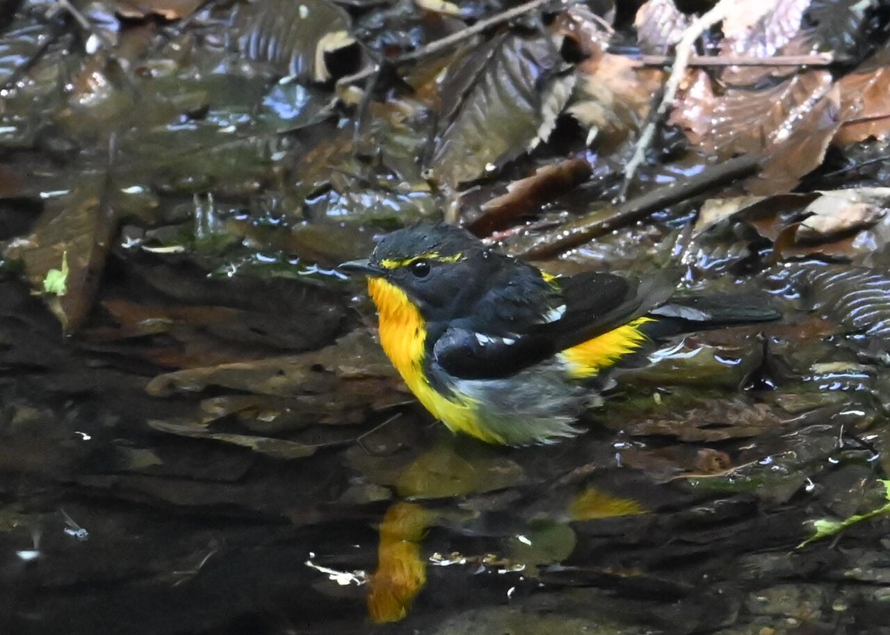 今日は、昨日に続き、キビタキ♂の水浴びシーンです。 この森林では、数組のキビタキが営巣しているようで同じ日に時間を置いて次に掲載のとおり別個体の♂がやって来ました。(♀個体は判別難しいですが、♂個体は黄色い眉斑の形状で別個体である事が明瞭です。)