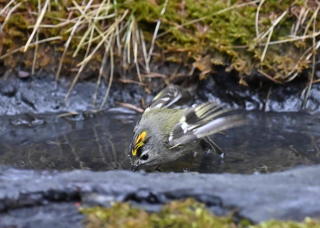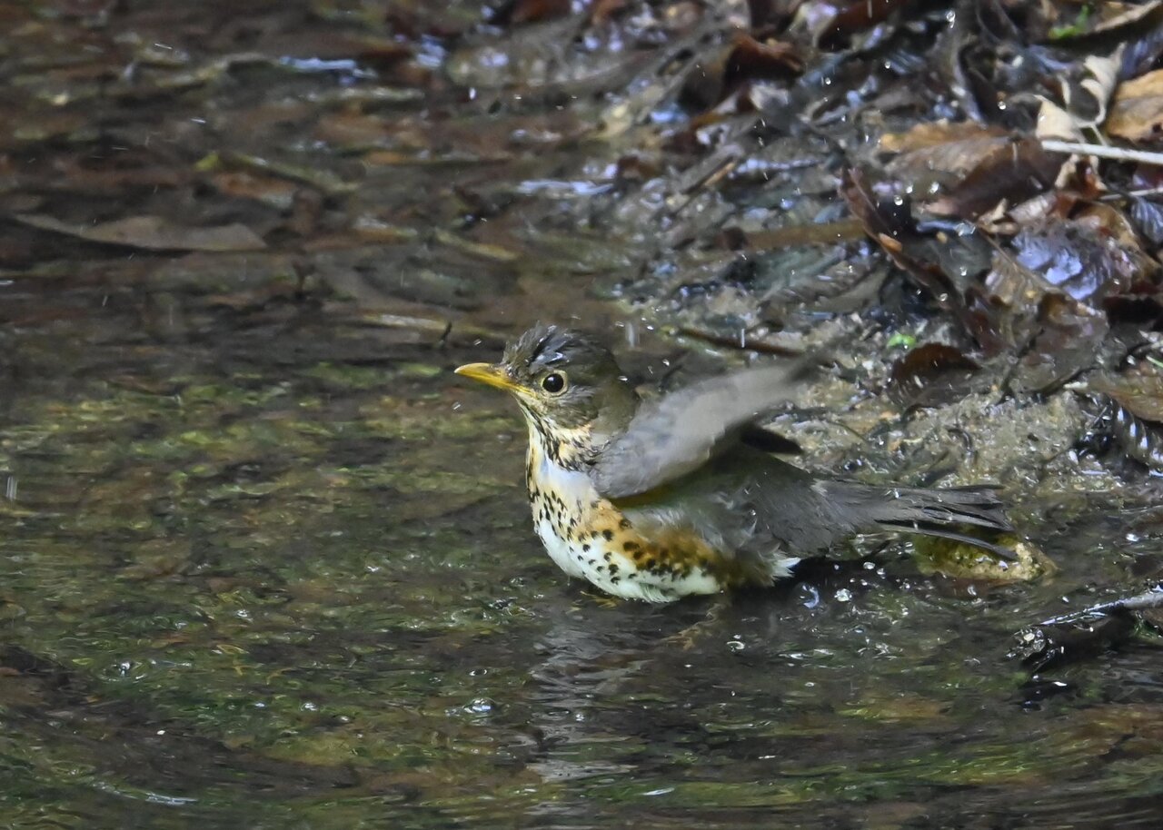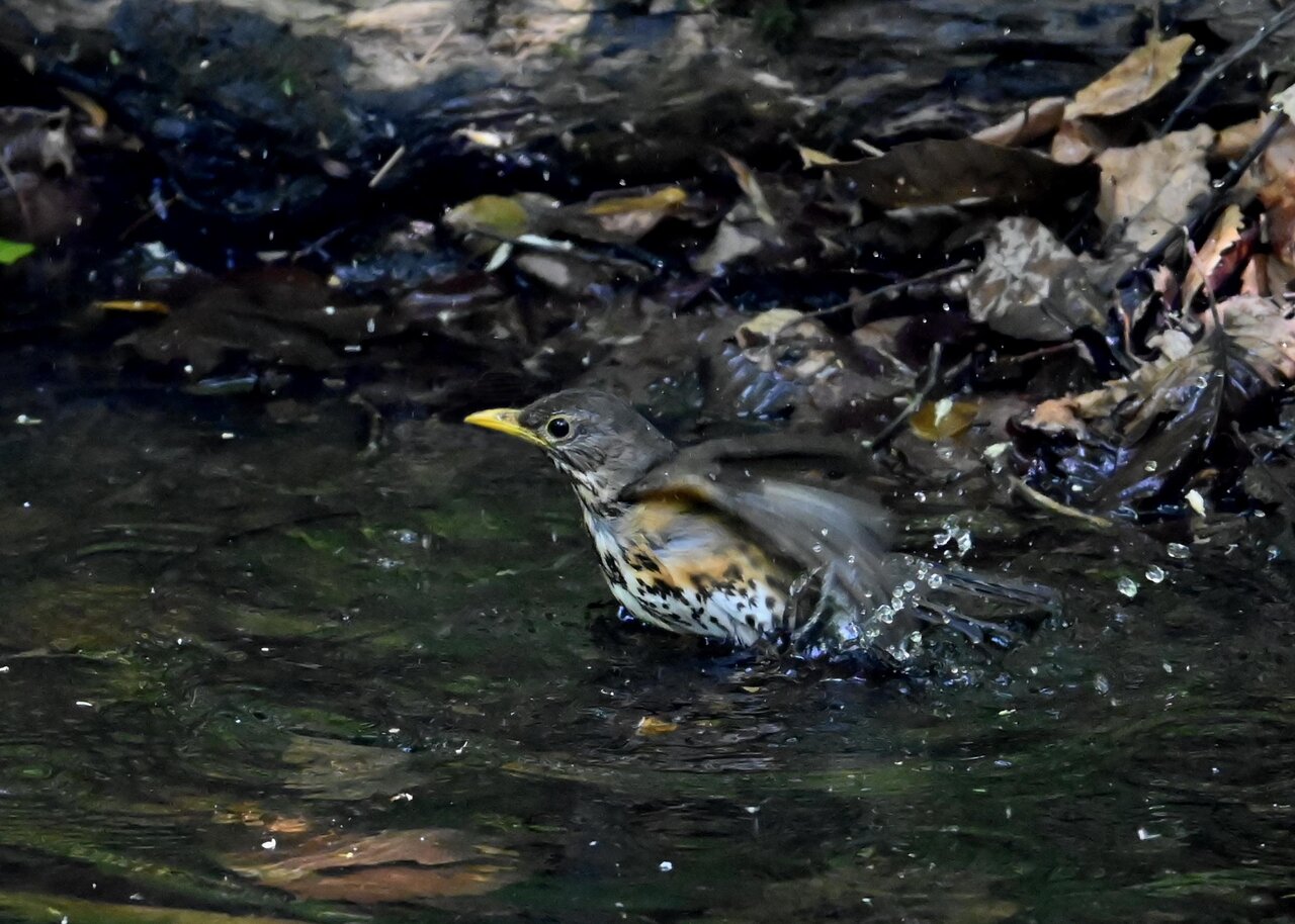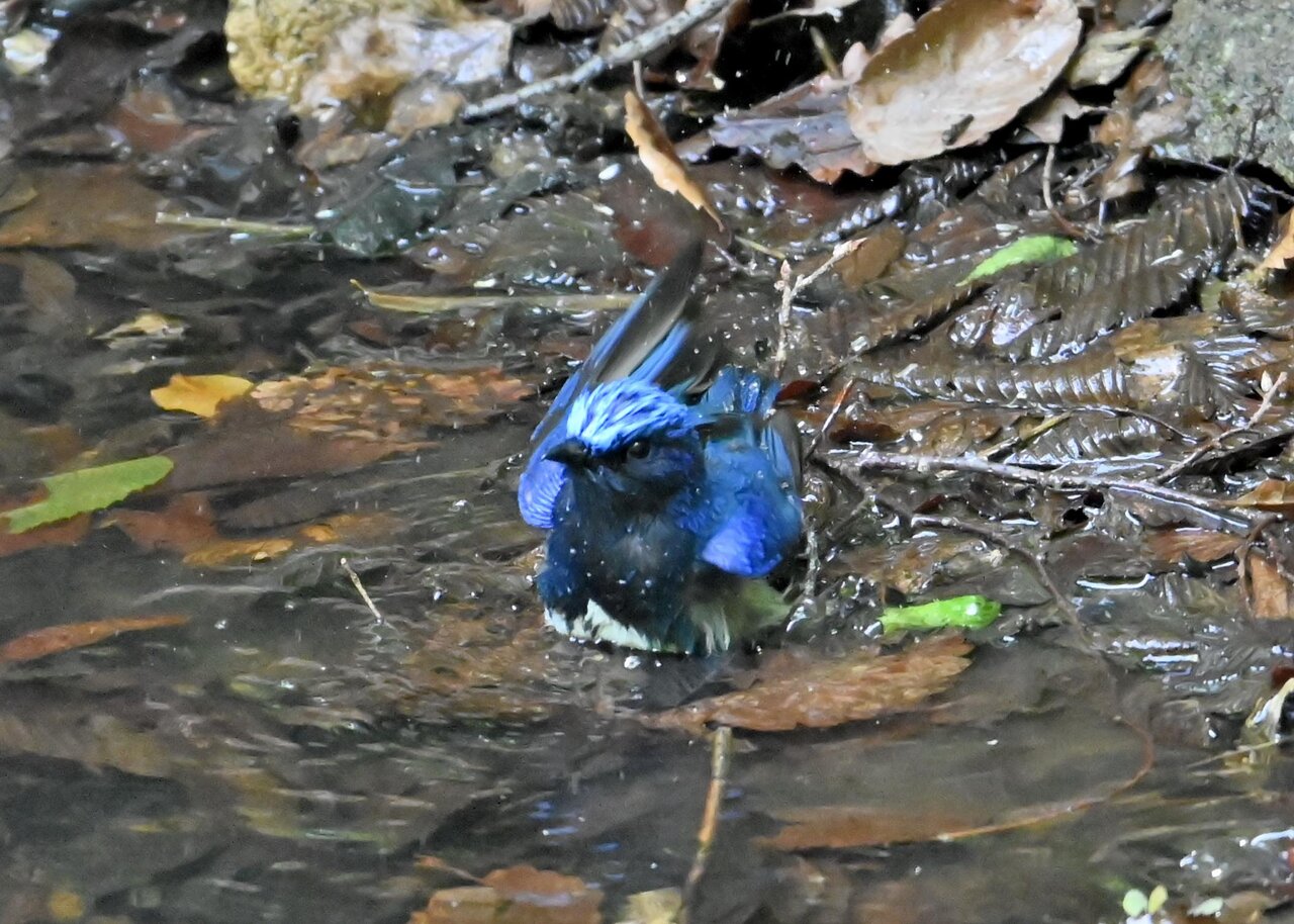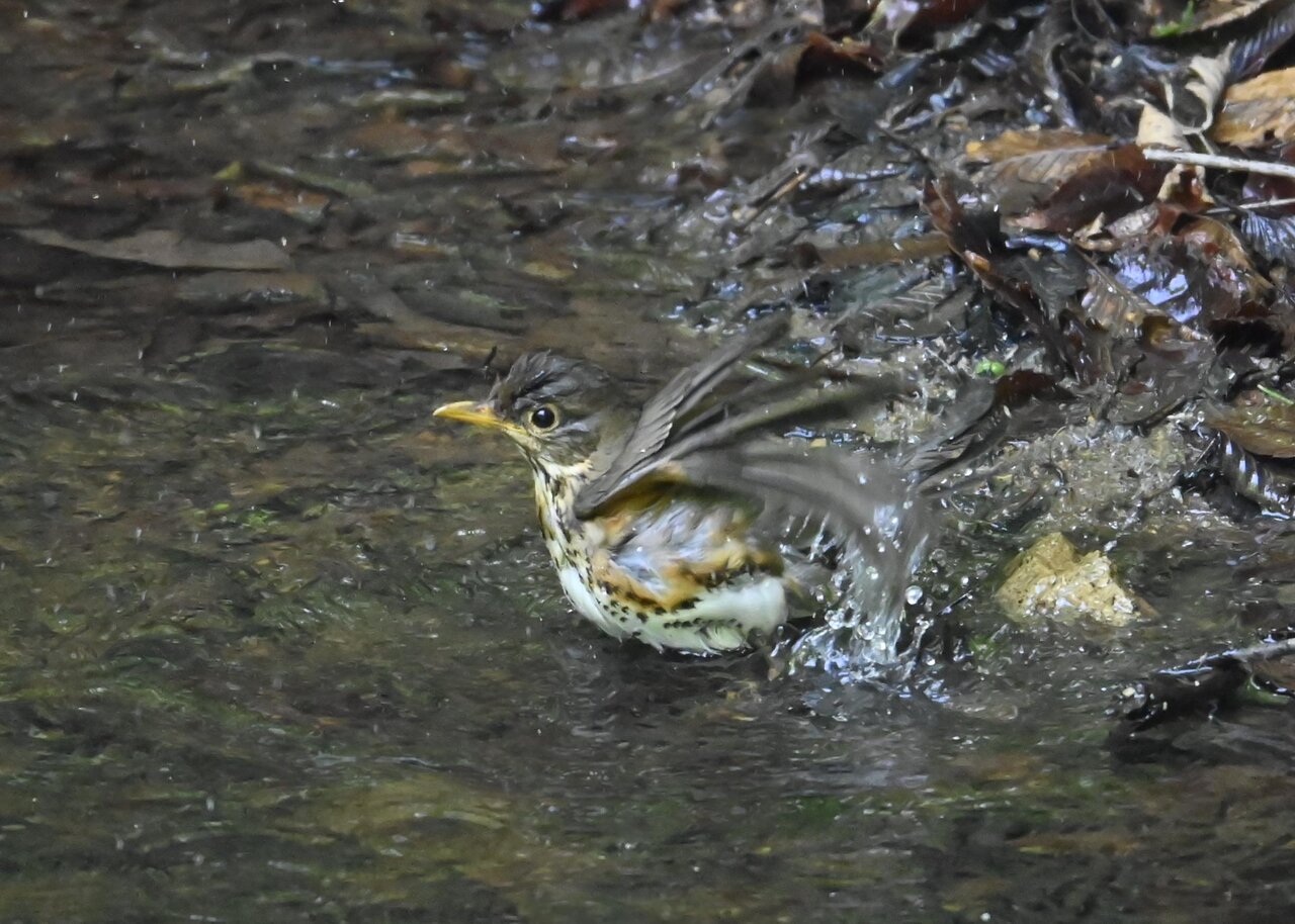 今日は、昨日に続き、キビタキ♂の水浴びシーンです。 この森林では、数組のキビタキが営巣しているようで同じ日に時間を置いて次に掲載のとおり別個体の♂がやって来ました。(♀個体は判別難しいですが、♂個体は黄色い眉斑の形状で別個体である事が明瞭です。)