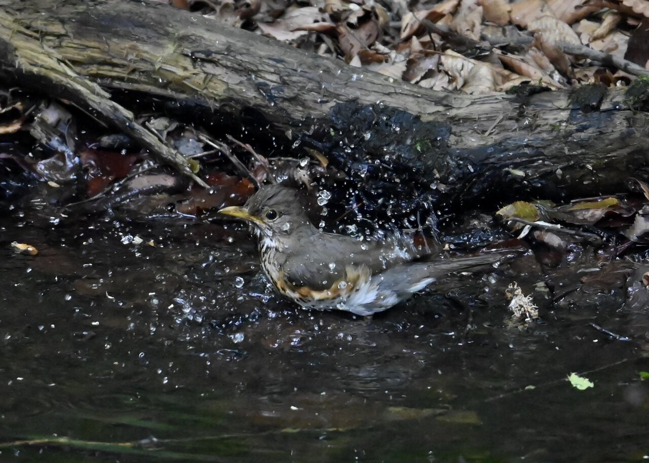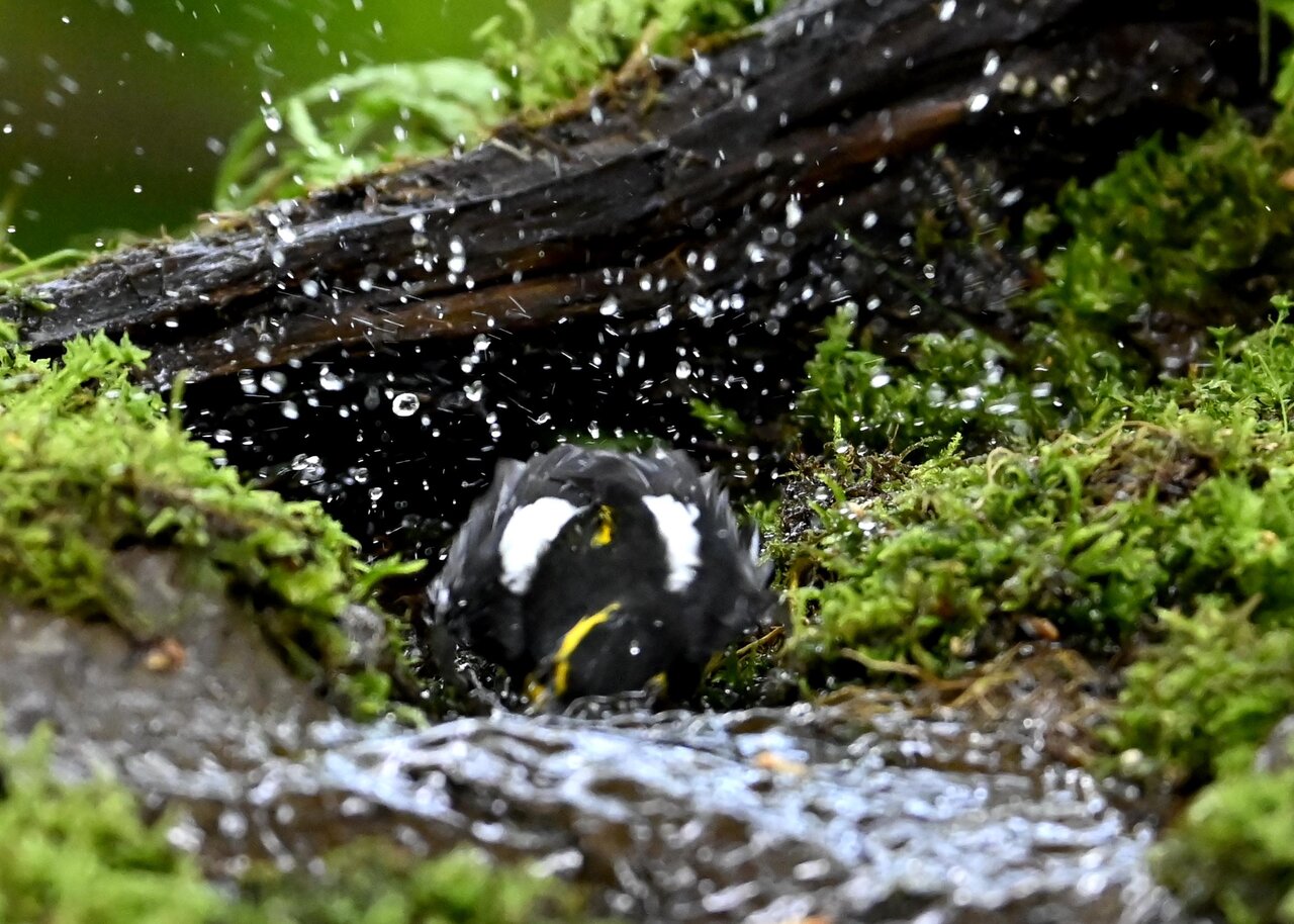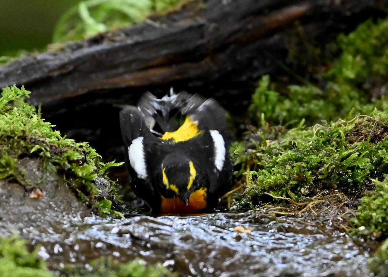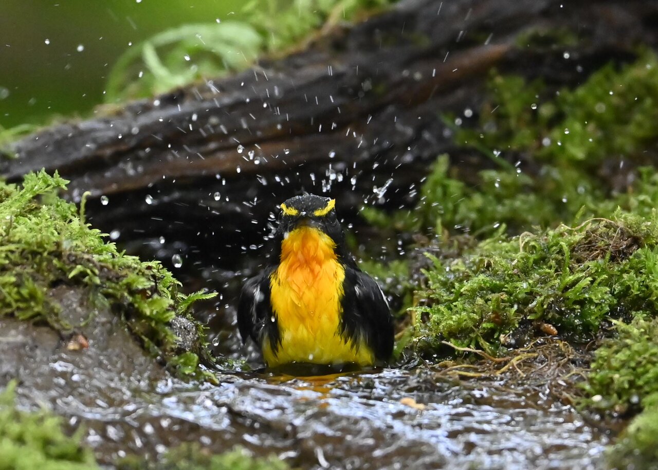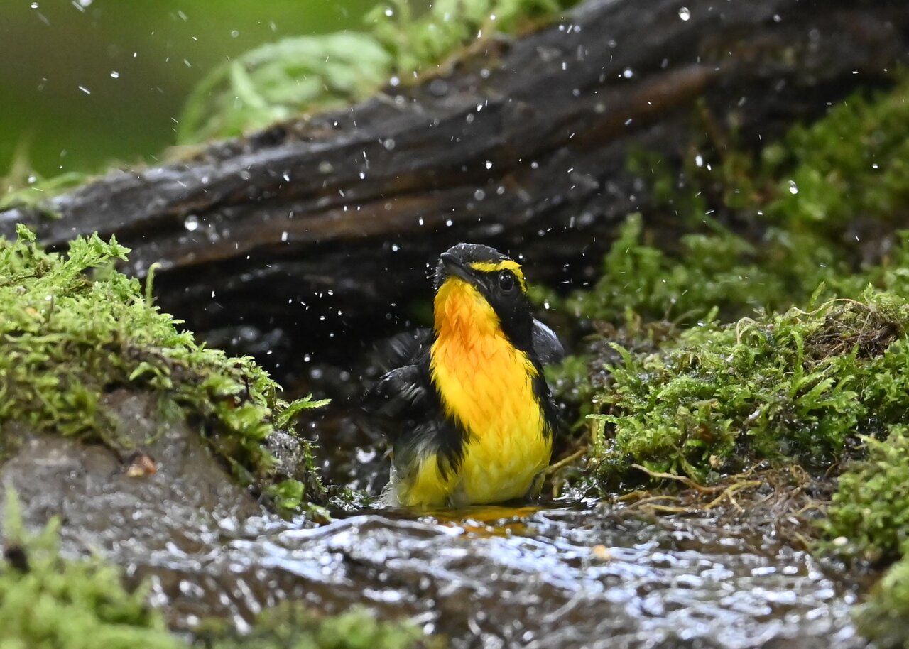 「キビタキ♂の水浴び」 撮影地 : 群馬県