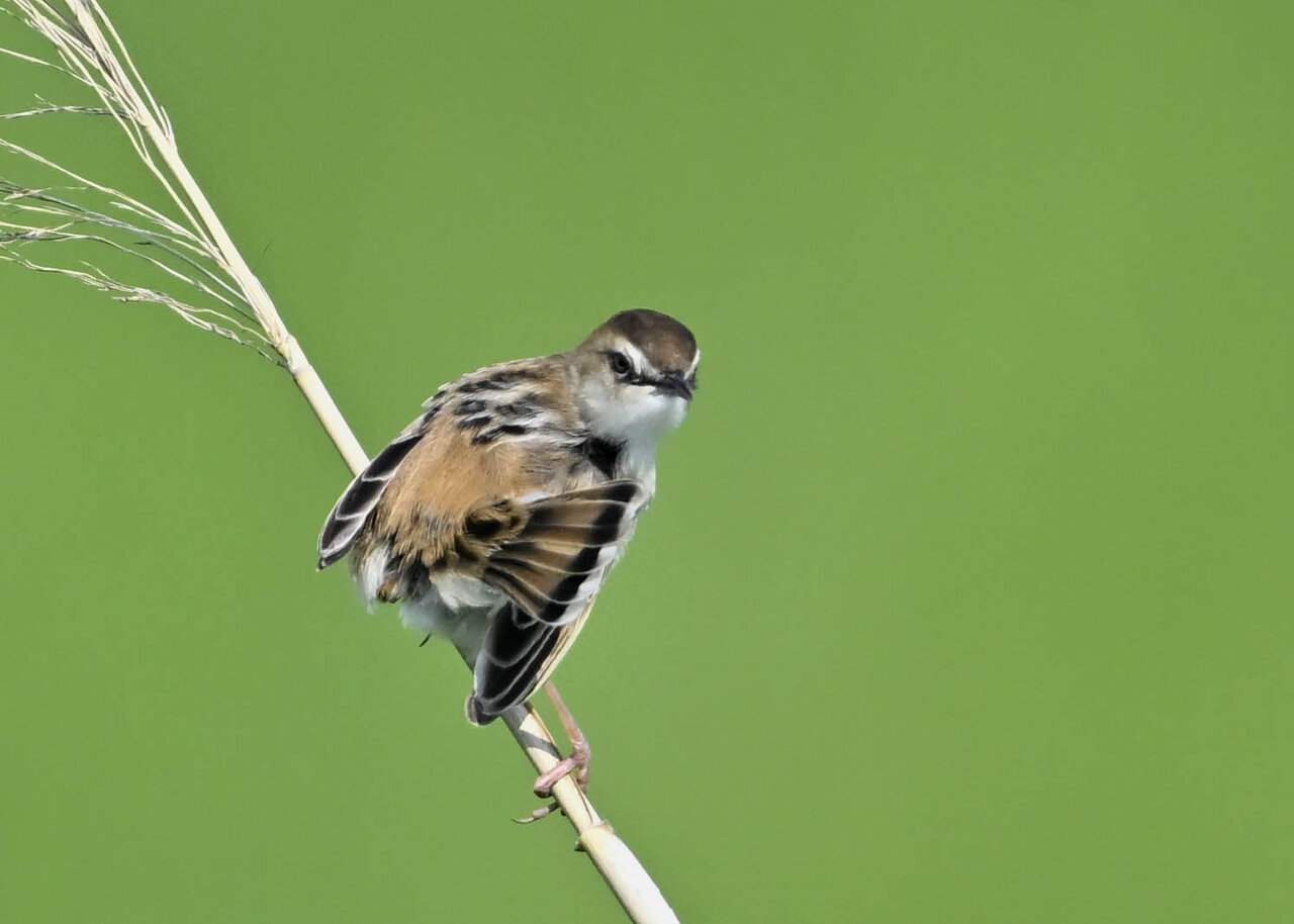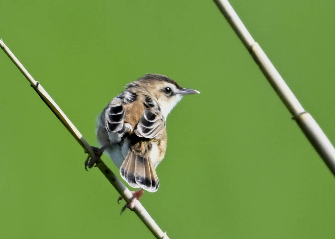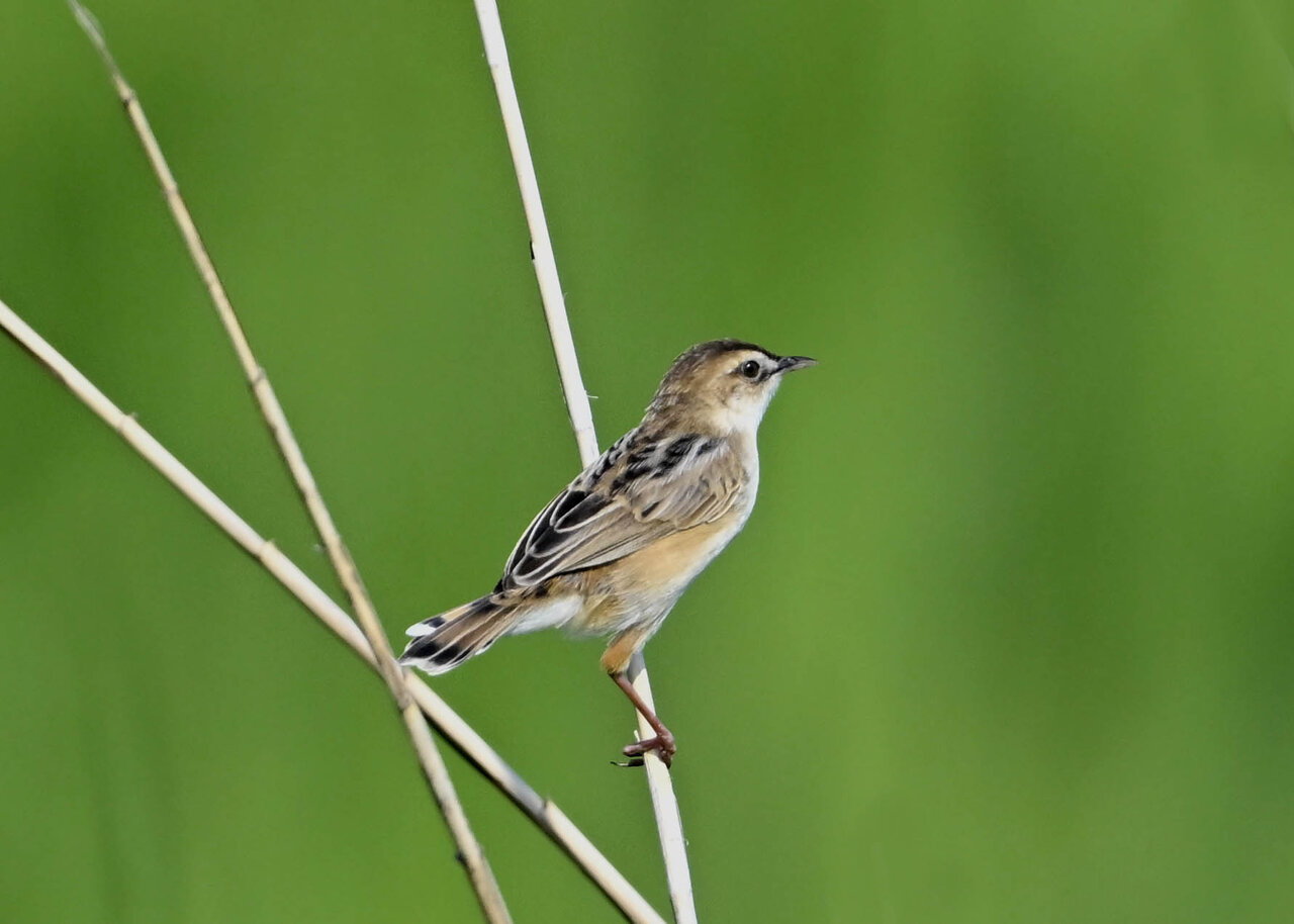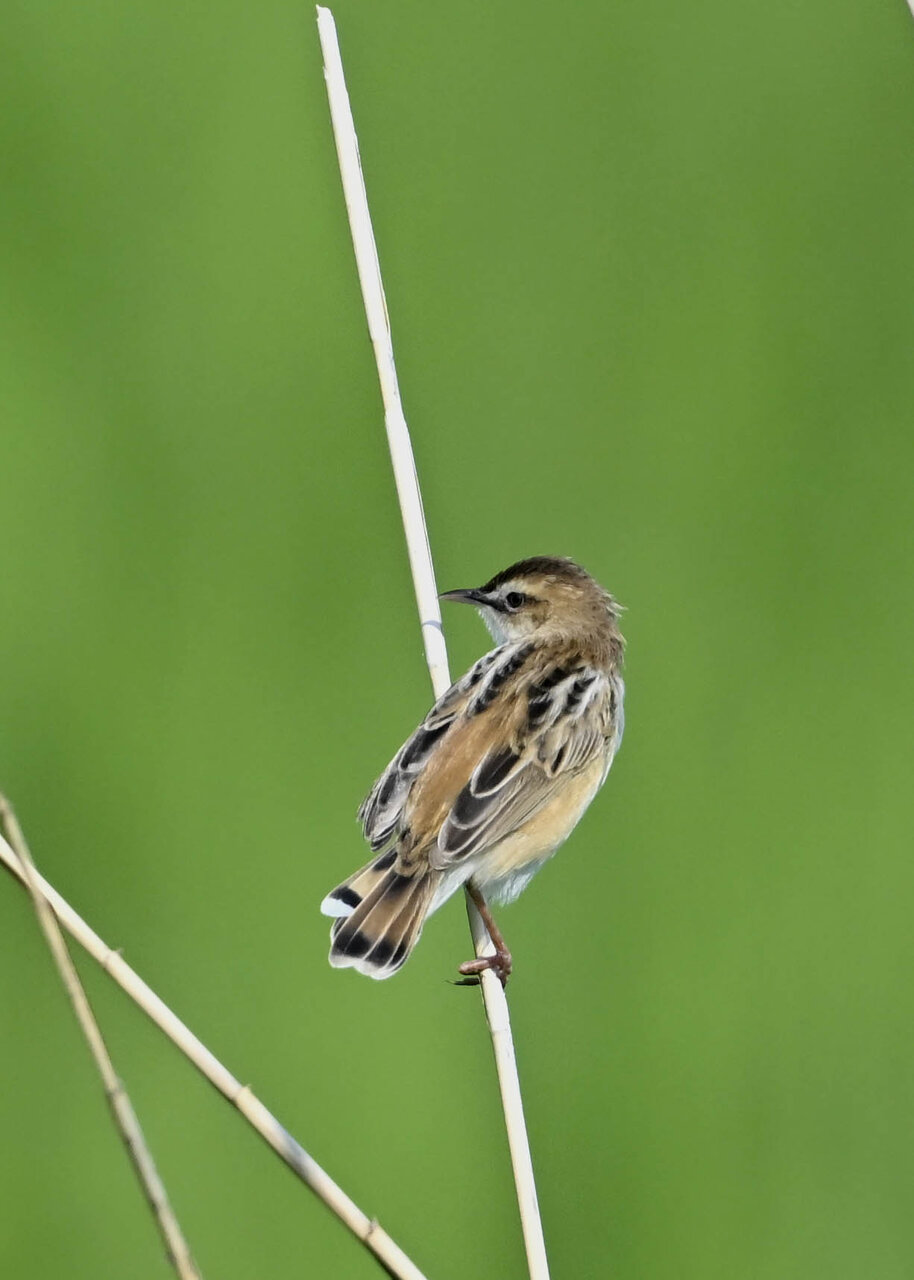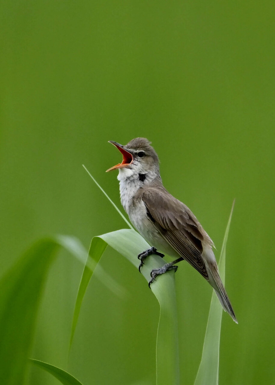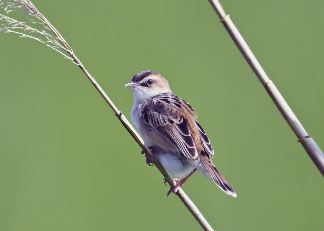 オオセッカの繁殖縄張りは狭く葦原の中にいますが、♂は独特の半円形の「囀り飛翔」するので見つけ易いですが、セッカやオオヨシキリの様に葦の穂先に止まらず、囀り飛翔の後葦の中腹に降り直ぐに草原に潜り込みますので撮影には中々手強いです。