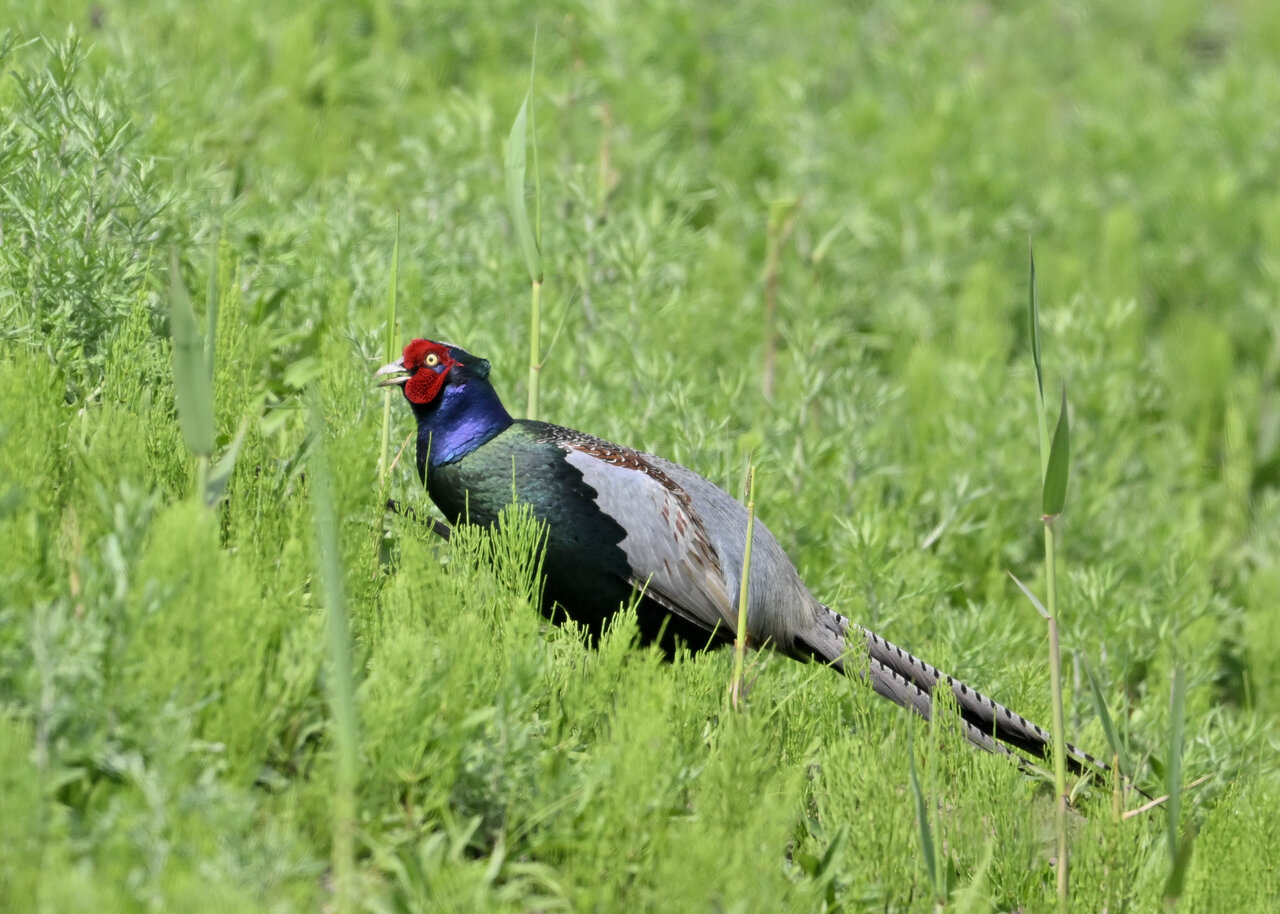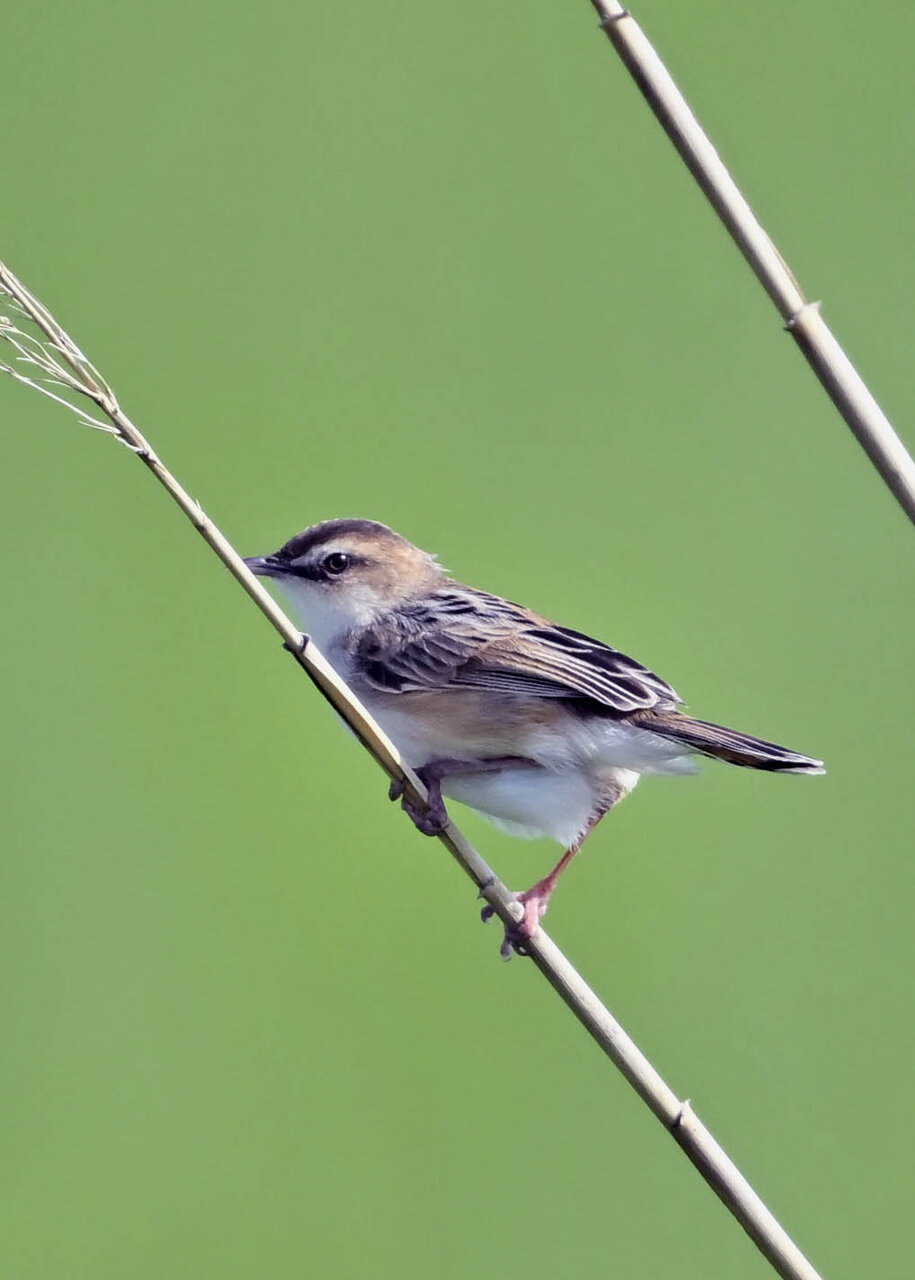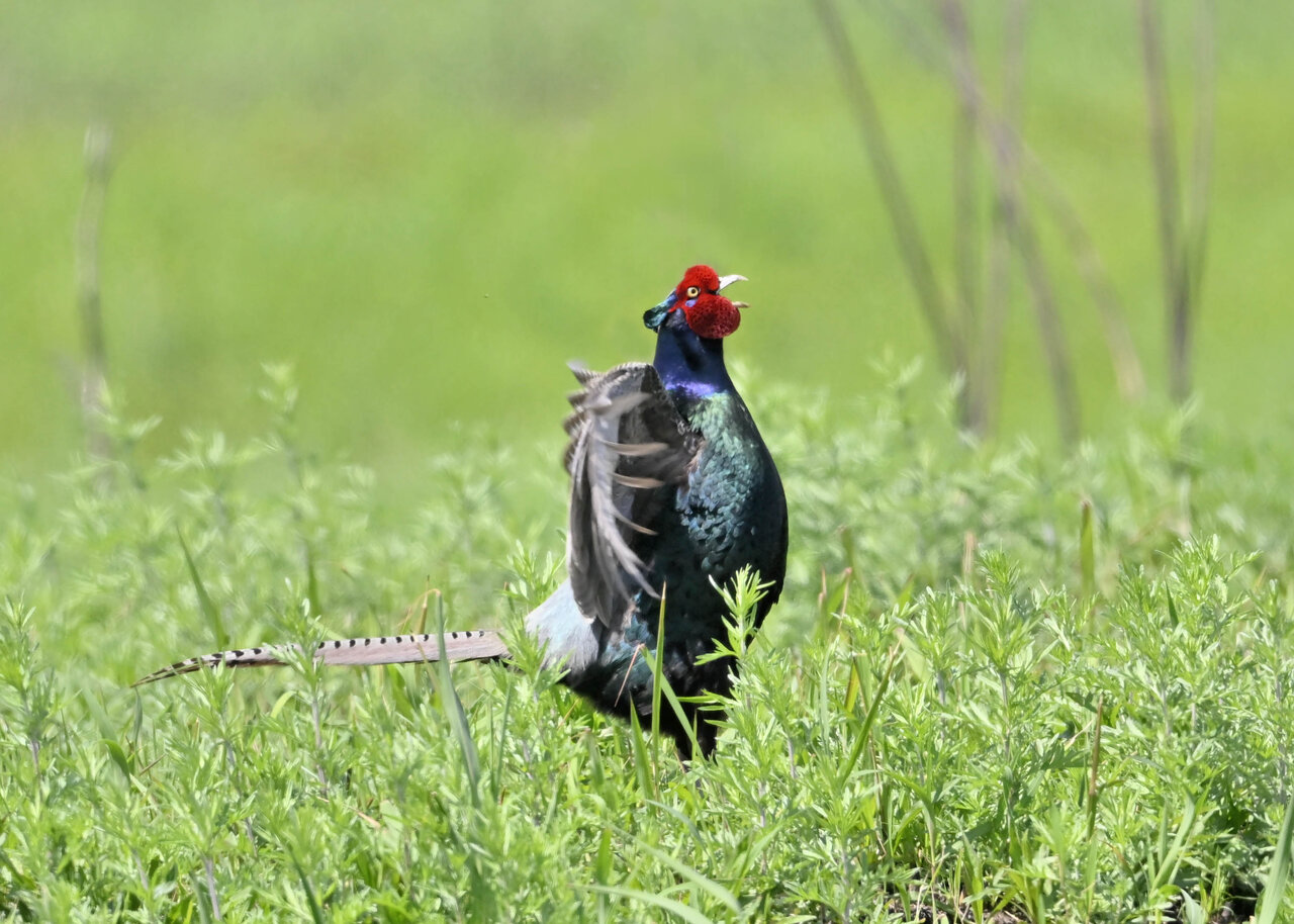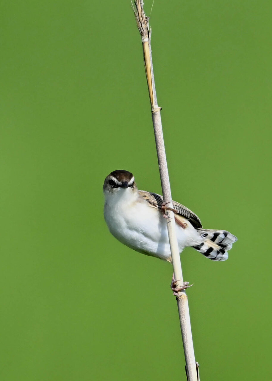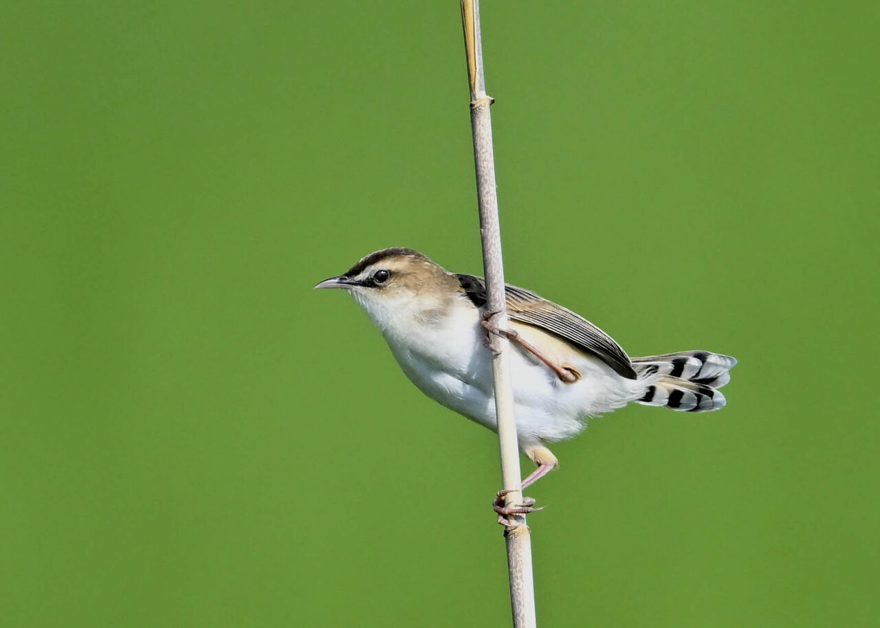 オオセッカの繁殖縄張りは狭く葦原の中にいますが、♂は独特の半円形の「囀り飛翔」するので見つけ易いですが、セッカやオオヨシキリの様に葦の穂先に止まらず、囀り飛翔の後葦の中腹に降り直ぐに草原に潜り込みますので撮影には中々手強いです。