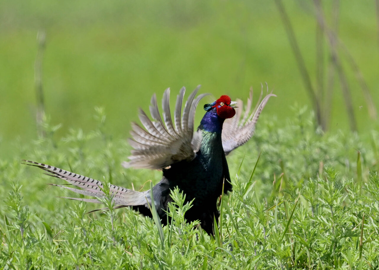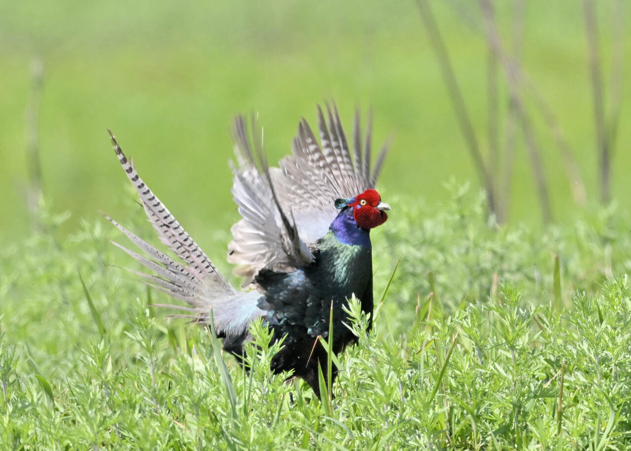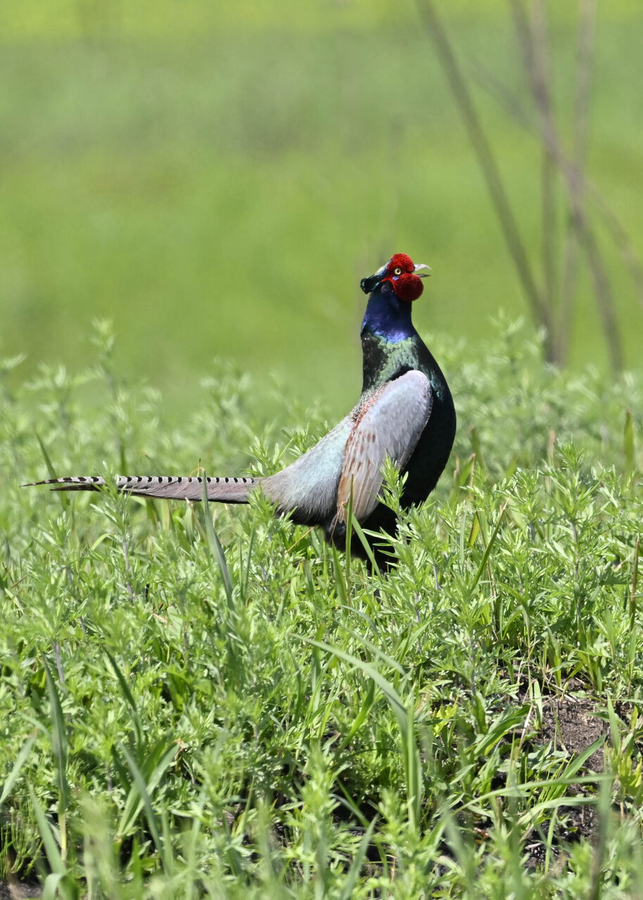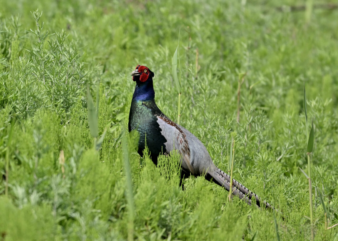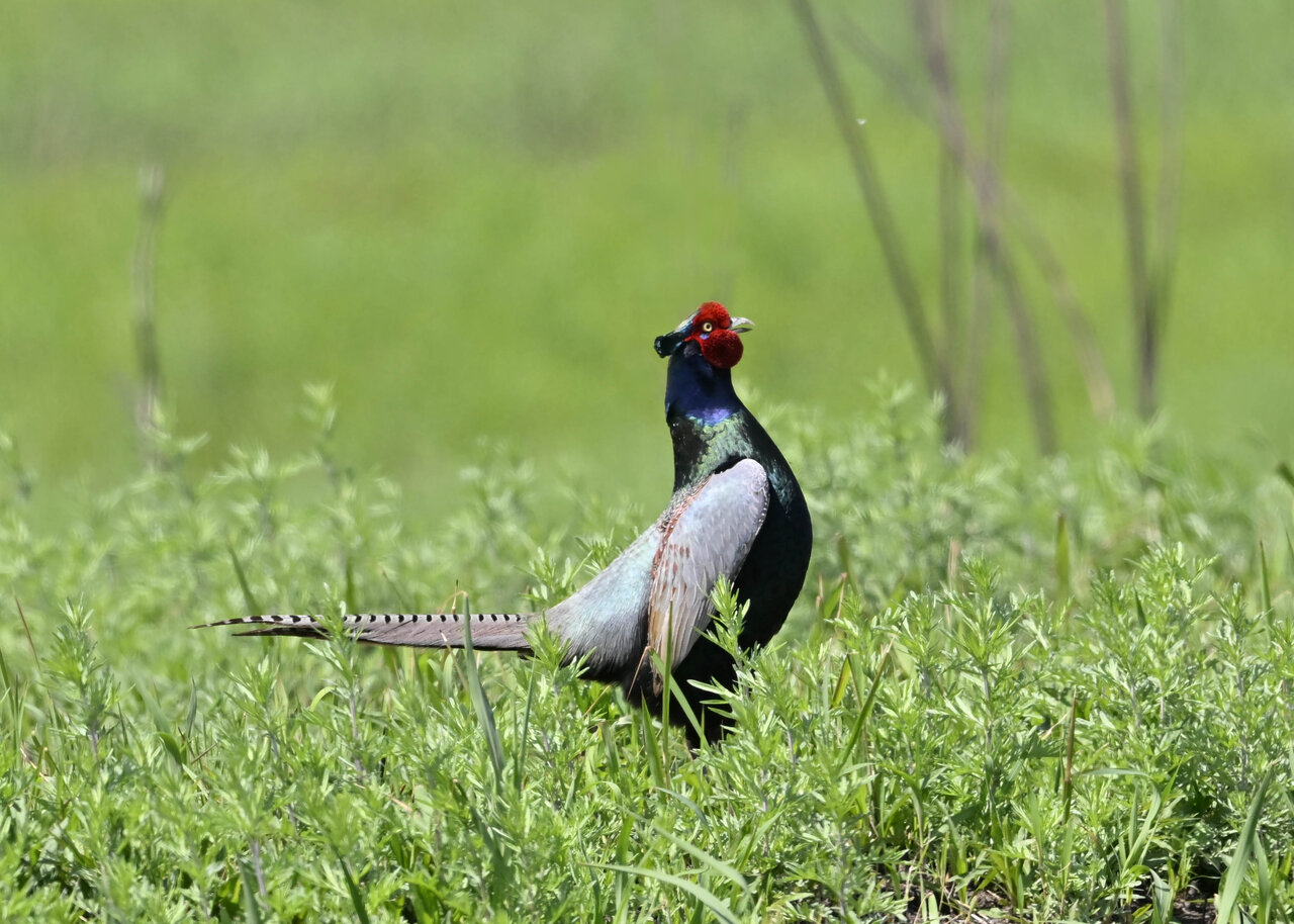 オオセッカの繁殖縄張りは狭く葦原の中にいますが、♂は独特の半円形の「囀り飛翔」するので見つけ易いですが、セッカやオオヨシキリの様に葦の穂先に止まらず、囀り飛翔の後葦の中腹に降り直ぐに草原に潜り込みますので撮影には中々手強いです。