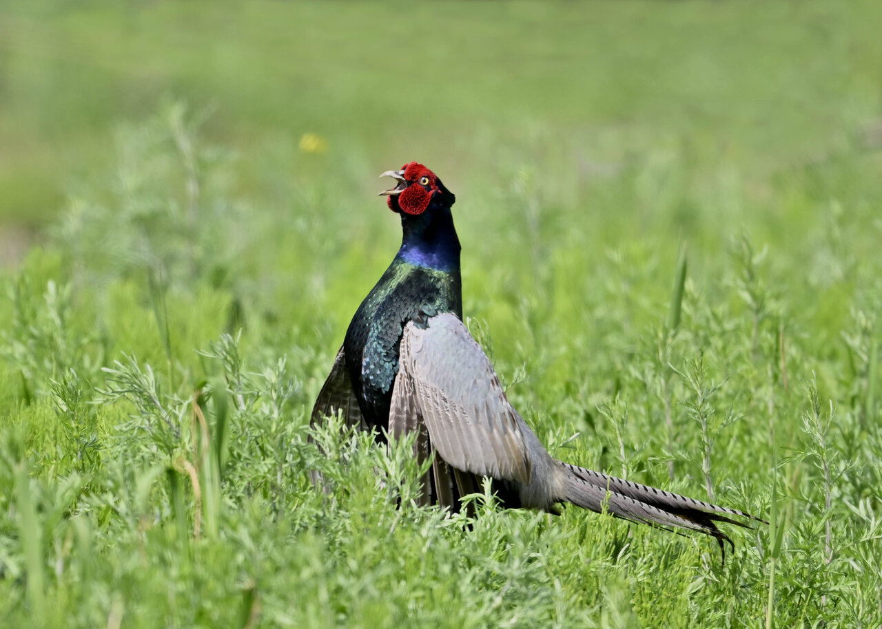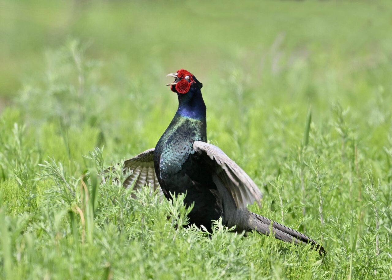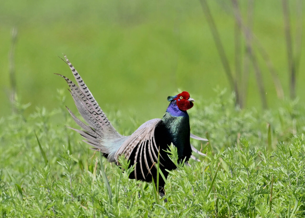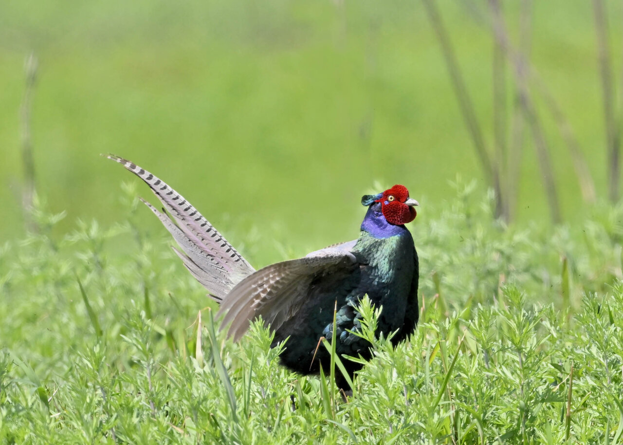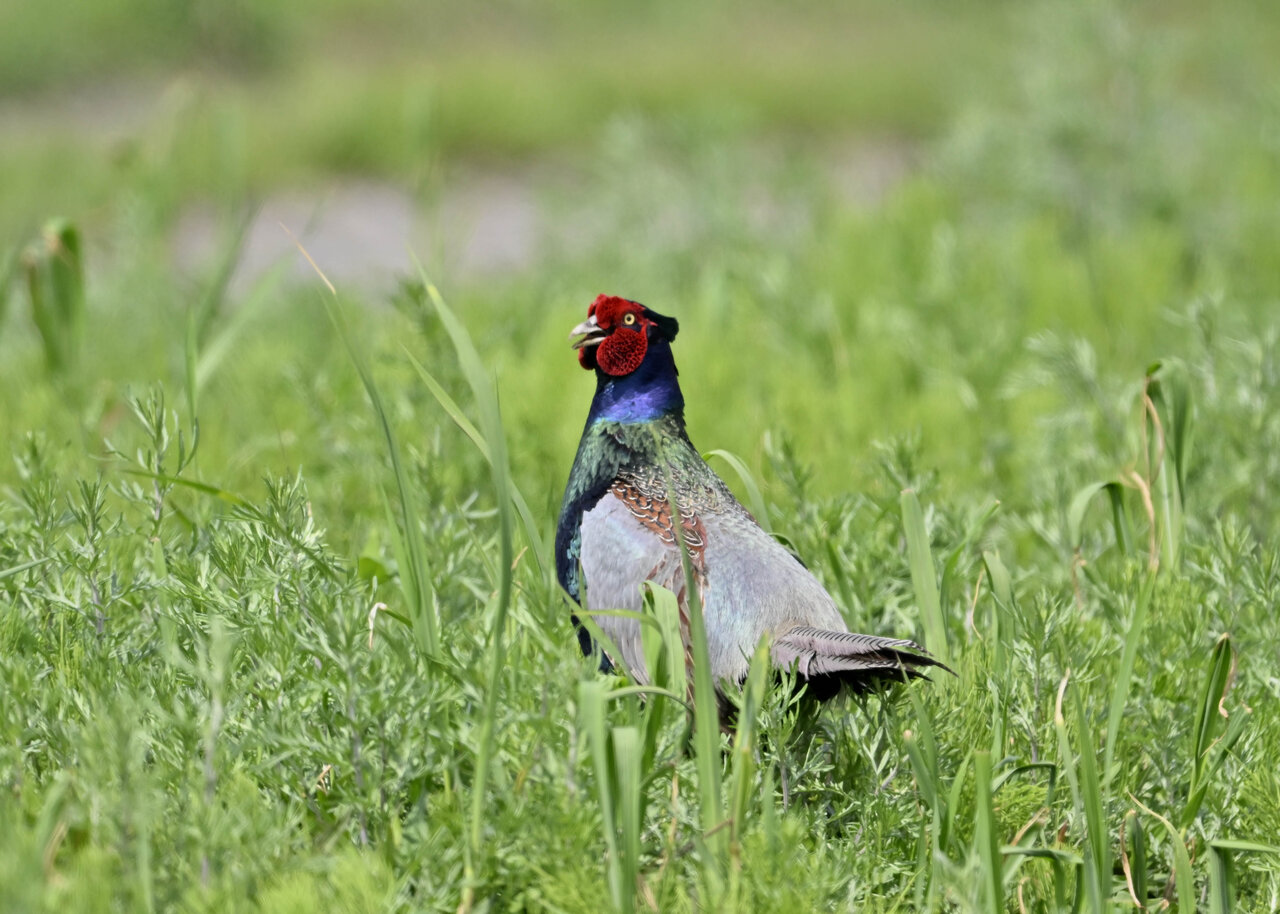 オオセッカの繁殖縄張りは狭く葦原の中にいますが、♂は独特の半円形の「囀り飛翔」するので見つけ易いですが、セッカやオオヨシキリの様に葦の穂先に止まらず、囀り飛翔の後葦の中腹に降り直ぐに草原に潜り込みますので撮影には中々手強いです。