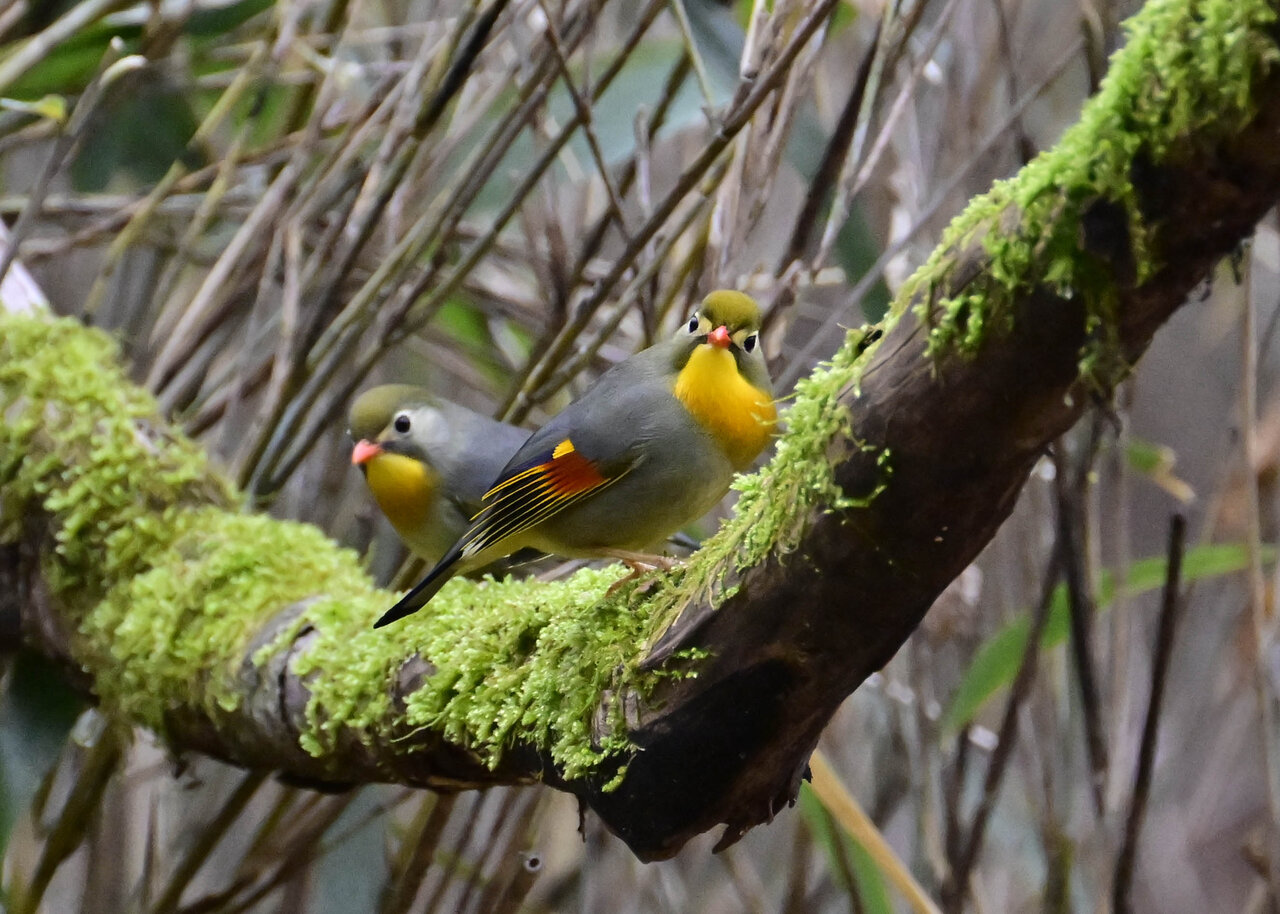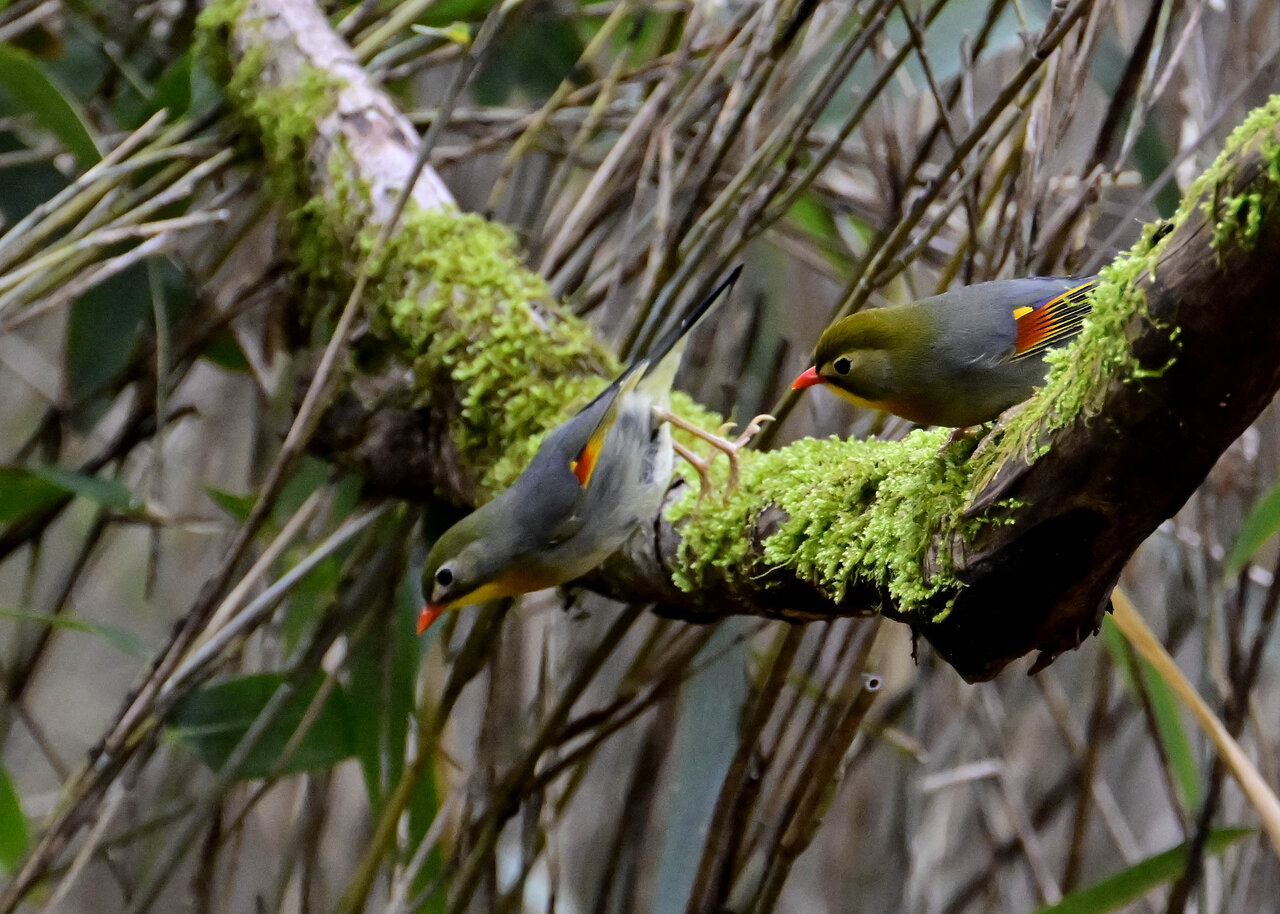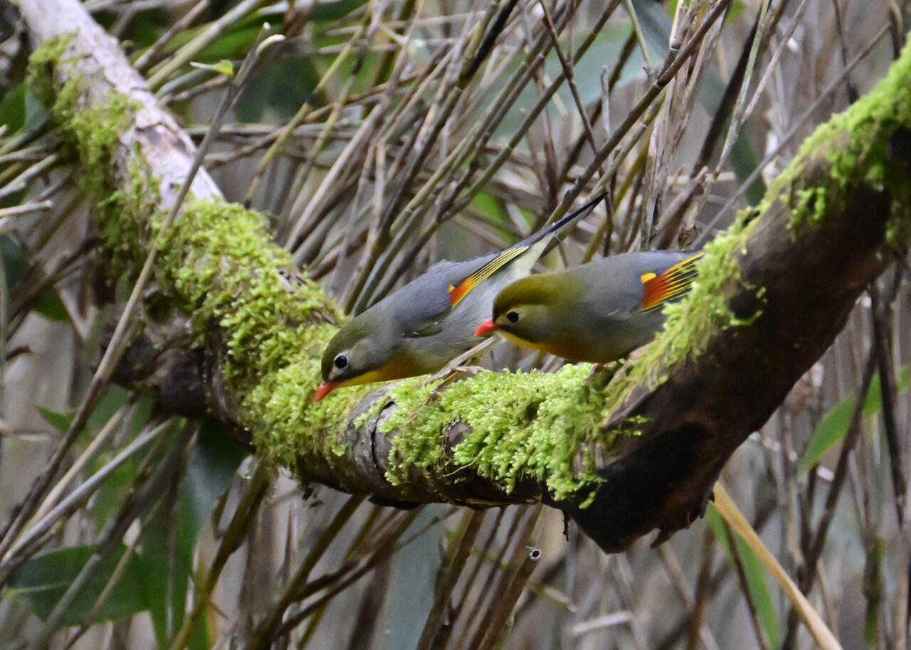 写真左が♂で右が♀です。 足環を見ないと判別できませんが、撮影角度にもよりますが ♀ の嘴はまだ少し短い様に見え、若いので産卵までいかないのかと私的には思えます。