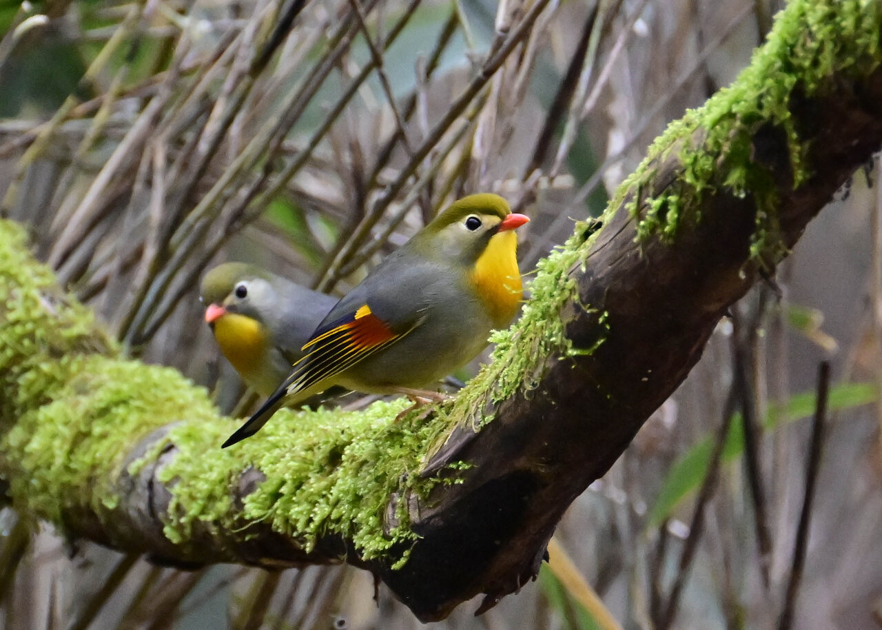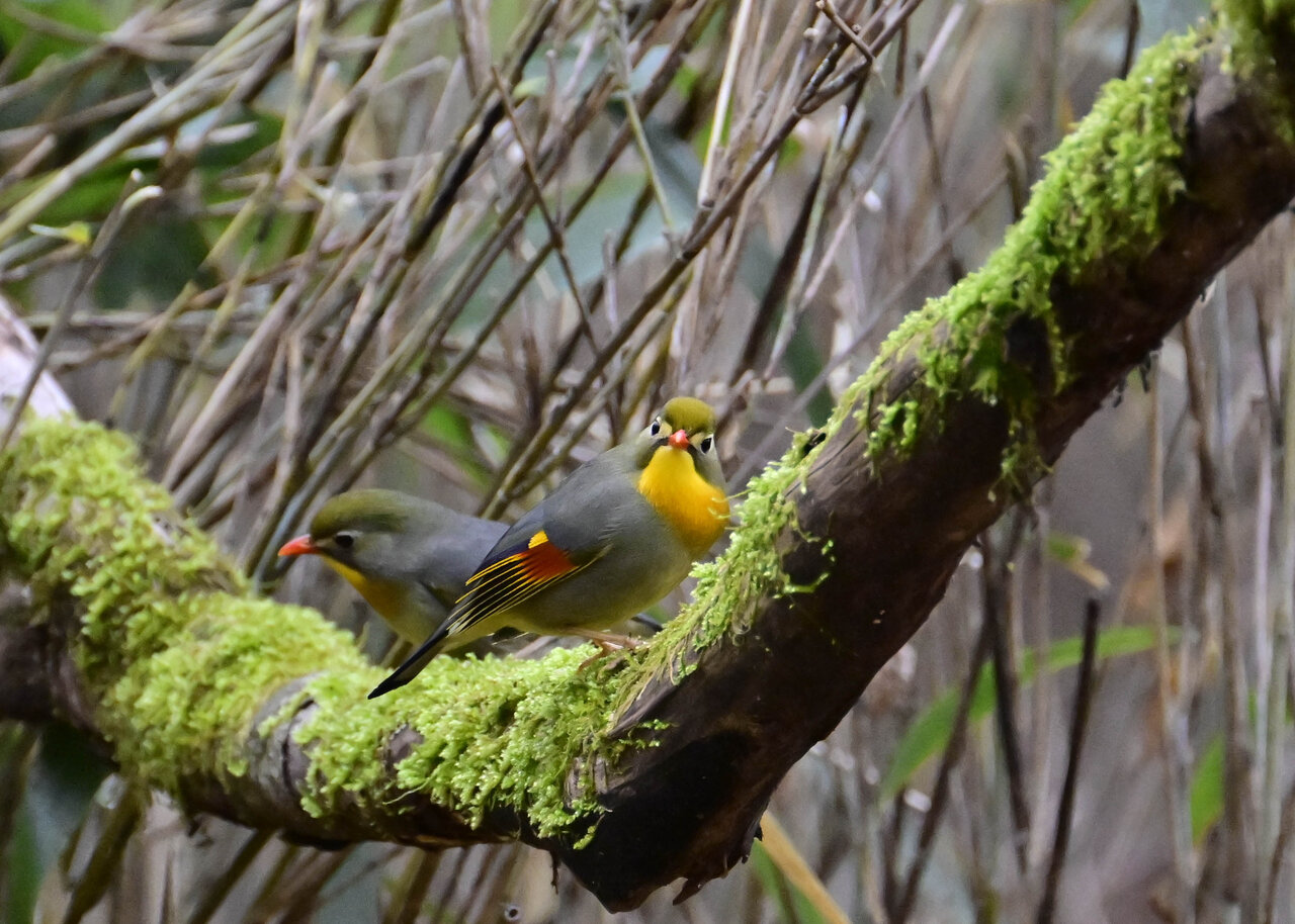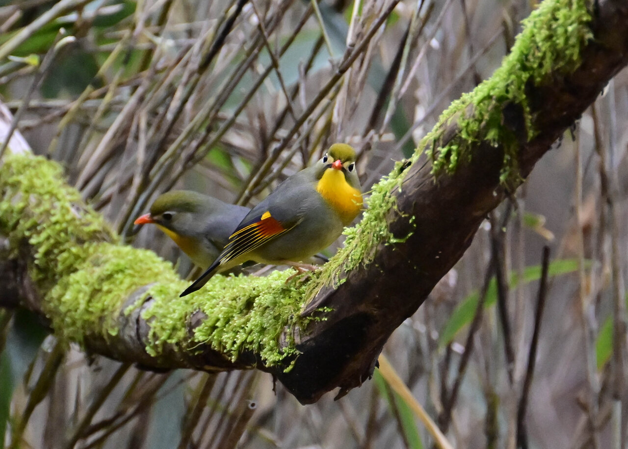 写真左が♂で右が♀です。 足環を見ないと判別できませんが、撮影角度にもよりますが ♀ の嘴はまだ少し短い様に見え、若いので産卵までいかないのかと私的には思えます。