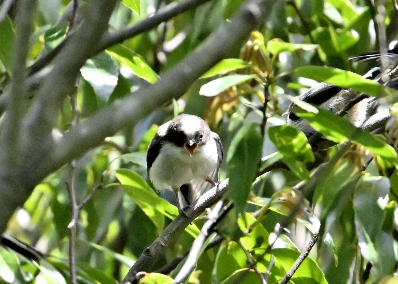 一昨日まで、ヒナは洞(巣)のある木の高い所に居ました(後日、掲載)が昨日(5/21)社殿横の森の方に行ったそうです。今日(5/22)も森に居り鳴き声は聞こえるようですが、見つからないとのこと。