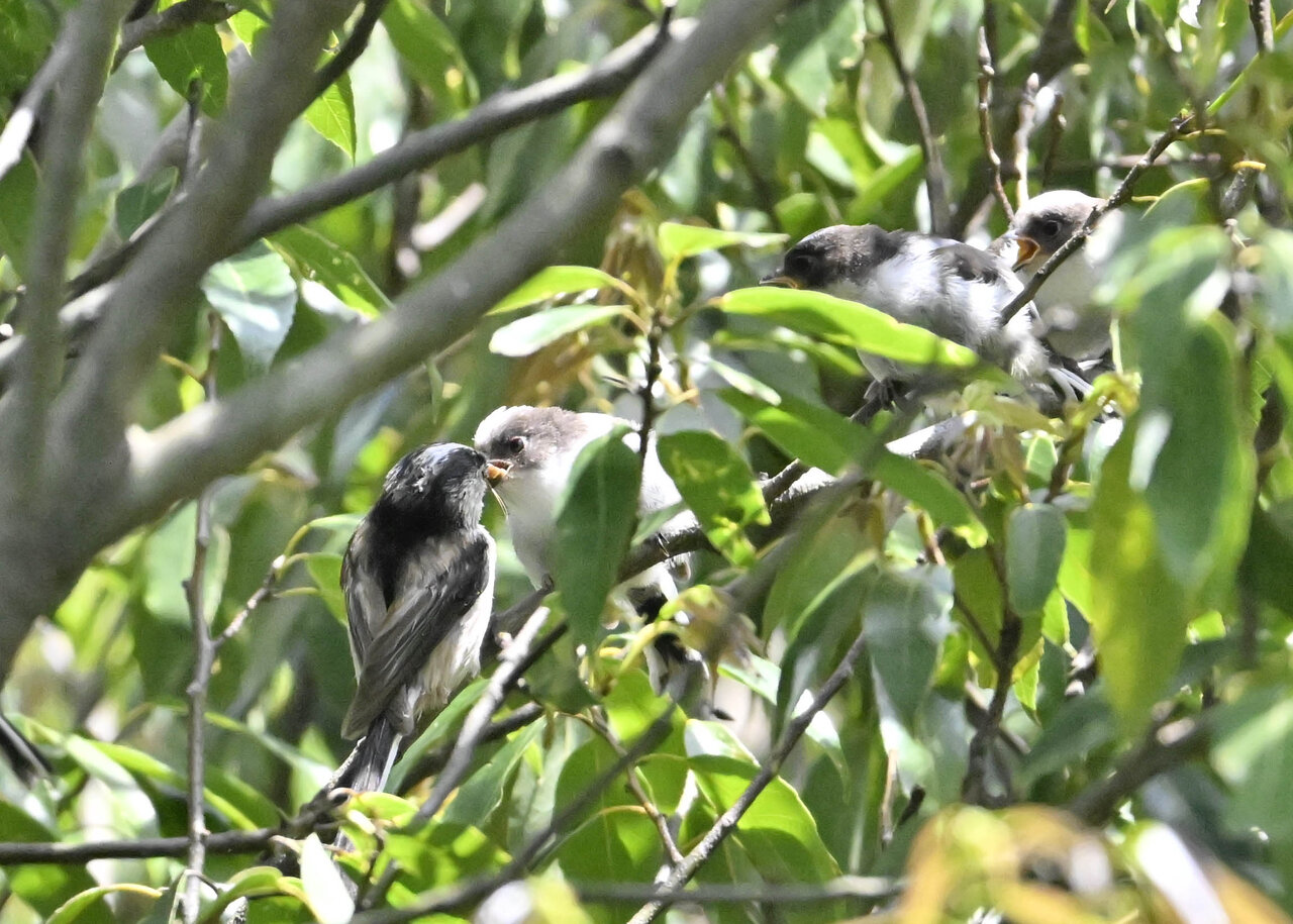 後一週間~10日位で巣立ちするのではと思い、先日私の嫌いな曇り空でしたが撮ってきました。ヒナを見張っている親鳥はこの日も「ひかる♂」で、「レイ♀」が帰ってくるのを待ちましたが、帰ってこないの上陽炎も強くなったので退散しました。
