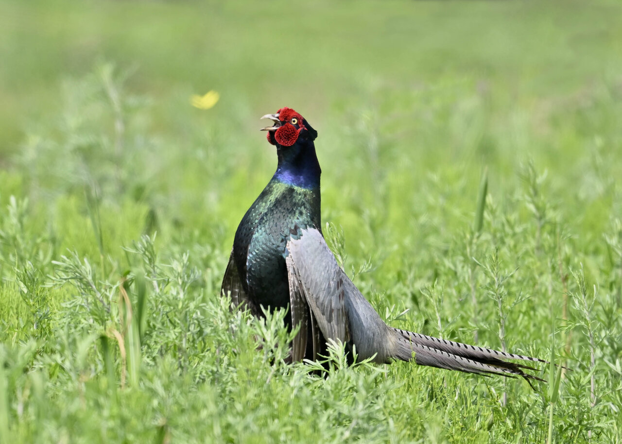 今回も、遠くでの「囀り飛翔」を見つけ近くに来るのを待ちましたが遠くのものしか撮れませんでした。