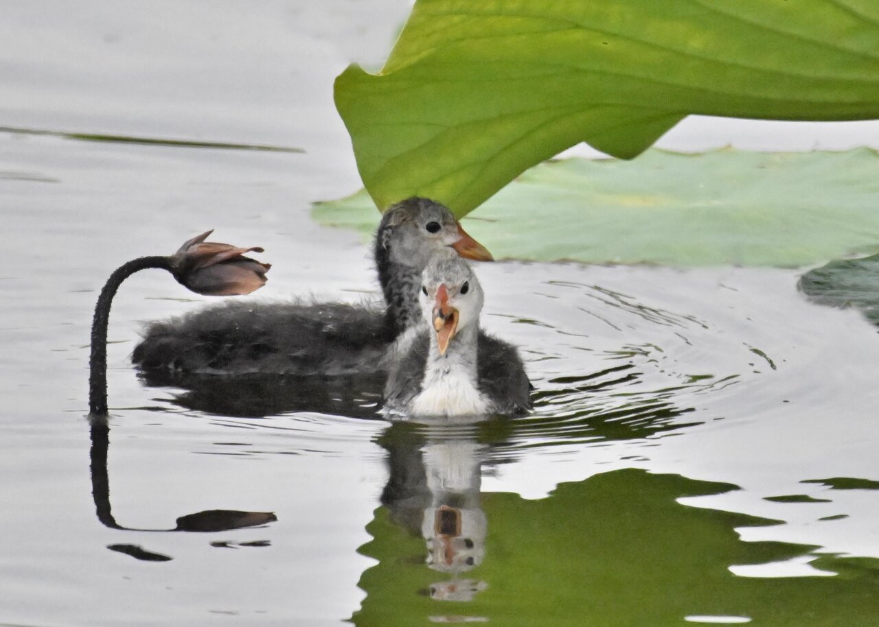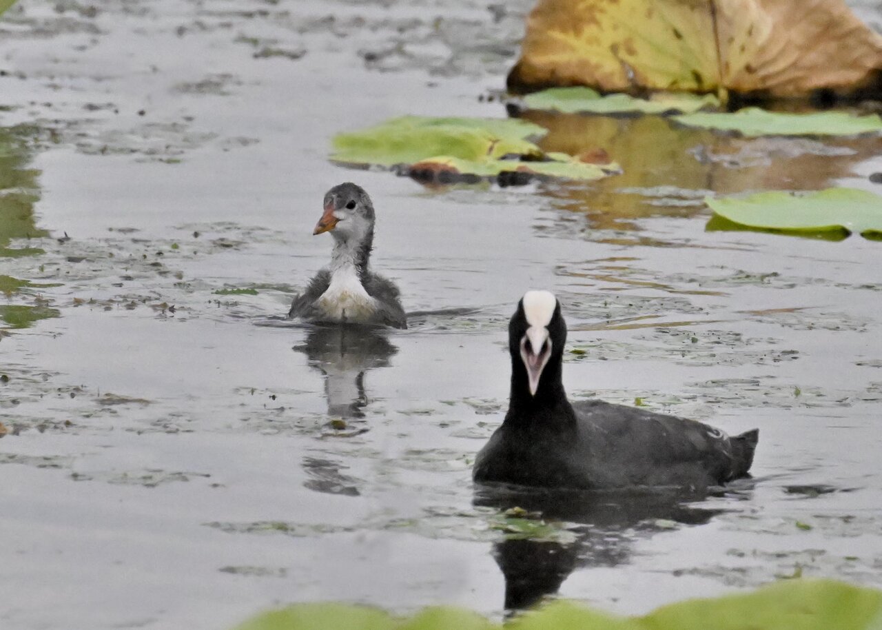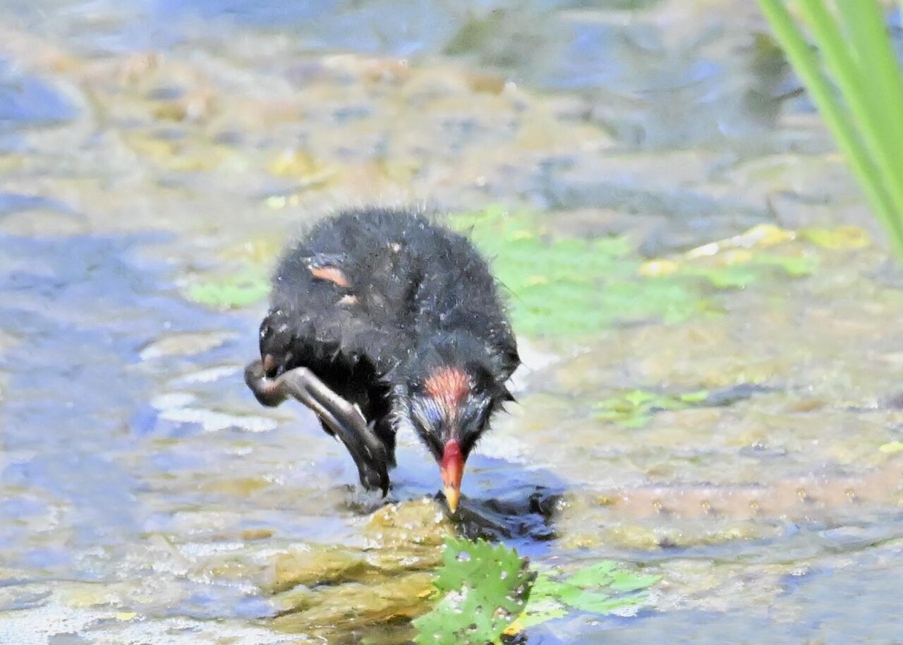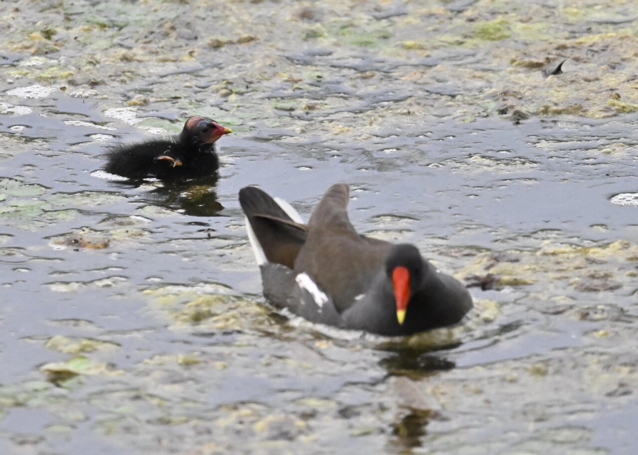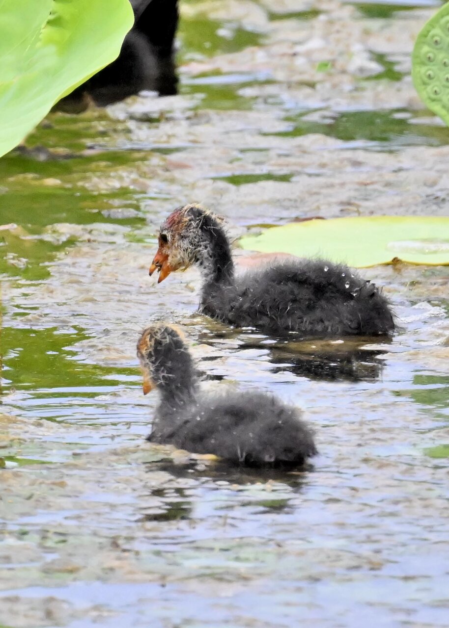 今日は昨日に続き、バンを掲載しています。巣立ちヒナはまだ自力で十分な餌が捕れないので親鳥に付き纏い餌をもらっています。