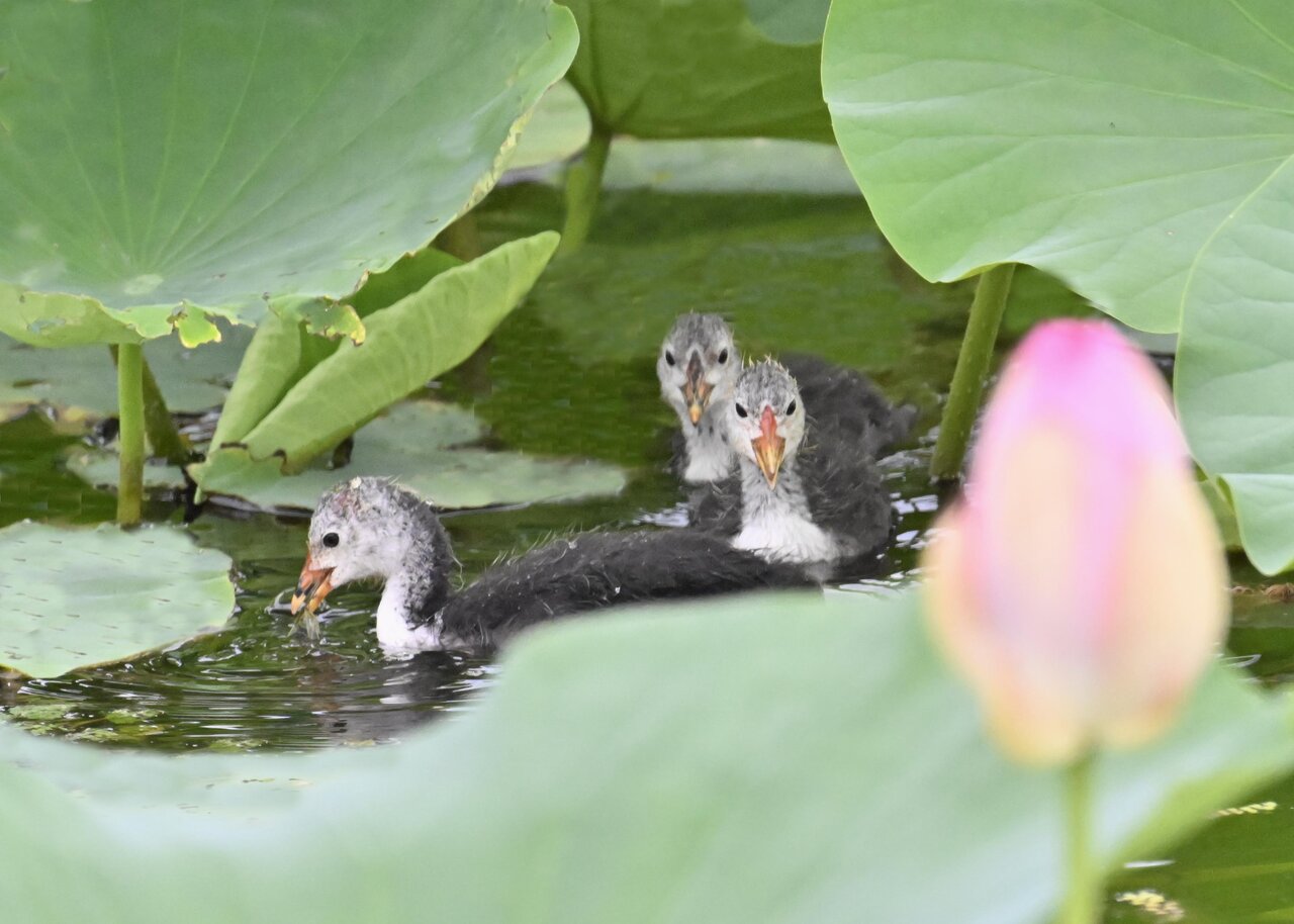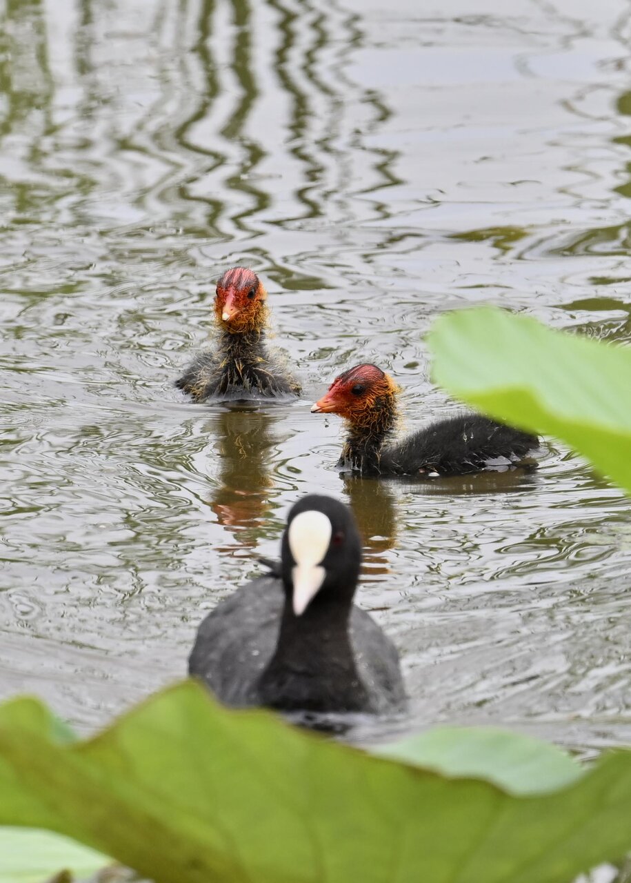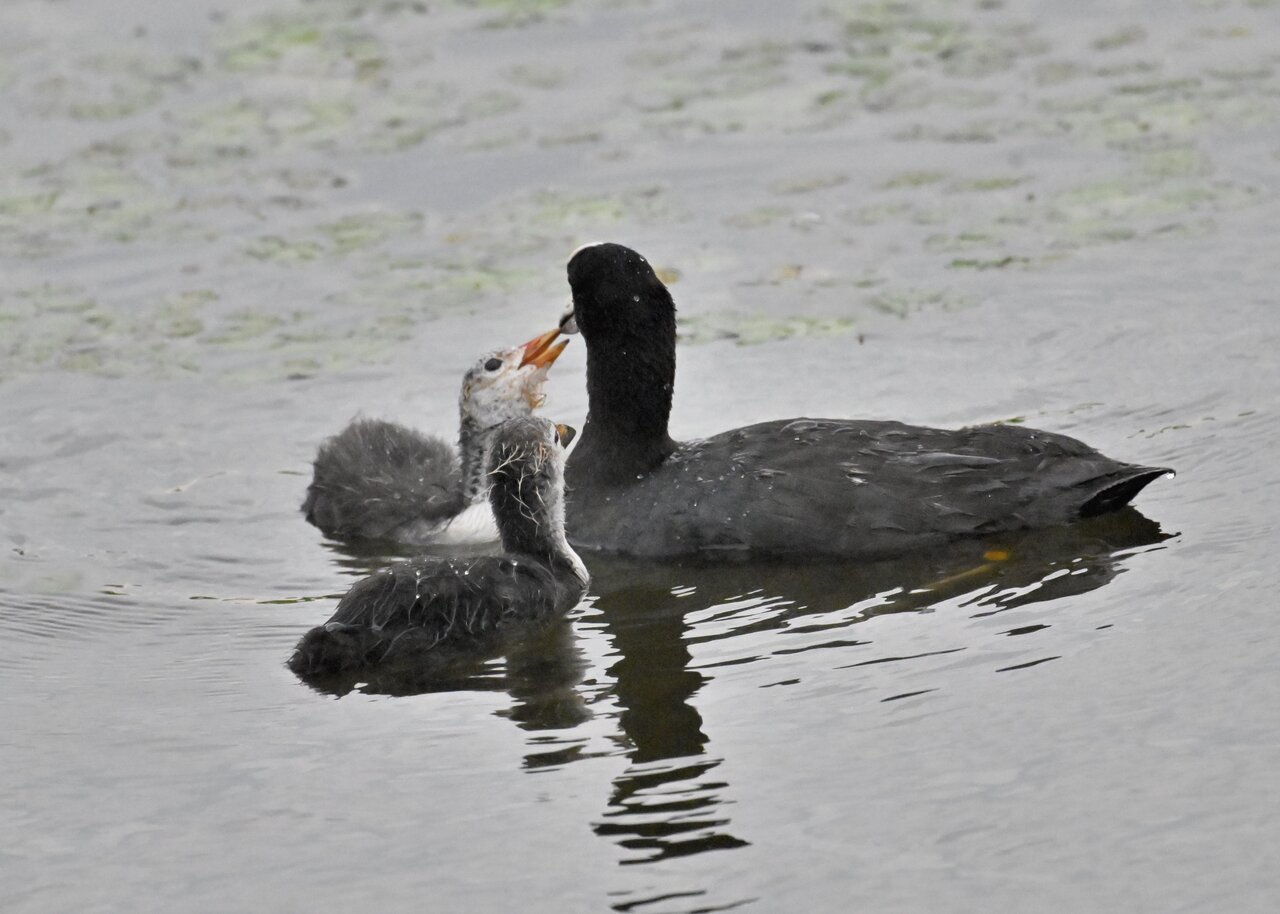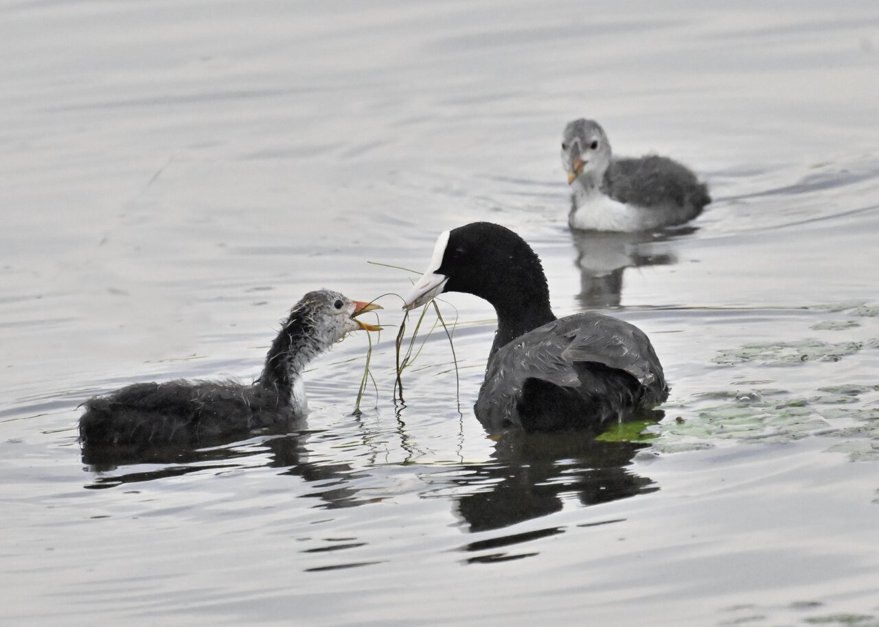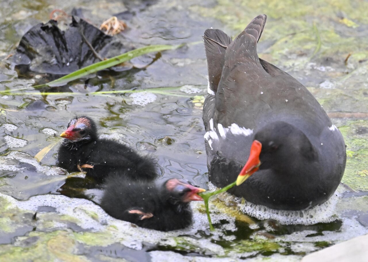 今日は昨日に続き、バンを掲載しています。巣立ちヒナはまだ自力で十分な餌が捕れないので親鳥に付き纏い餌をもらっています。