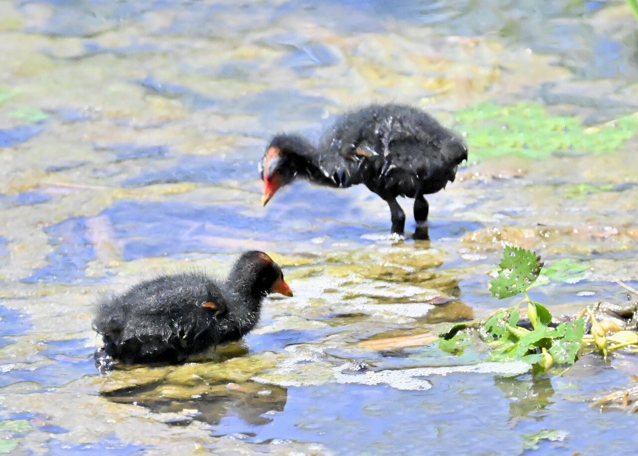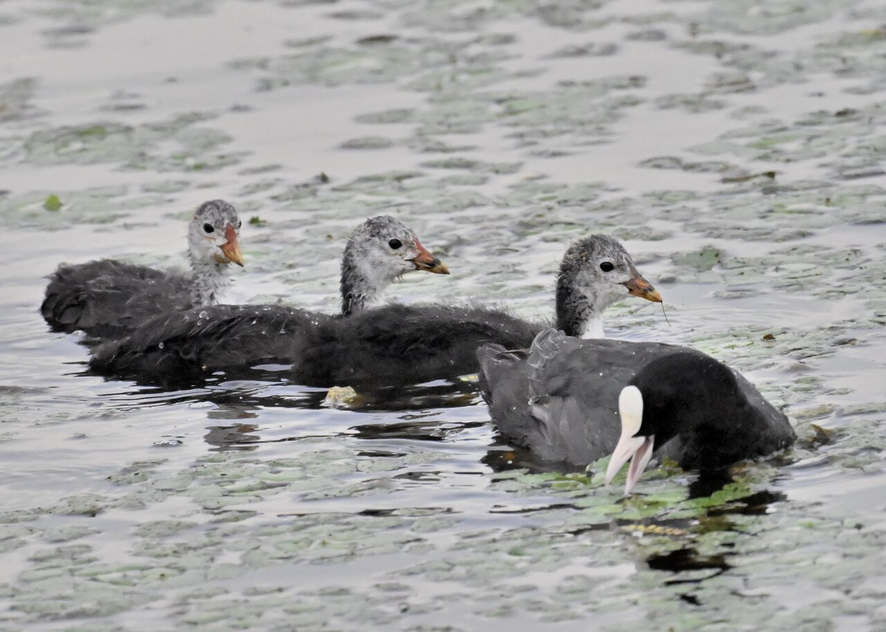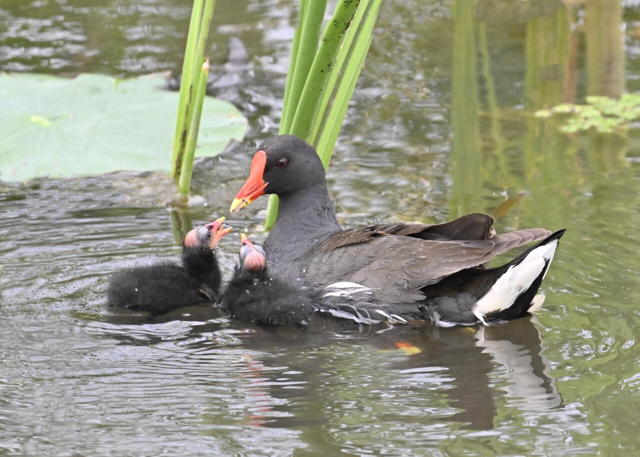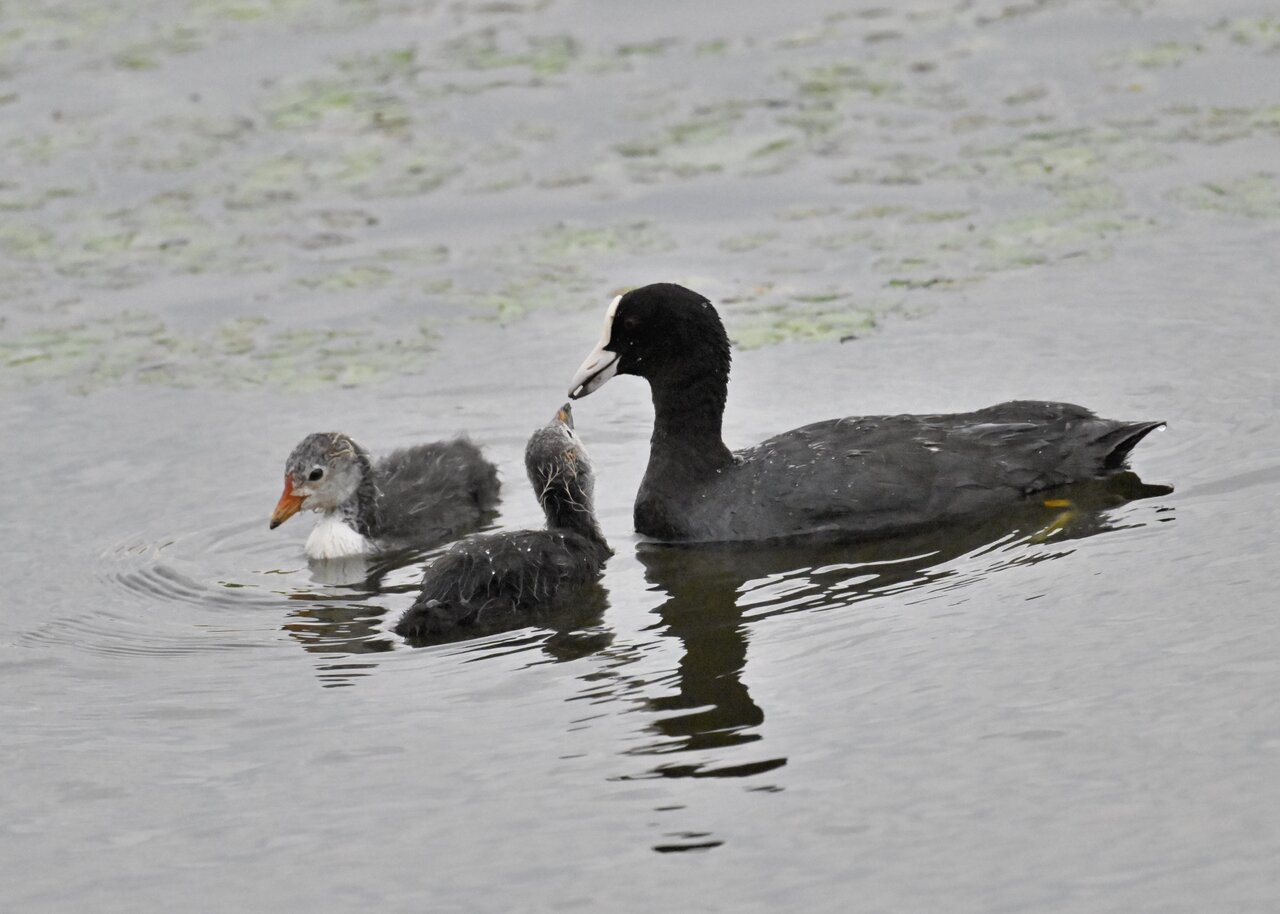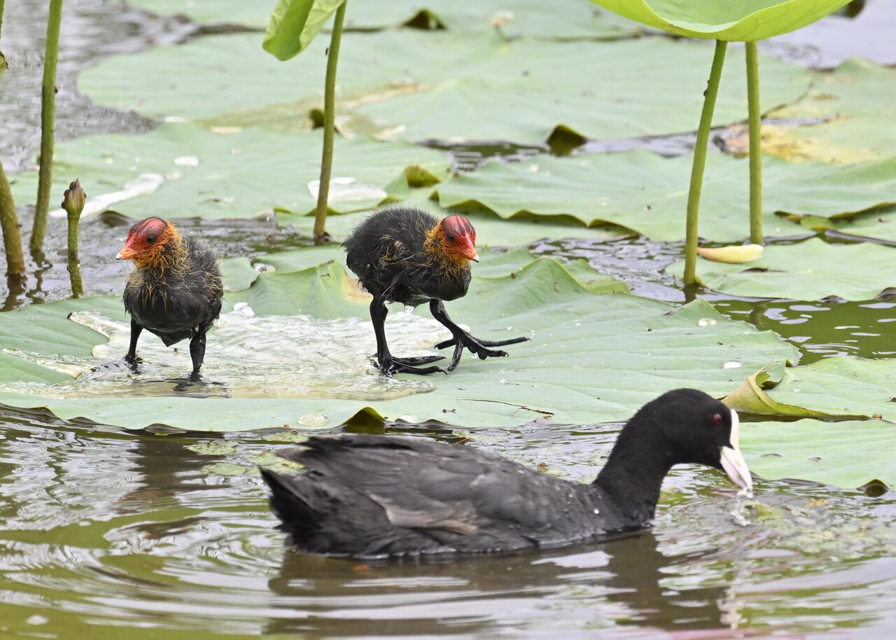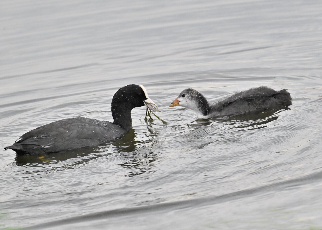 今日は昨日に続き、バンを掲載しています。巣立ちヒナはまだ自力で十分な餌が捕れないので親鳥に付き纏い餌をもらっています。