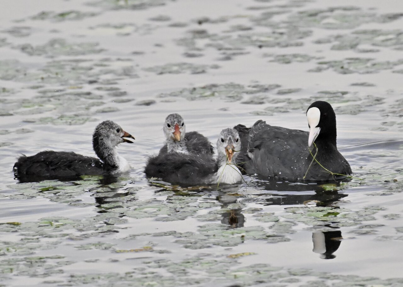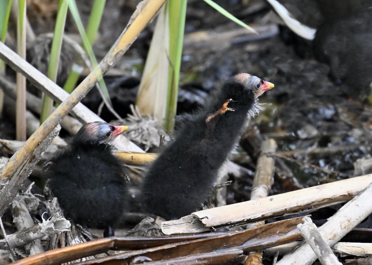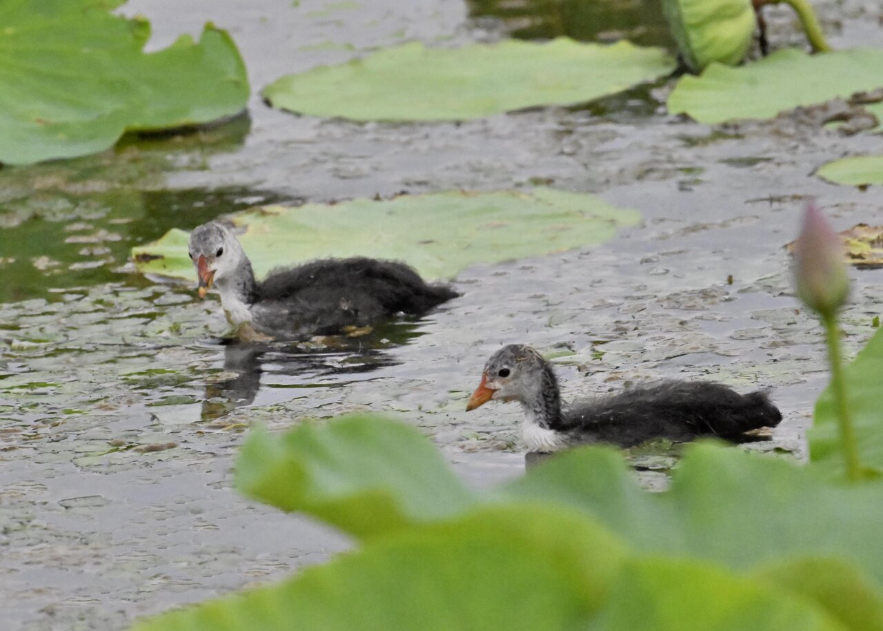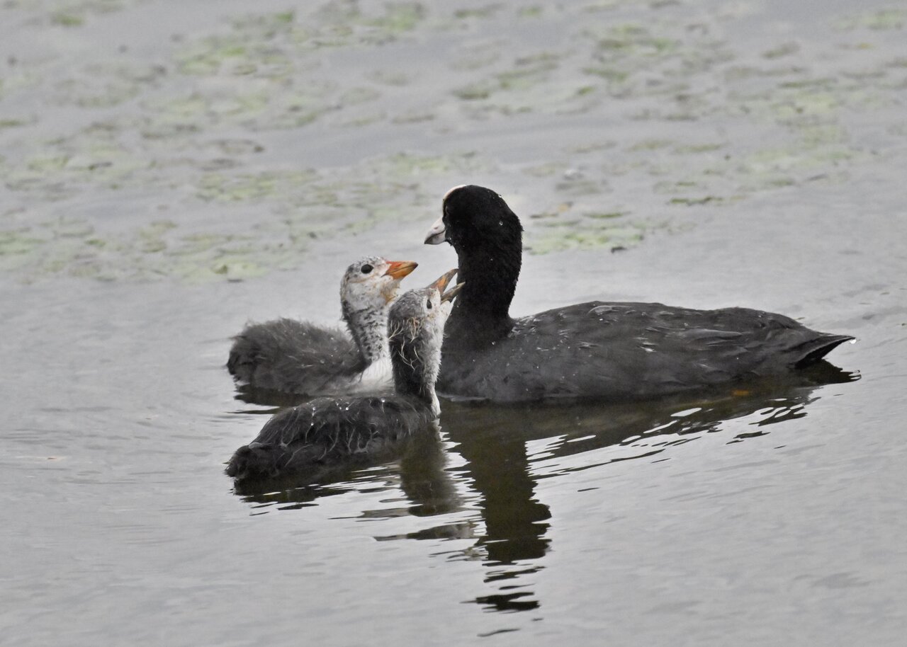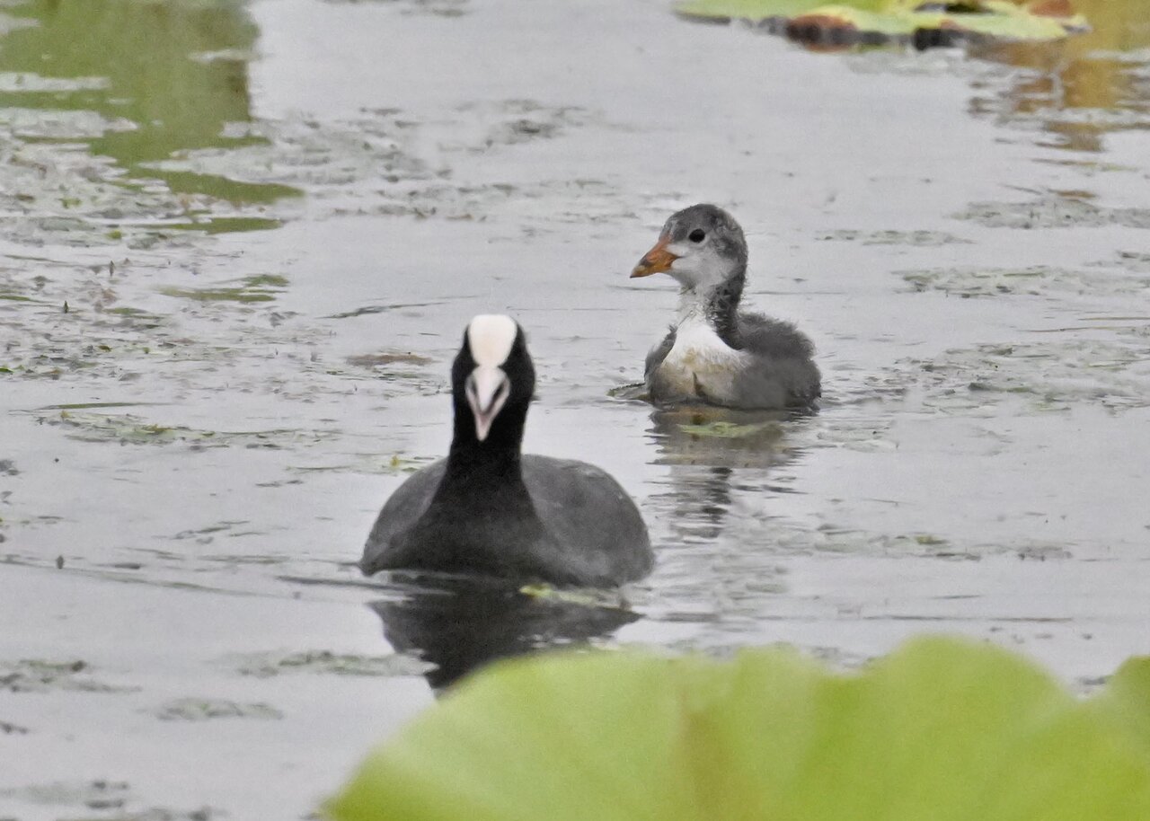 今日は昨日に続き、バンを掲載しています。巣立ちヒナはまだ自力で十分な餌が捕れないので親鳥に付き纏い餌をもらっています。