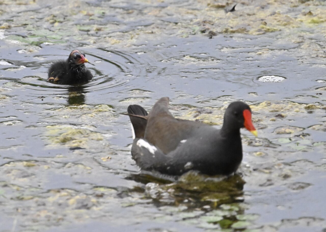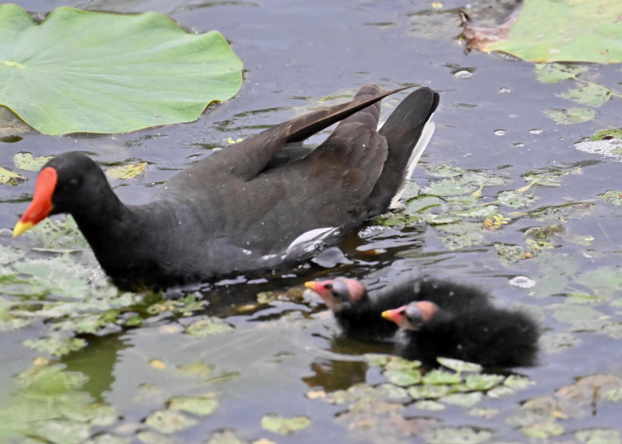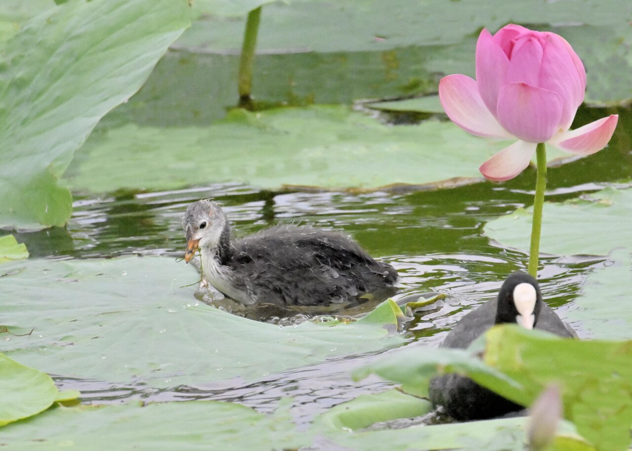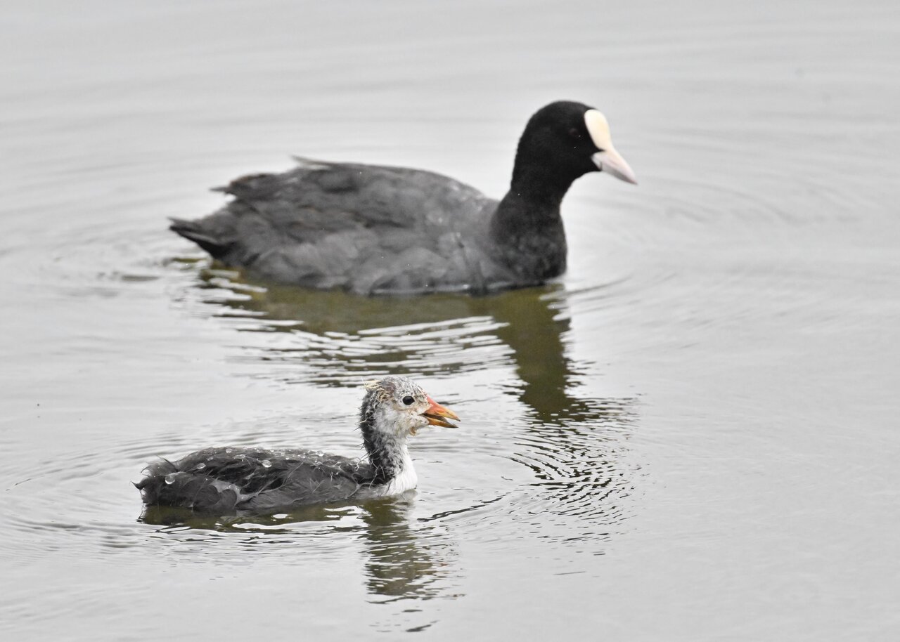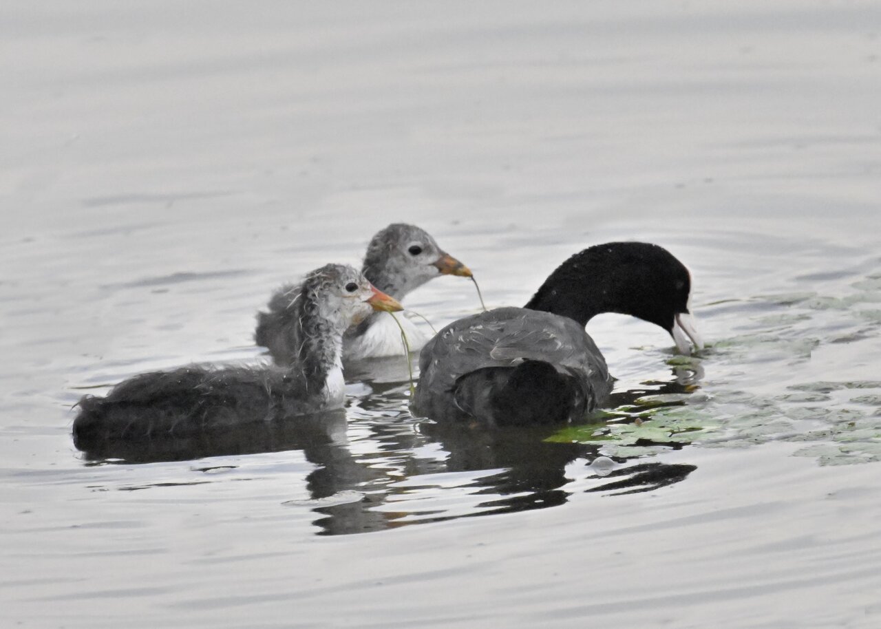 今日は昨日に続き、バンを掲載しています。巣立ちヒナはまだ自力で十分な餌が捕れないので親鳥に付き纏い餌をもらっています。