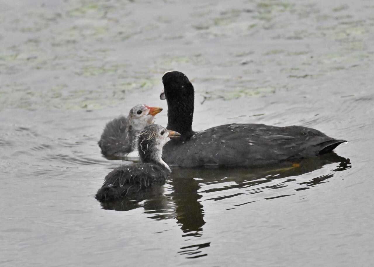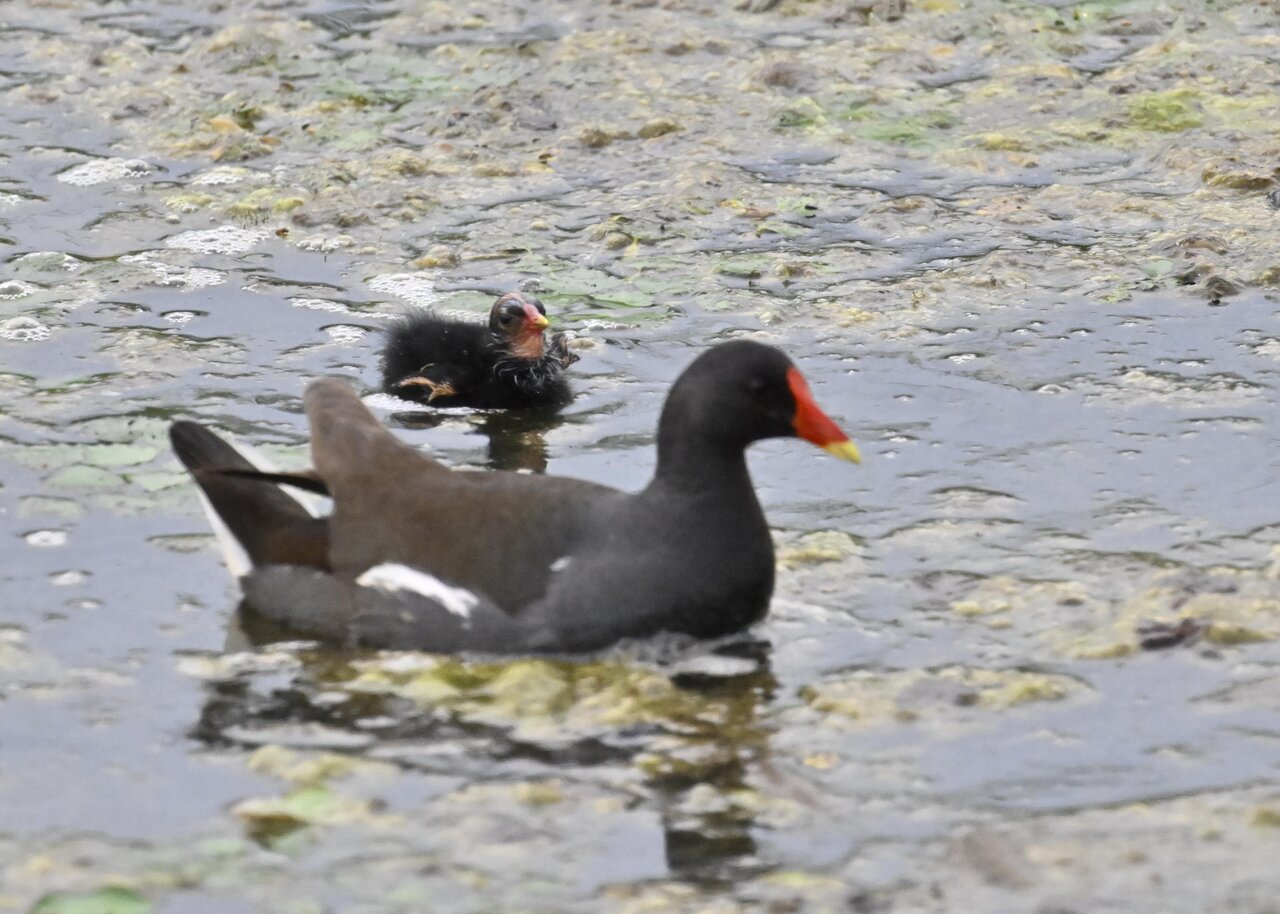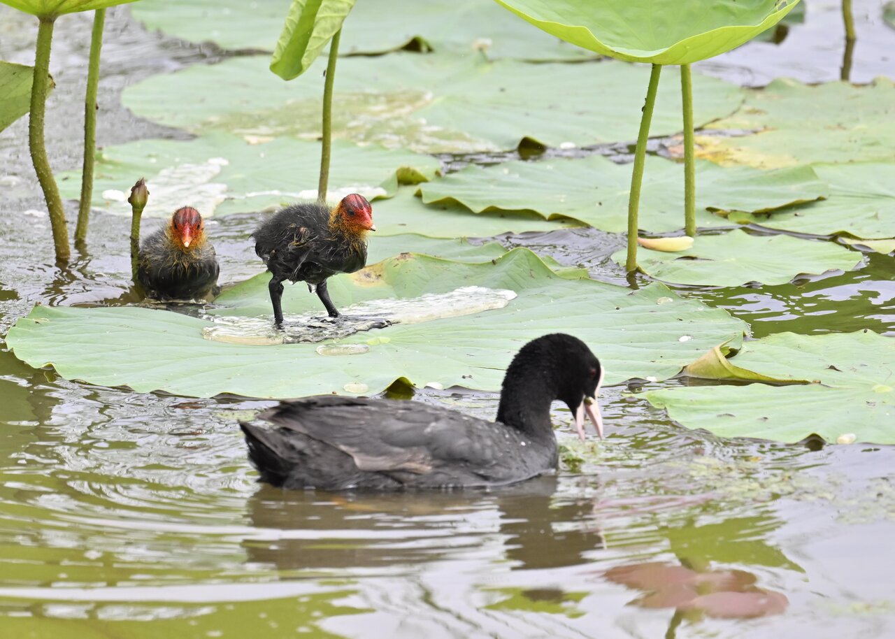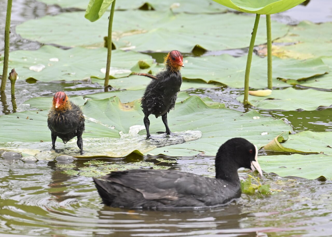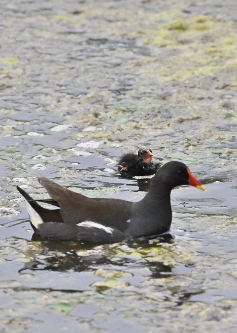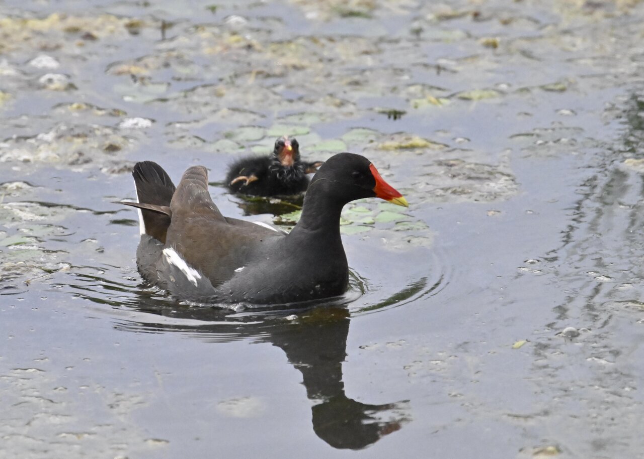 今日は昨日に続き、バンを掲載しています。巣立ちヒナはまだ自力で十分な餌が捕れないので親鳥に付き纏い餌をもらっています。