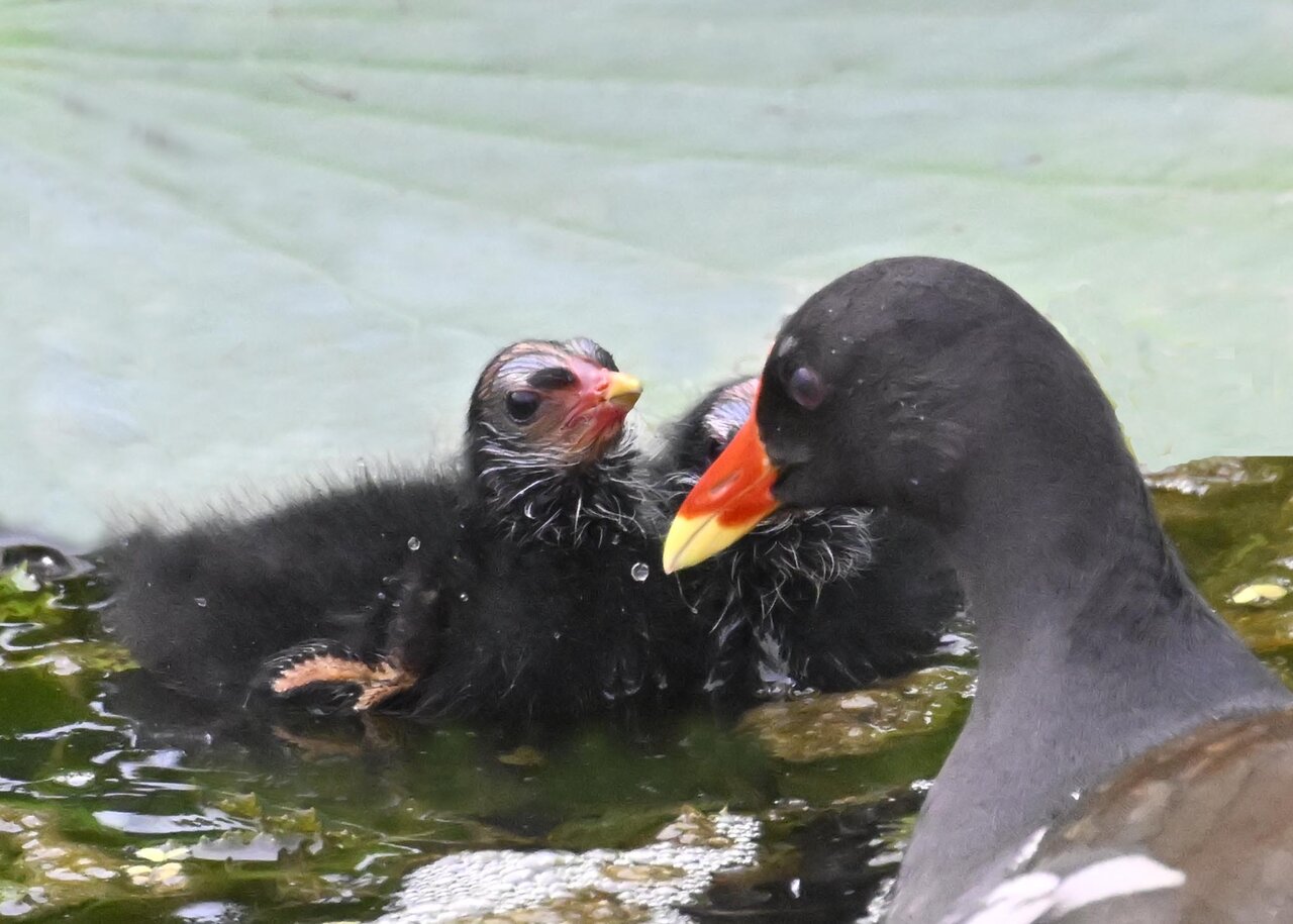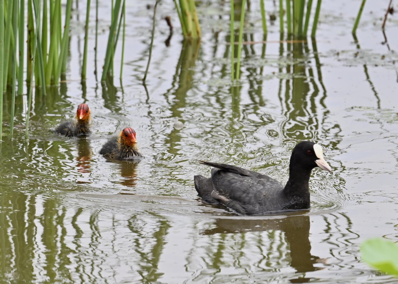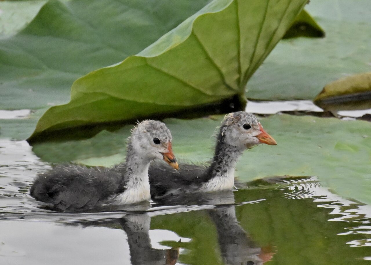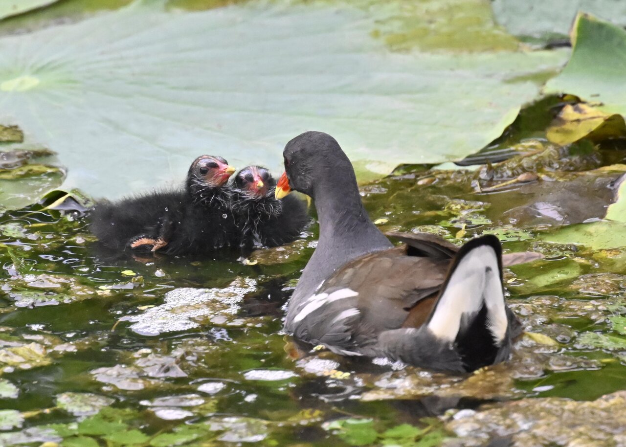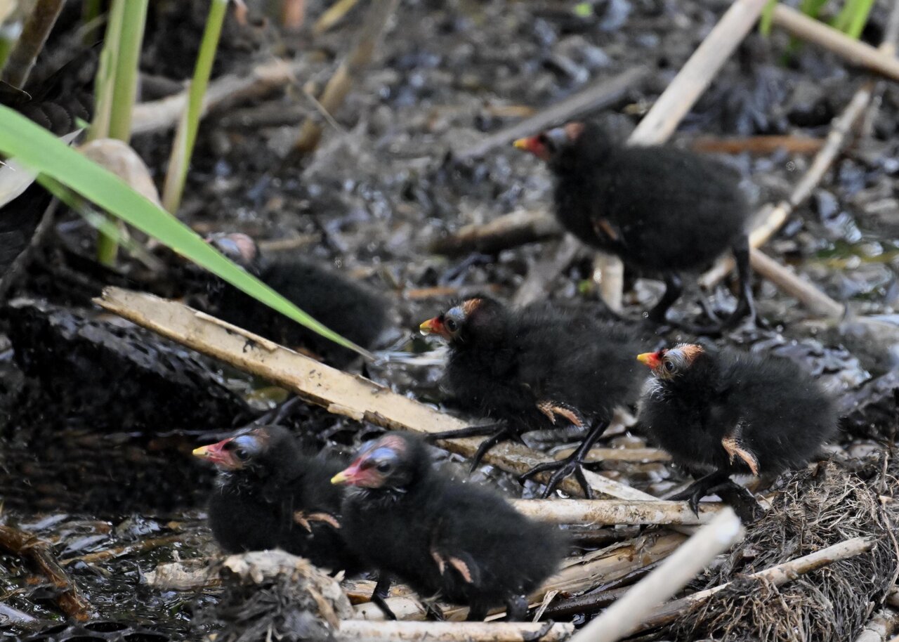 今日は昨日に続き、バンを掲載しています。巣立ちヒナはまだ自力で十分な餌が捕れないので親鳥に付き纏い餌をもらっています。