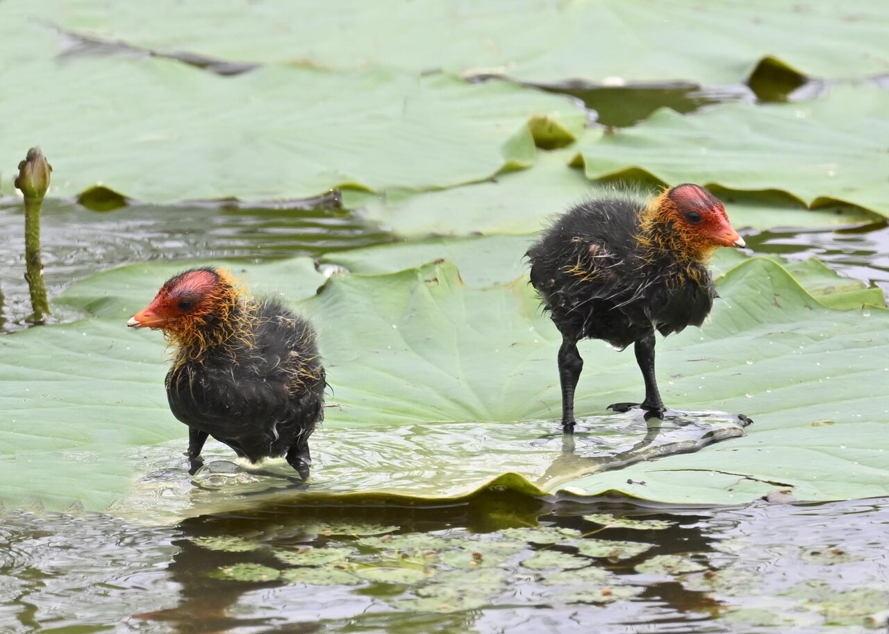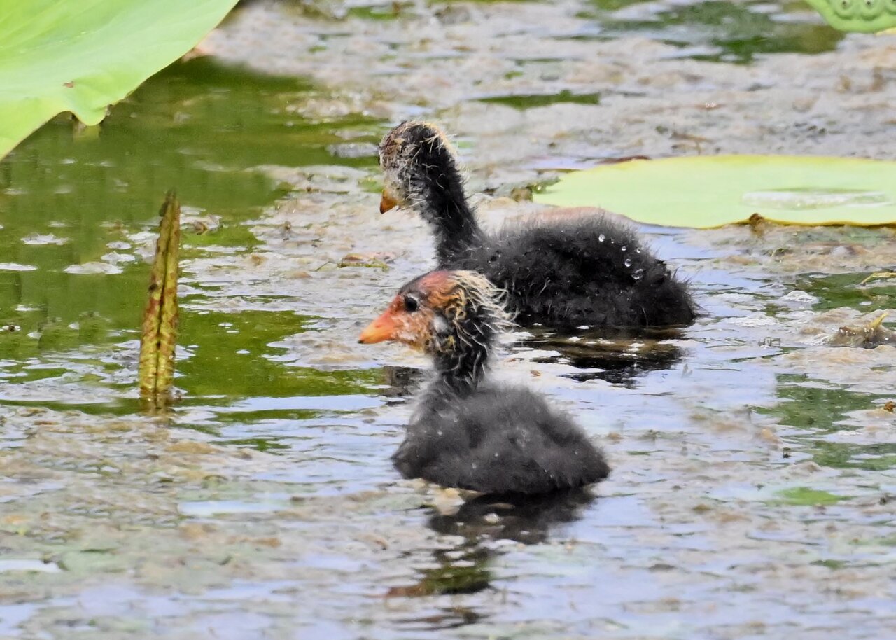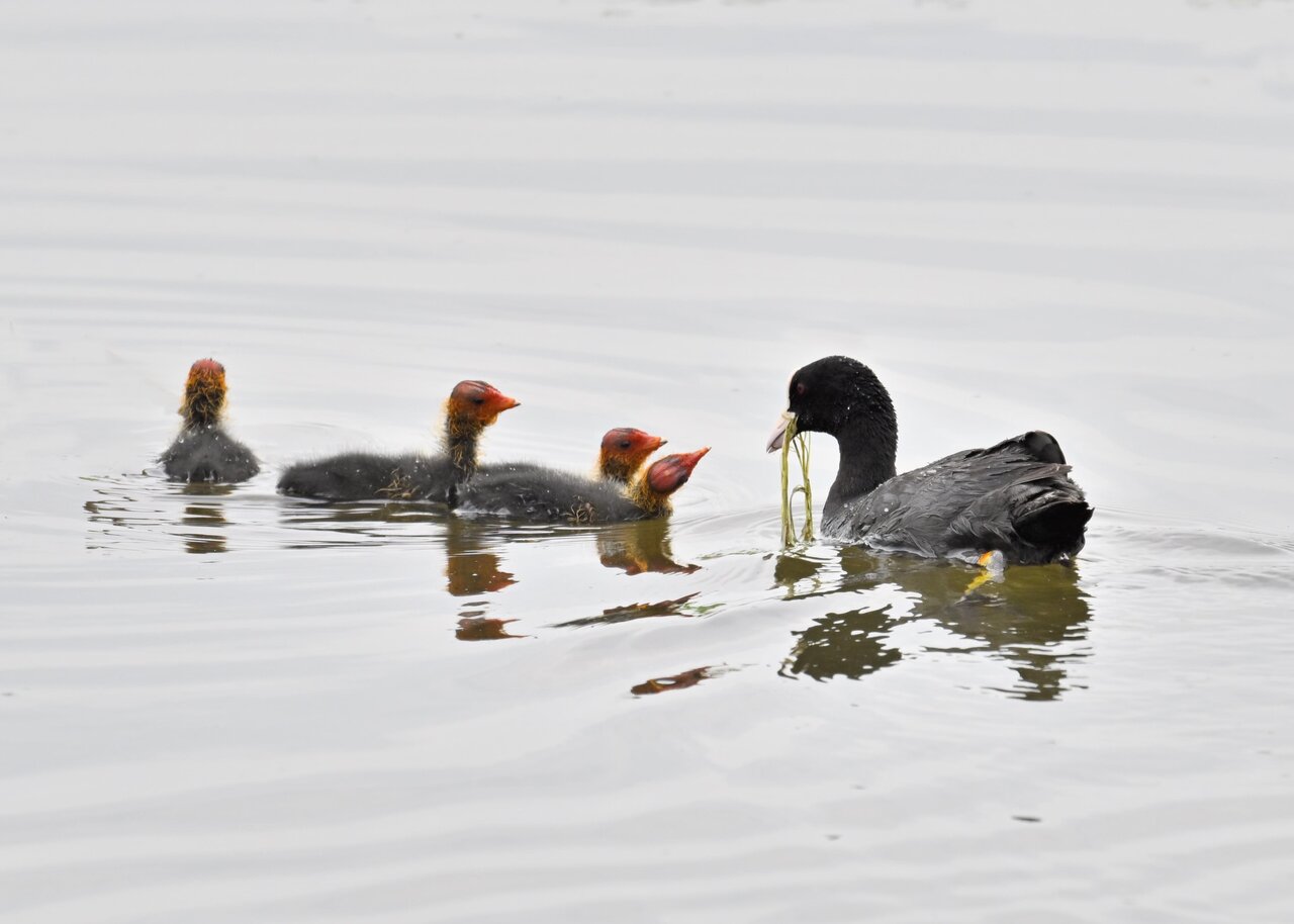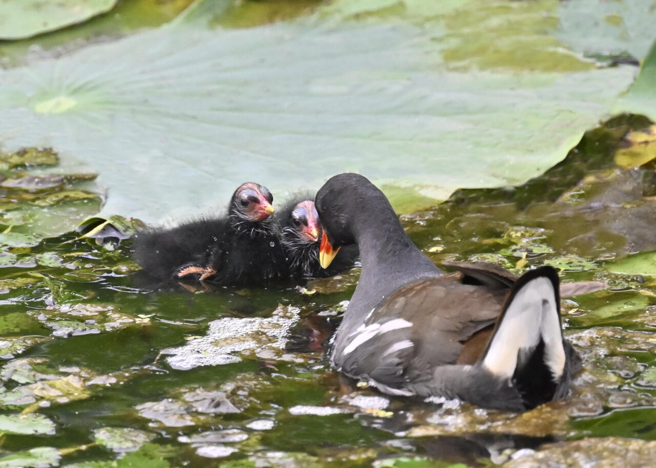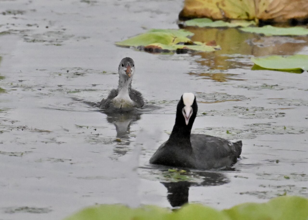今日は昨日に続き、バンを掲載しています。巣立ちヒナはまだ自力で十分な餌が捕れないので親鳥に付き纏い餌をもらっています。