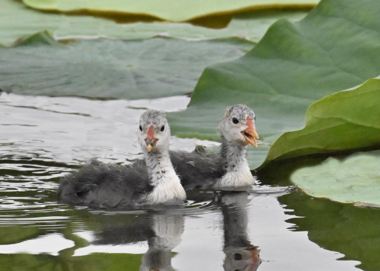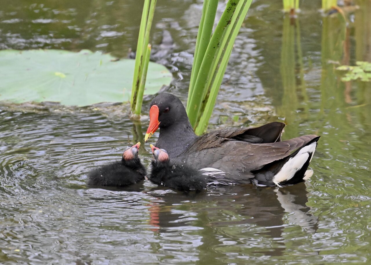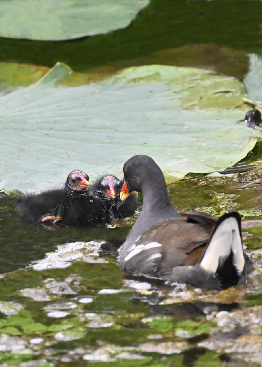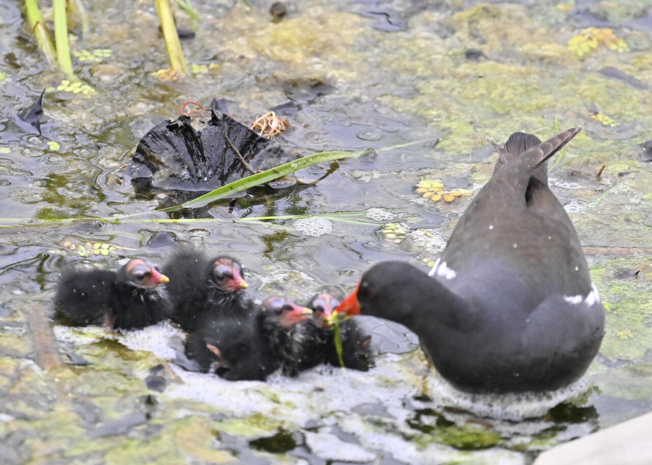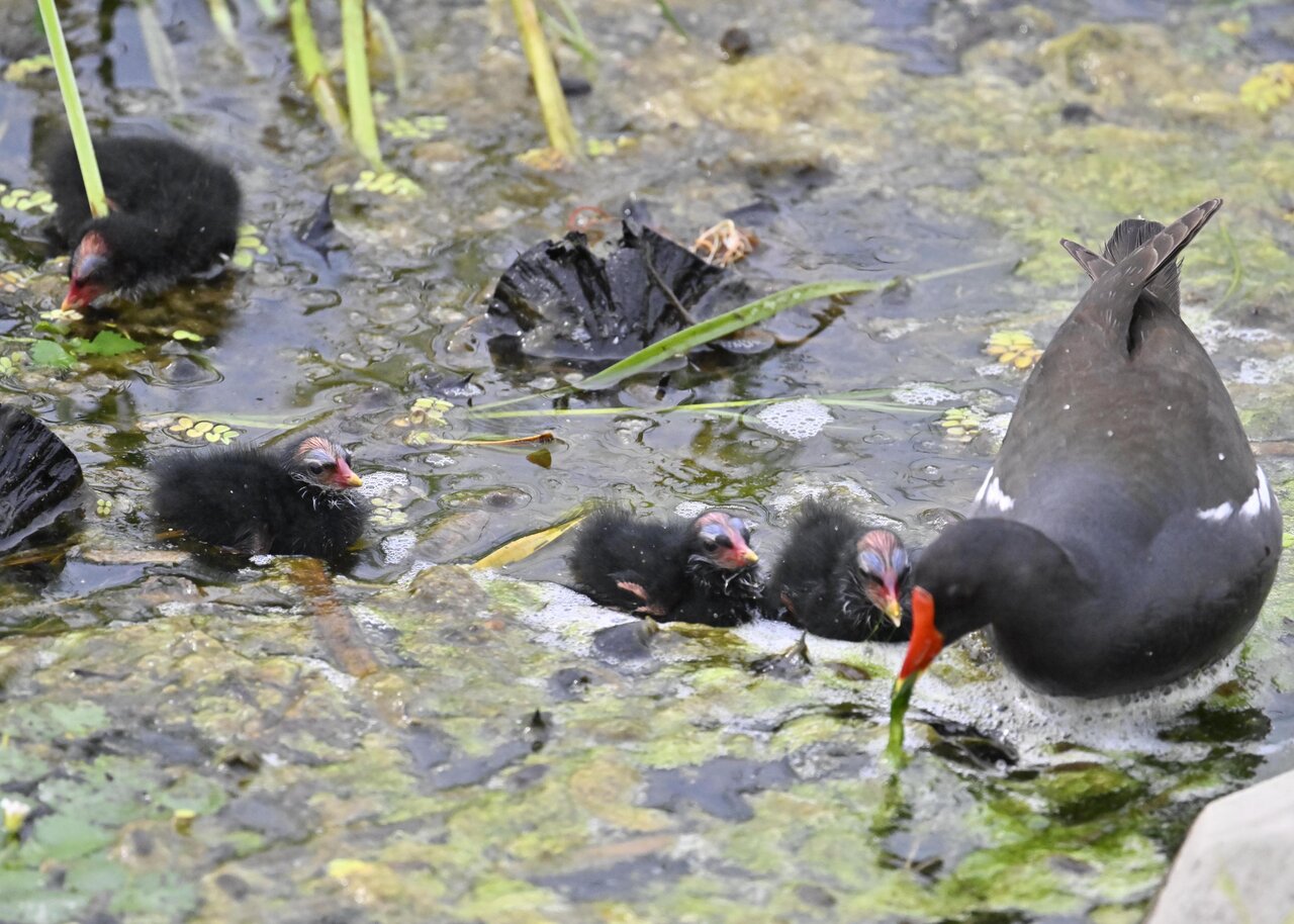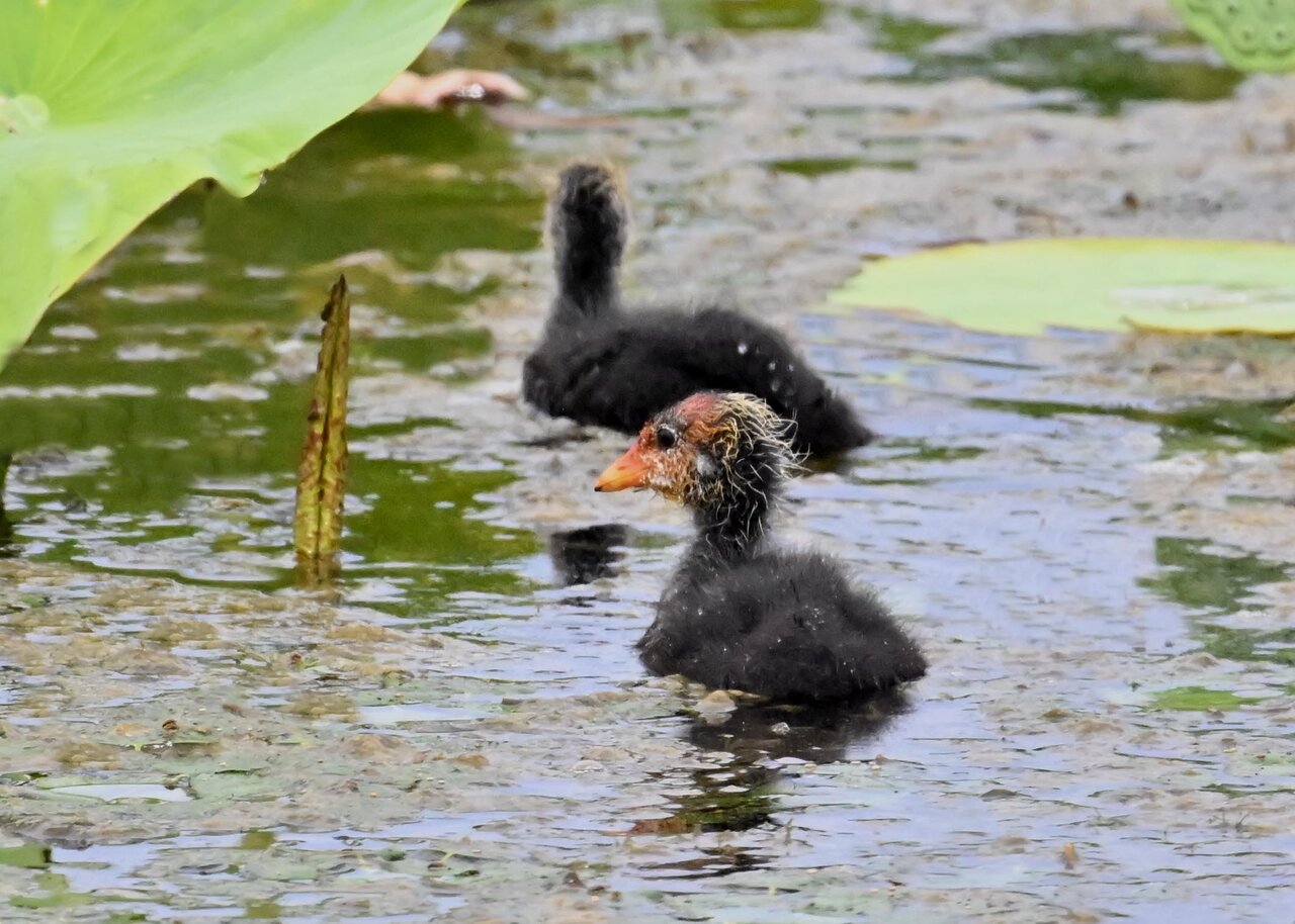 今日は昨日に続き、バンを掲載しています。巣立ちヒナはまだ自力で十分な餌が捕れないので親鳥に付き纏い餌をもらっています。