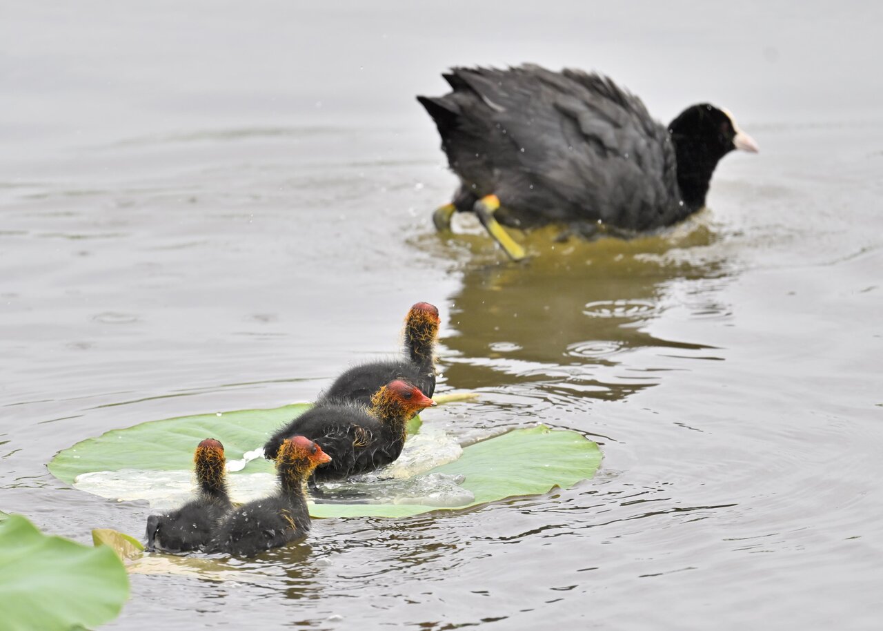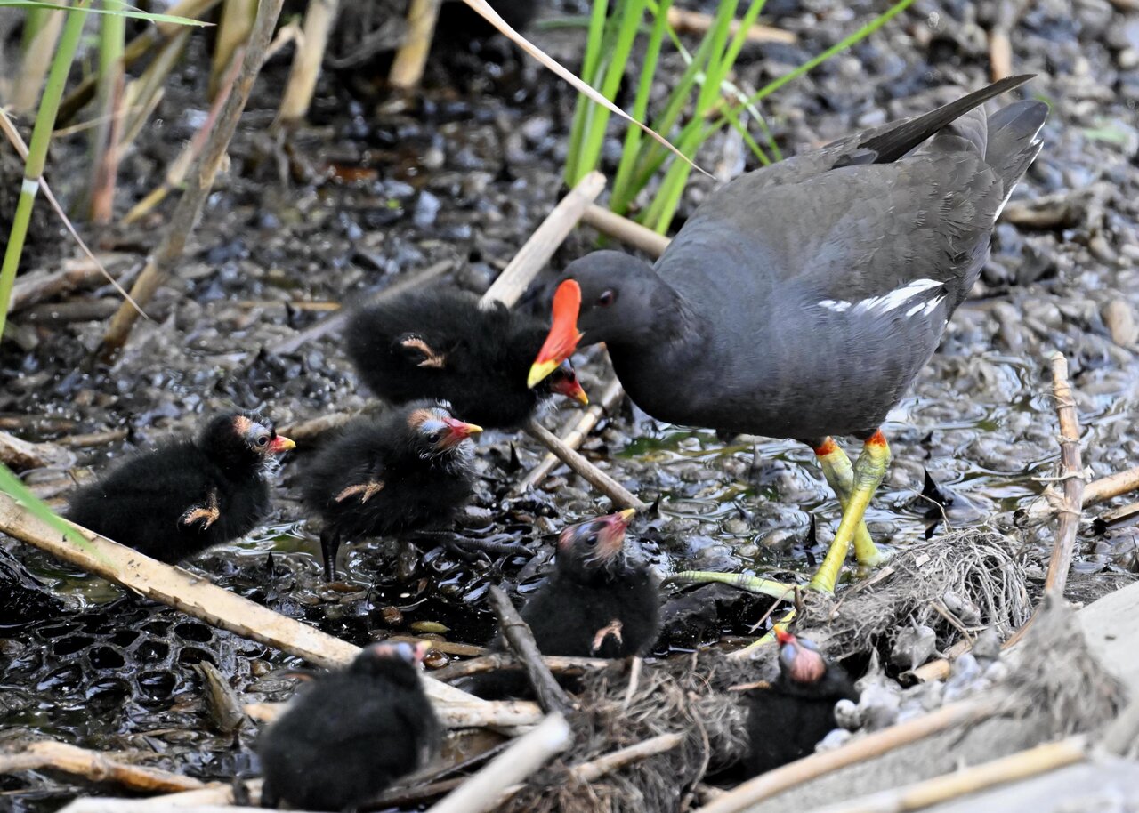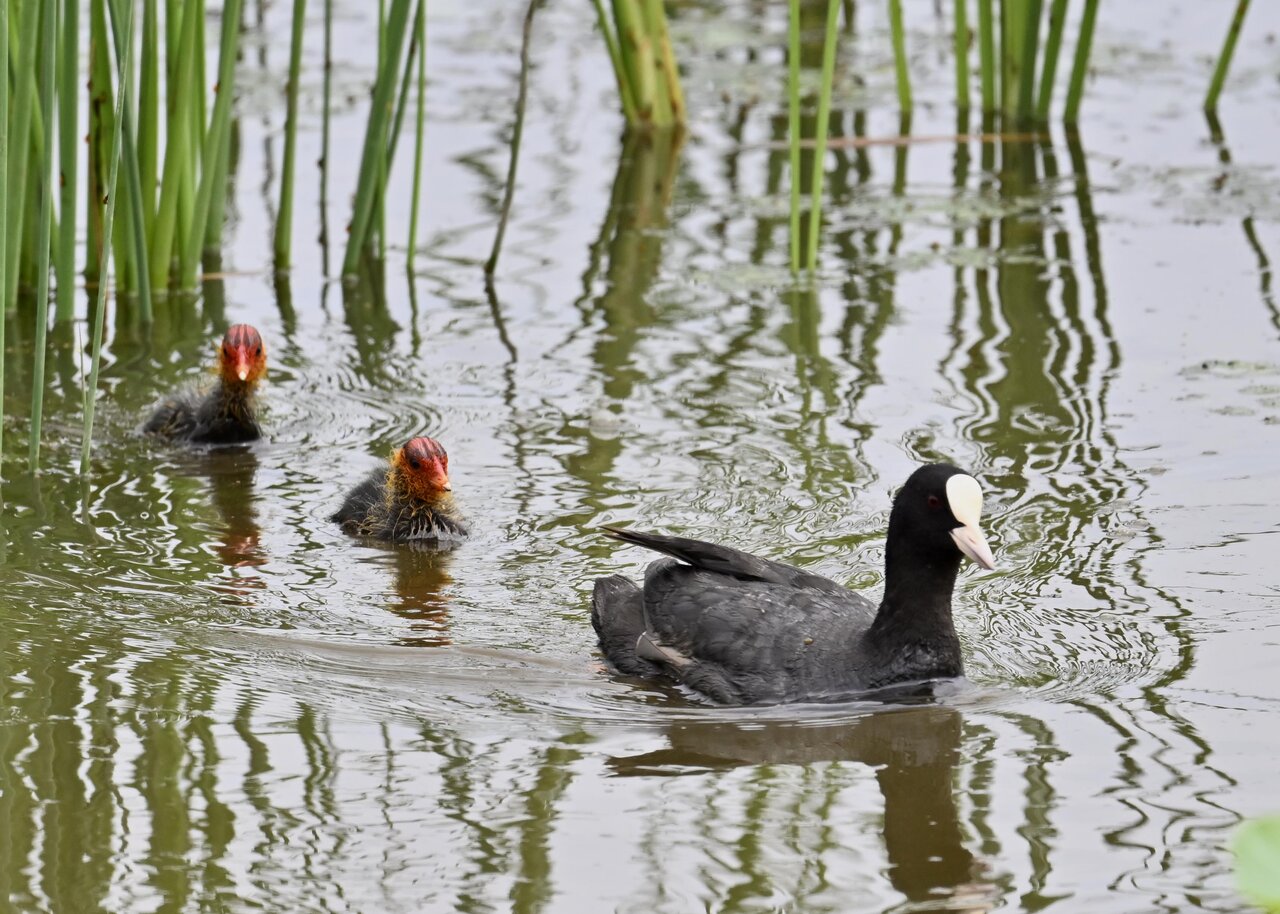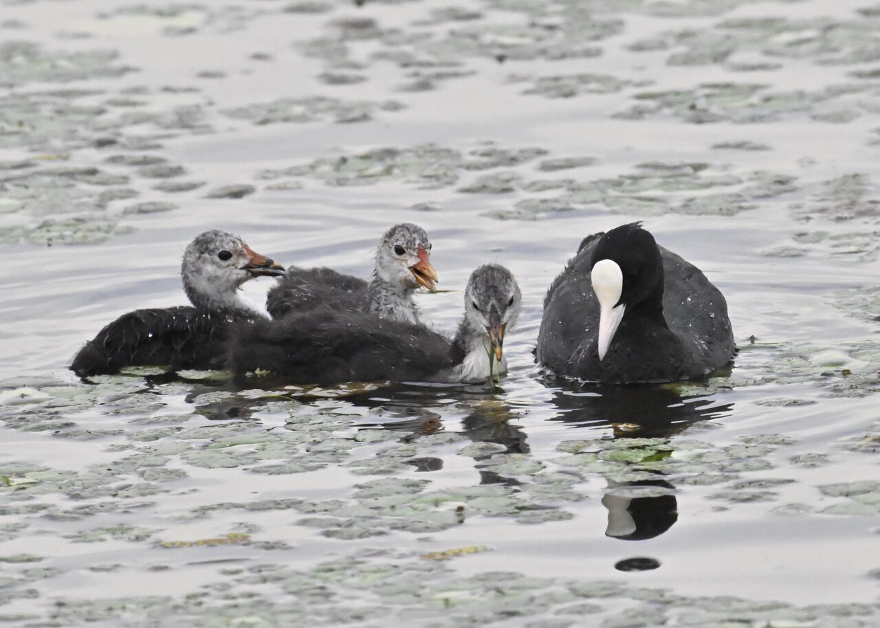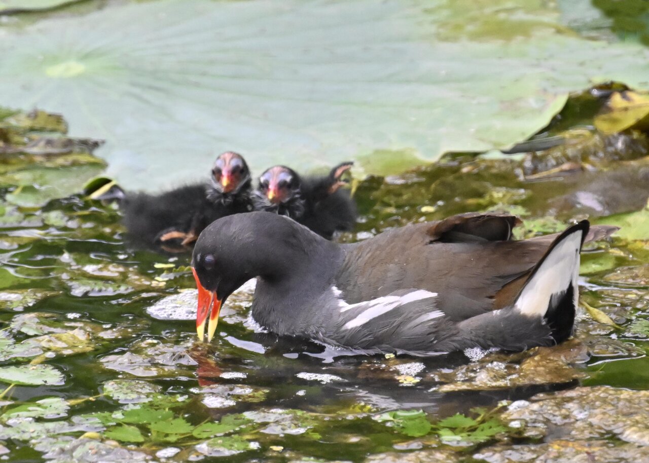 今日は昨日に続き、バンを掲載しています。巣立ちヒナはまだ自力で十分な餌が捕れないので親鳥に付き纏い餌をもらっています。