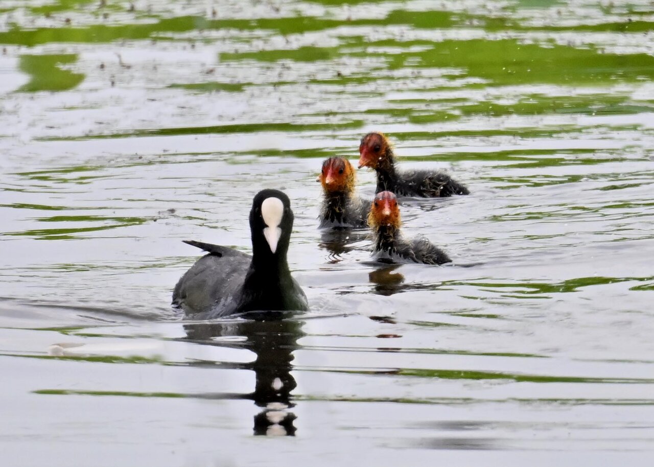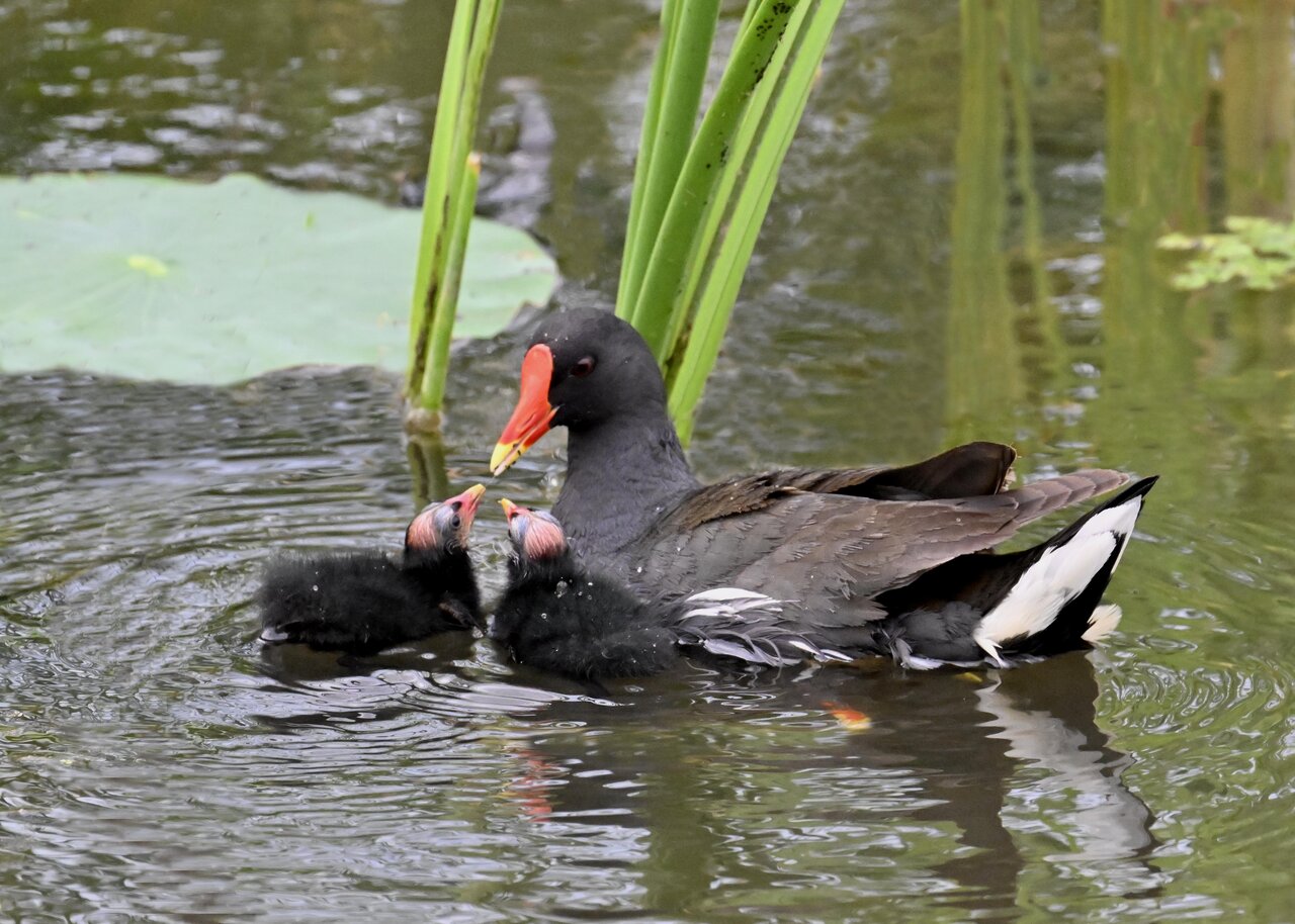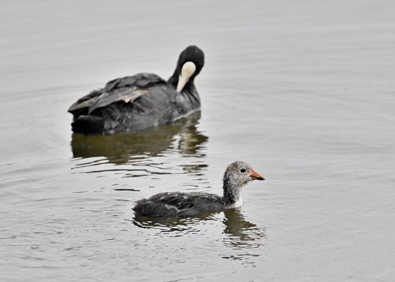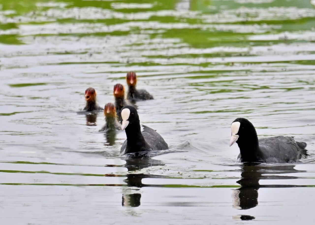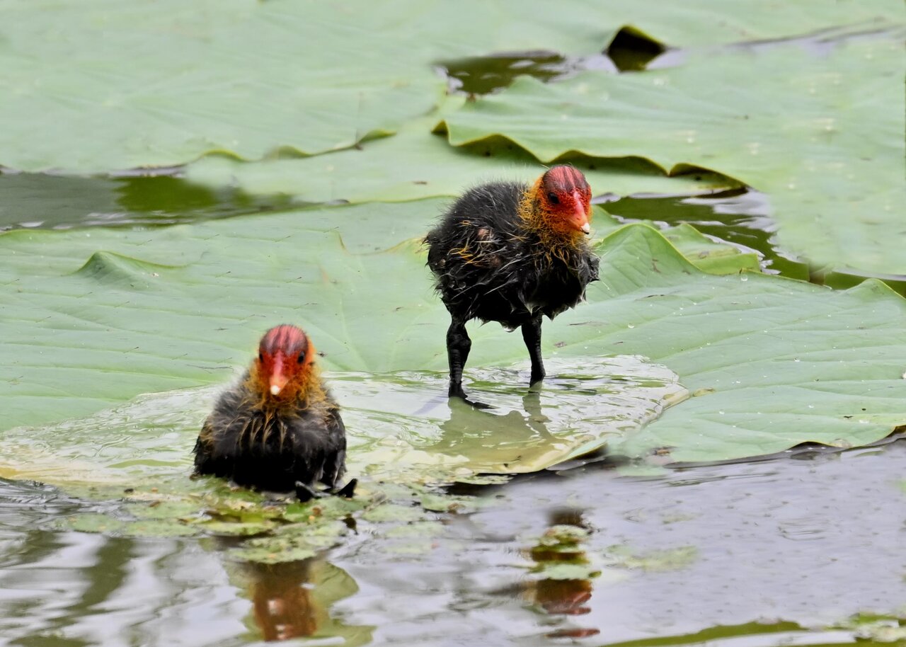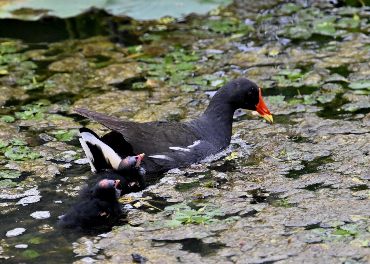 今日は昨日に続き、バンを掲載しています。巣立ちヒナはまだ自力で十分な餌が捕れないので親鳥に付き纏い餌をもらっています。