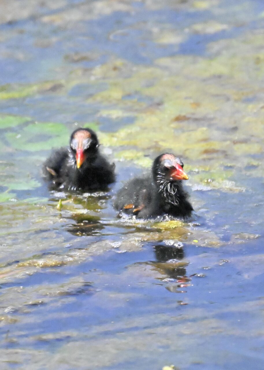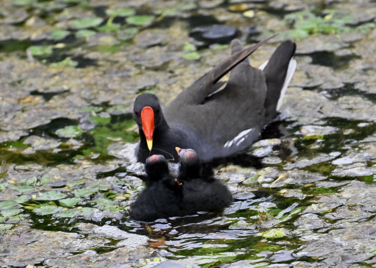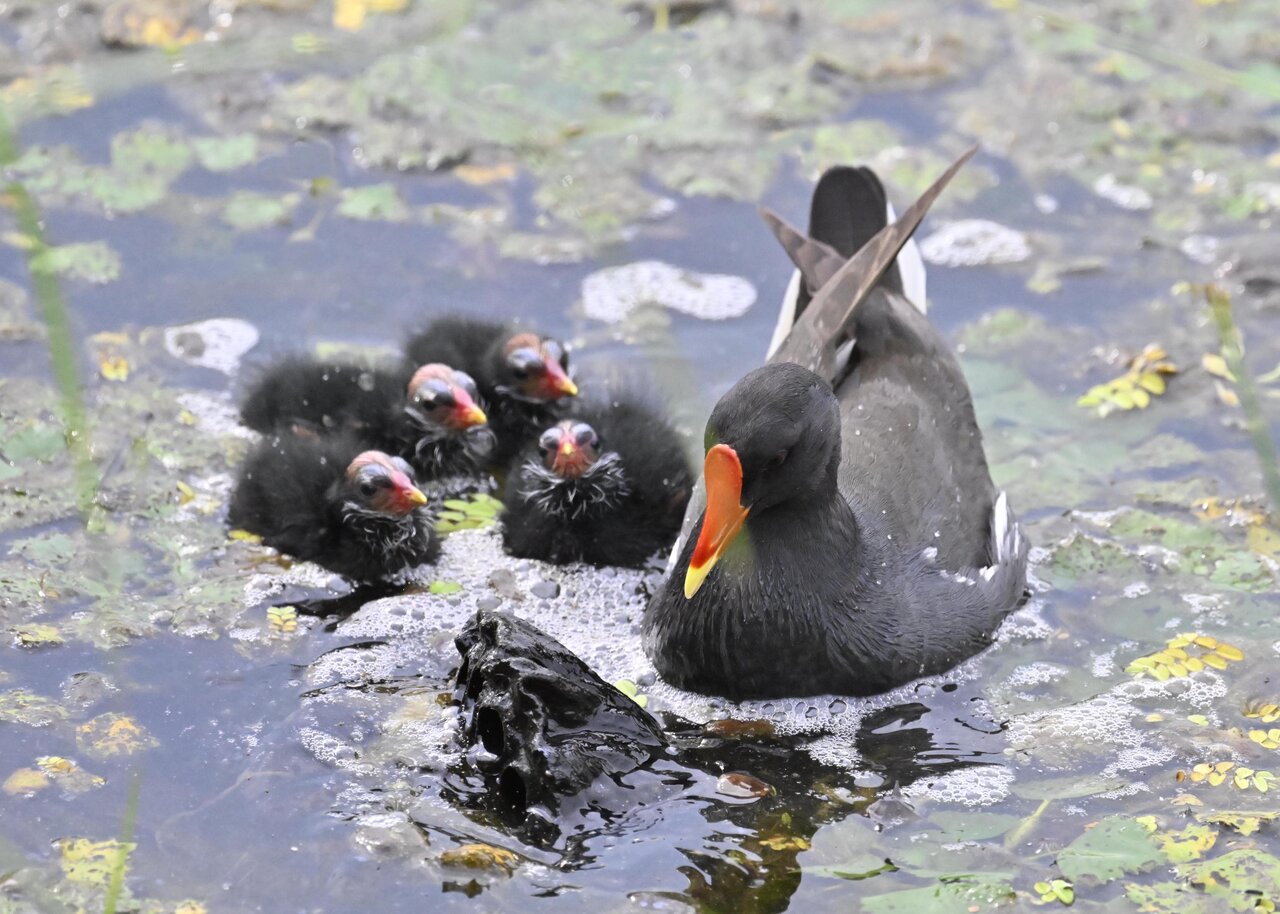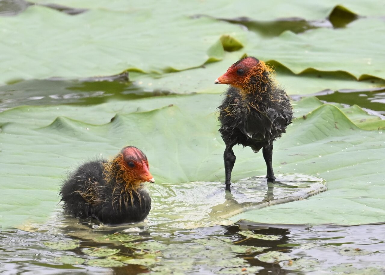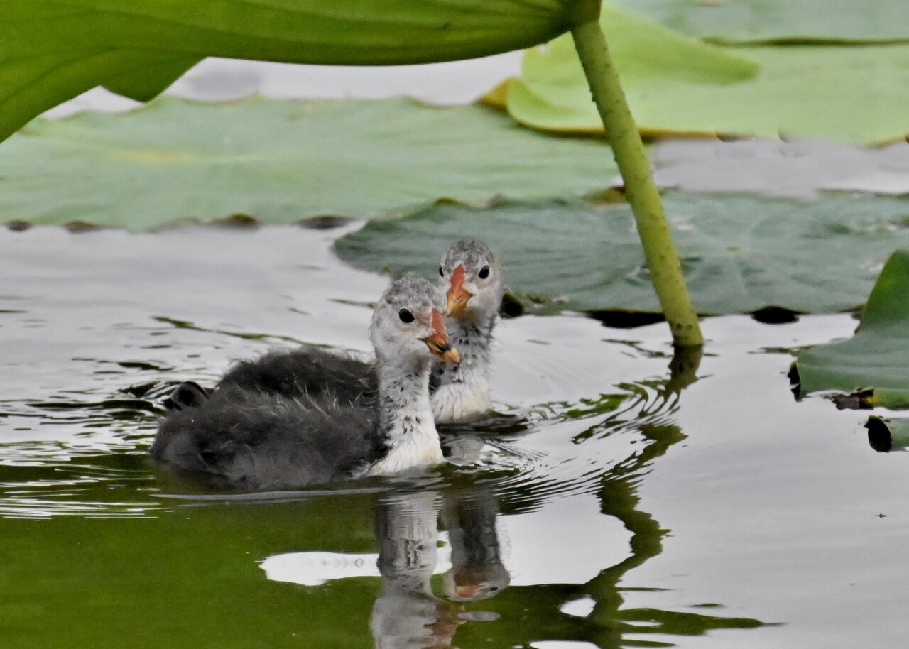 今日は昨日に続き、バンを掲載しています。巣立ちヒナはまだ自力で十分な餌が捕れないので親鳥に付き纏い餌をもらっています。