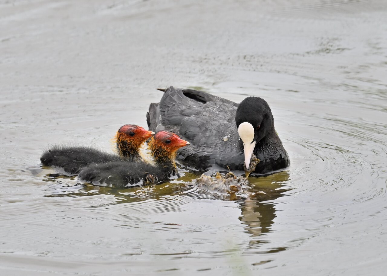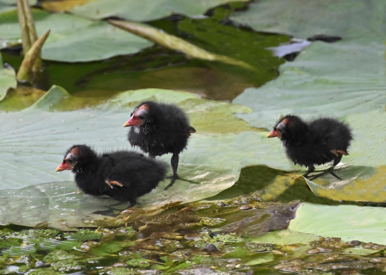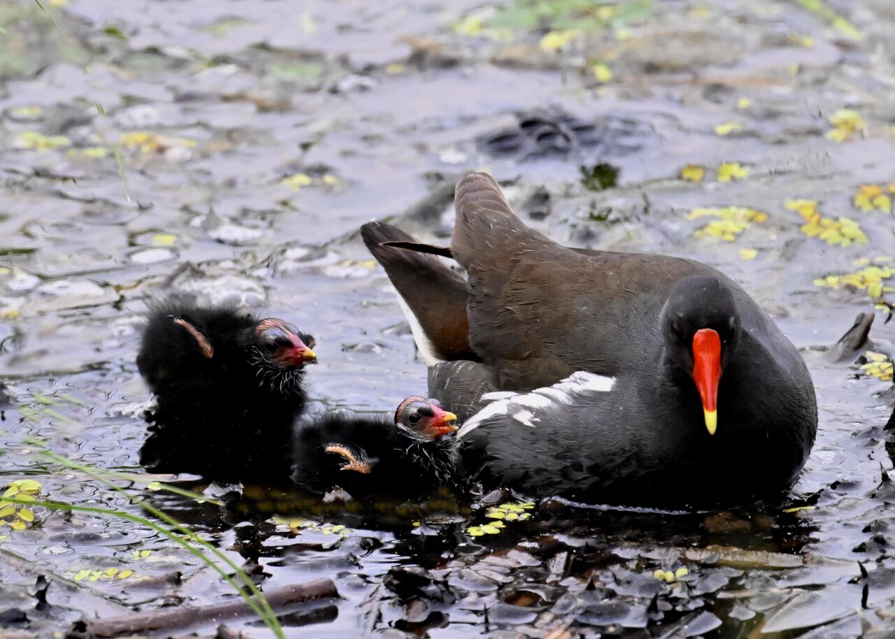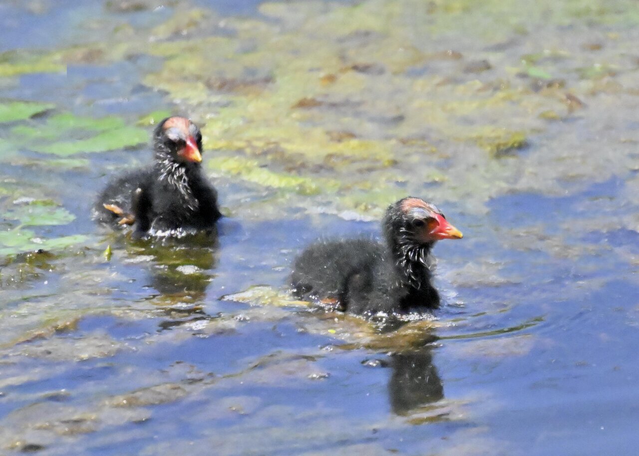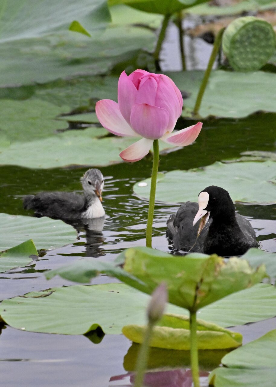 今日は昨日に続き、バンを掲載しています。巣立ちヒナはまだ自力で十分な餌が捕れないので親鳥に付き纏い餌をもらっています。