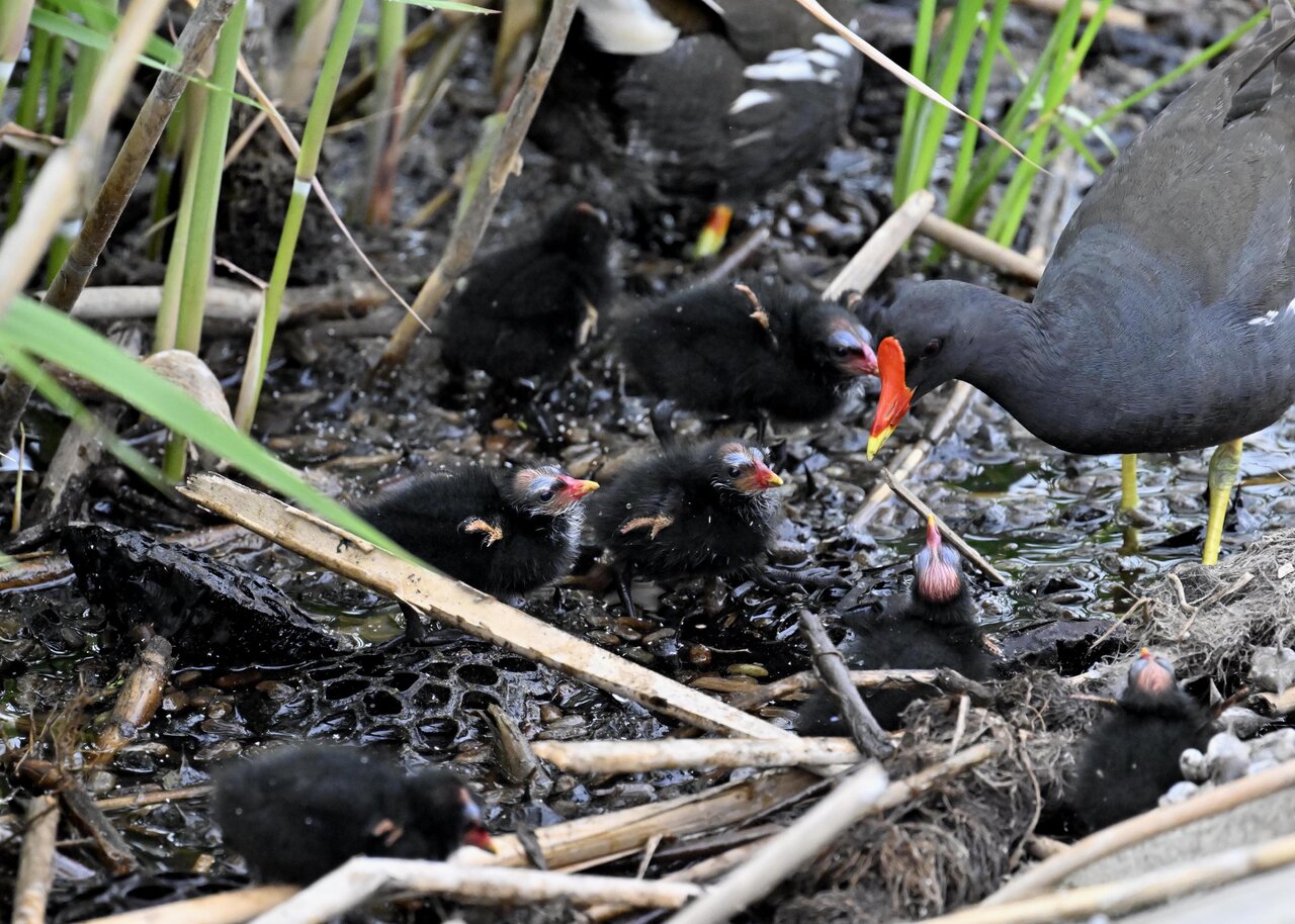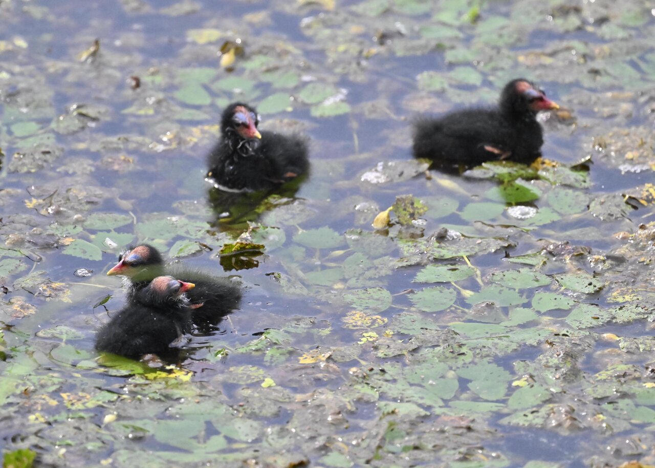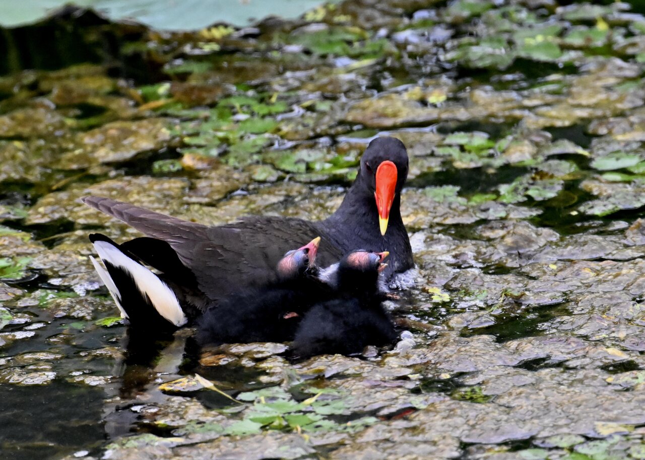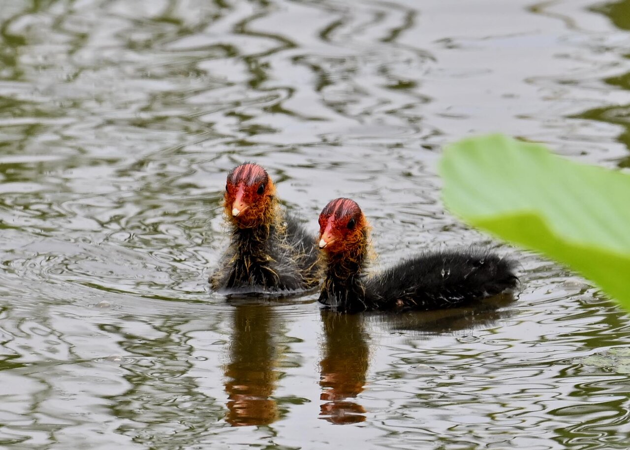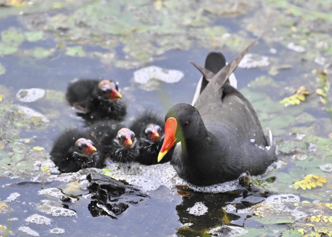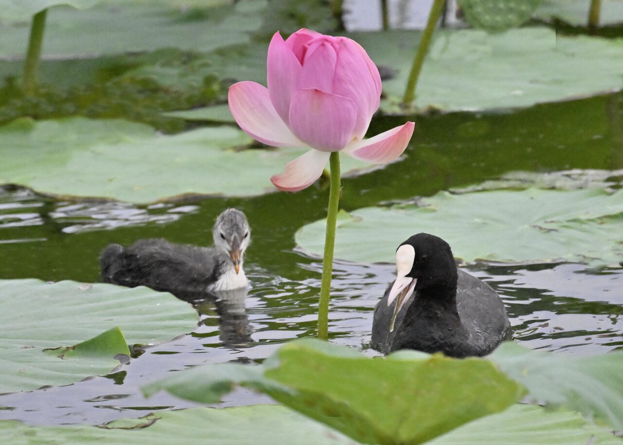 今日は昨日に続き、バンを掲載しています。巣立ちヒナはまだ自力で十分な餌が捕れないので親鳥に付き纏い餌をもらっています。
