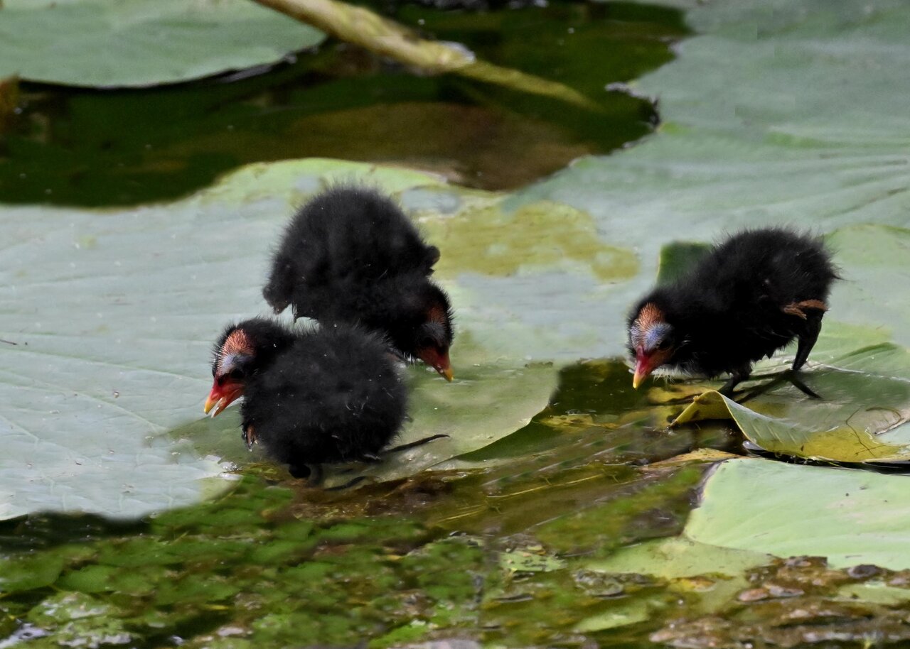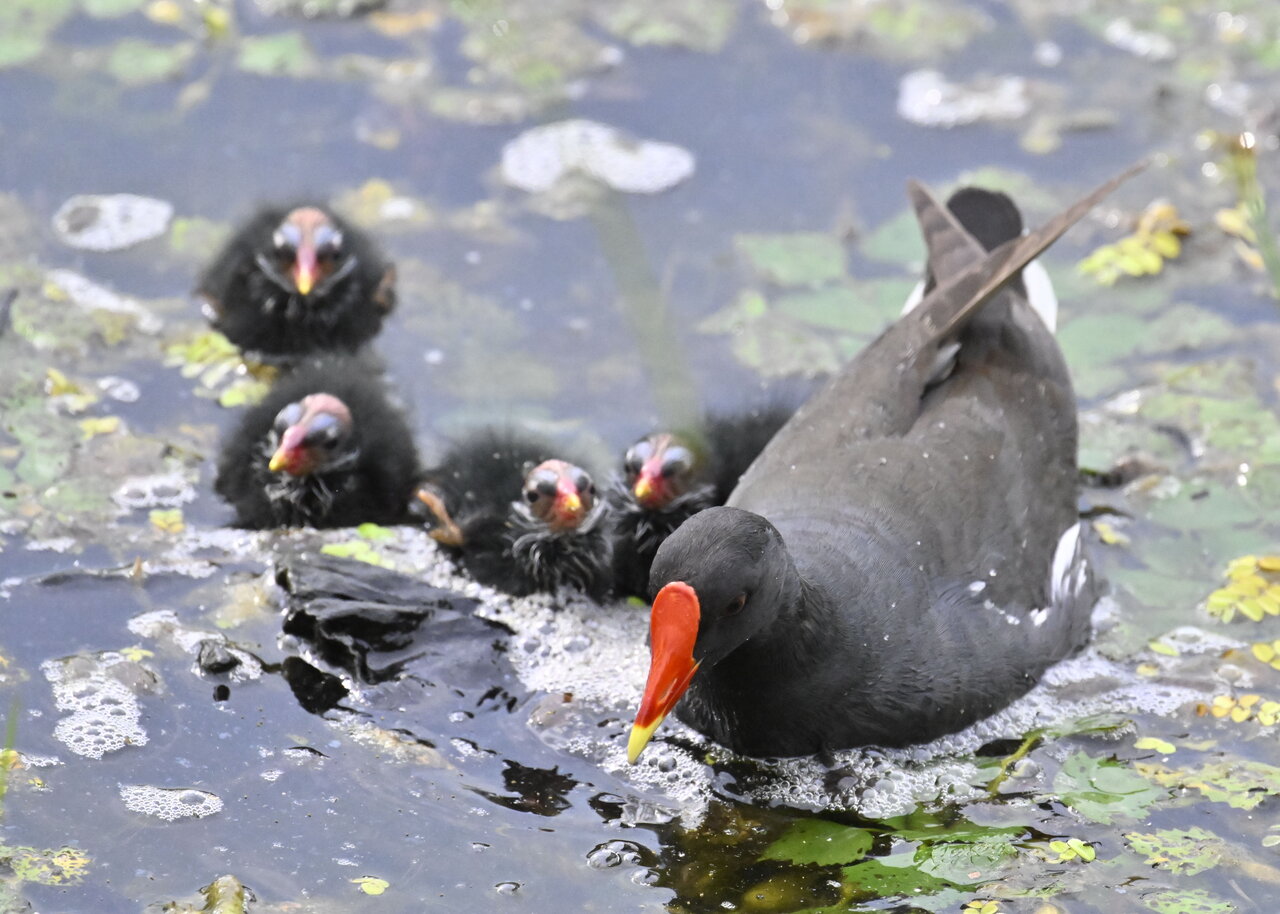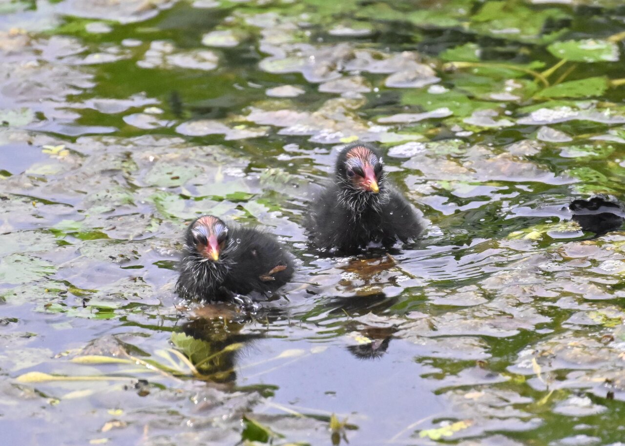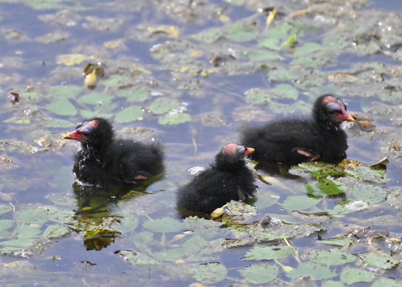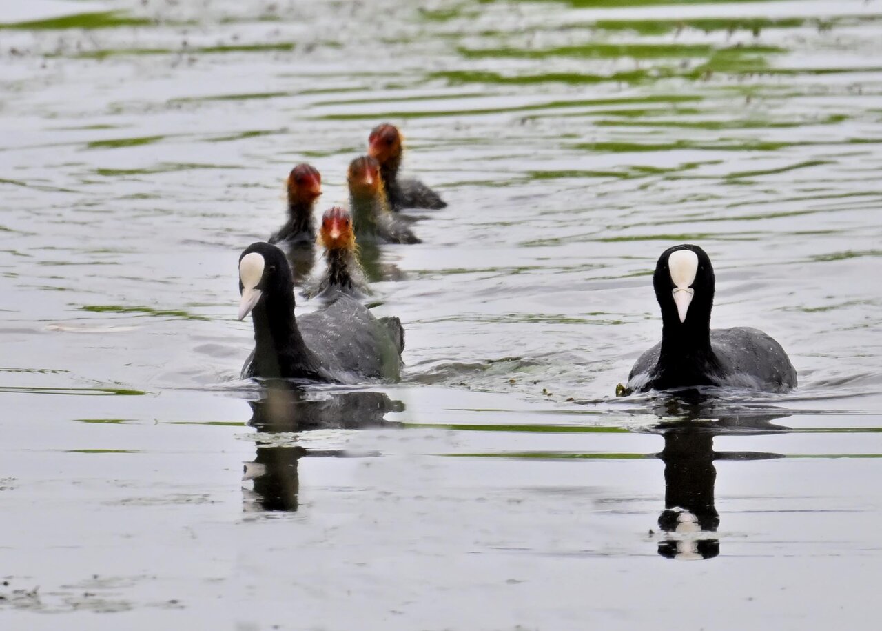 今日は昨日に続き、バンを掲載しています。巣立ちヒナはまだ自力で十分な餌が捕れないので親鳥に付き纏い餌をもらっています。