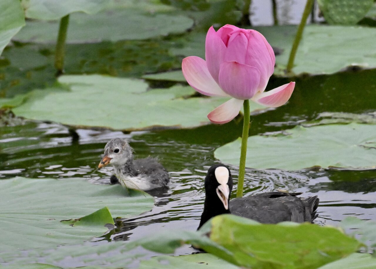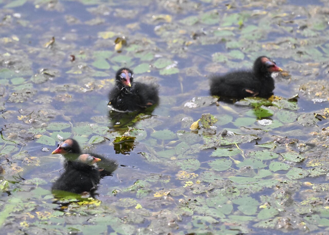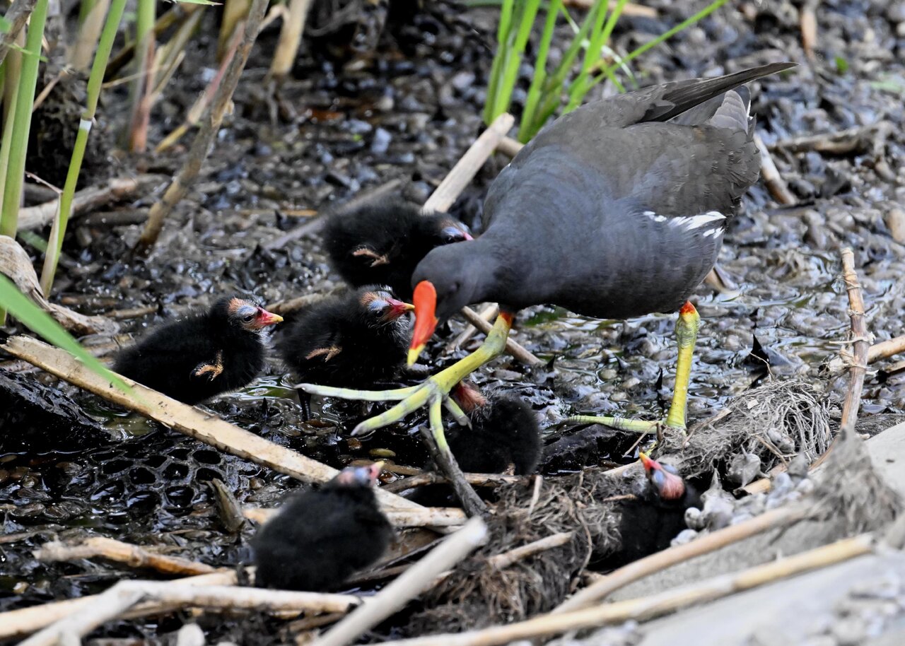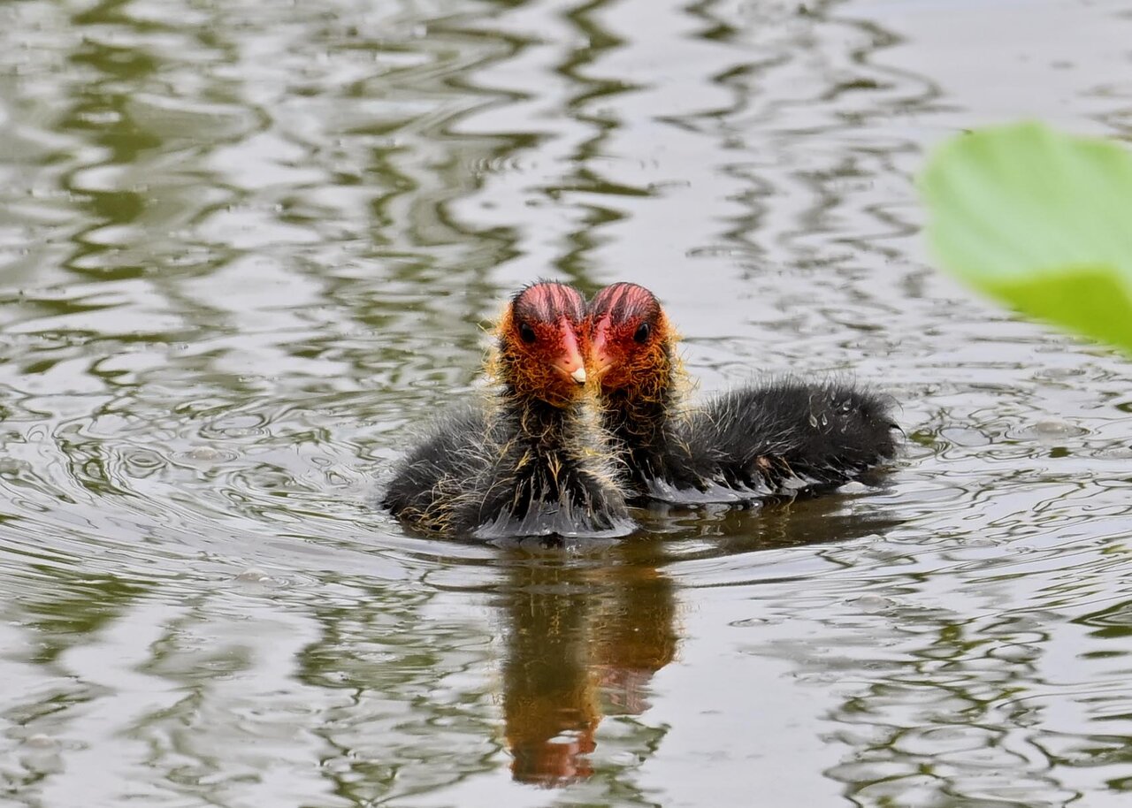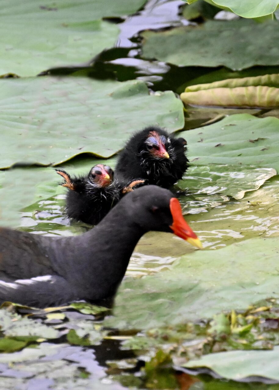今日は昨日に続き、バンを掲載しています。巣立ちヒナはまだ自力で十分な餌が捕れないので親鳥に付き纏い餌をもらっています。