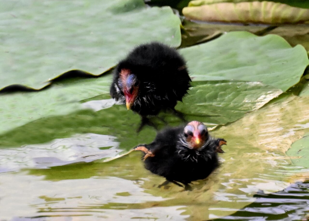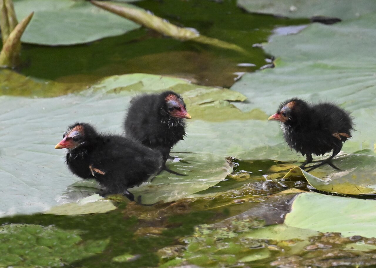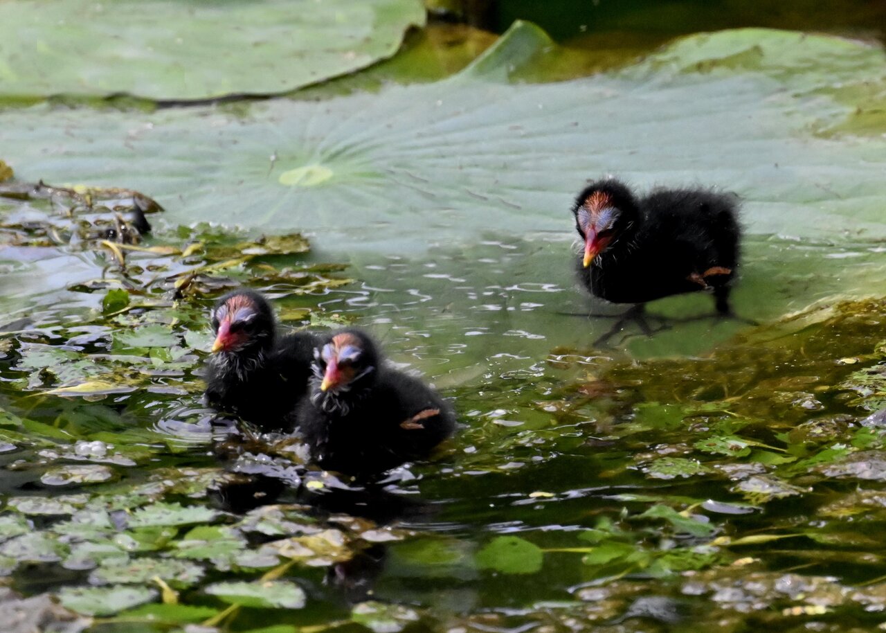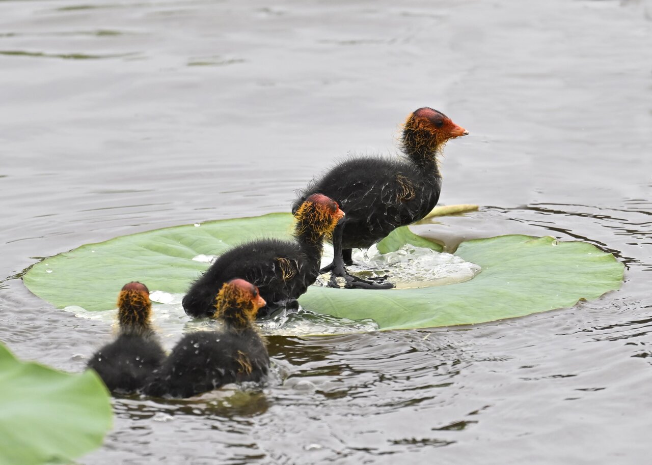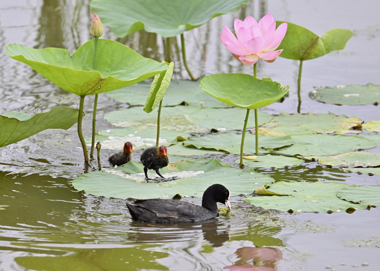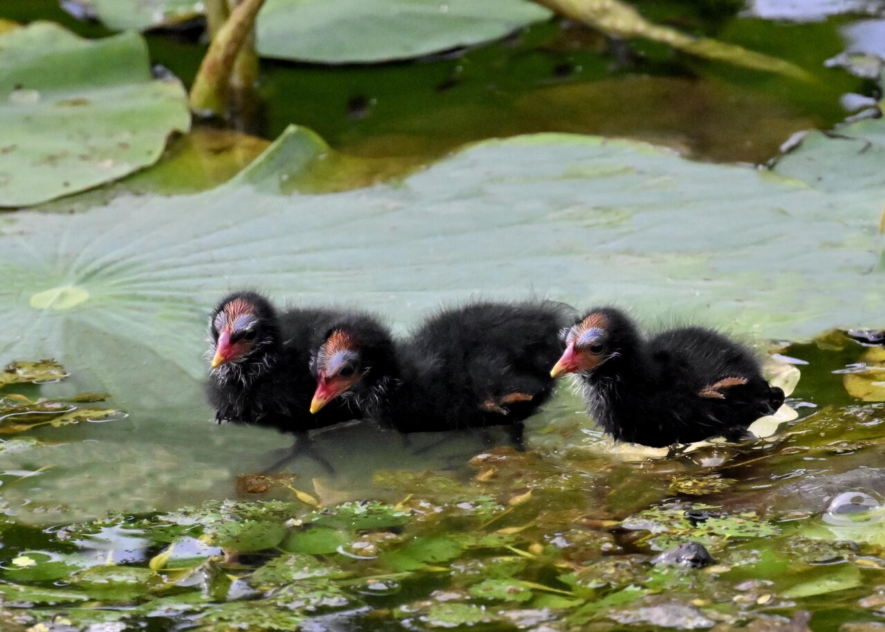 今日は昨日に続き、バンを掲載しています。巣立ちヒナはまだ自力で十分な餌が捕れないので親鳥に付き纏い餌をもらっています。