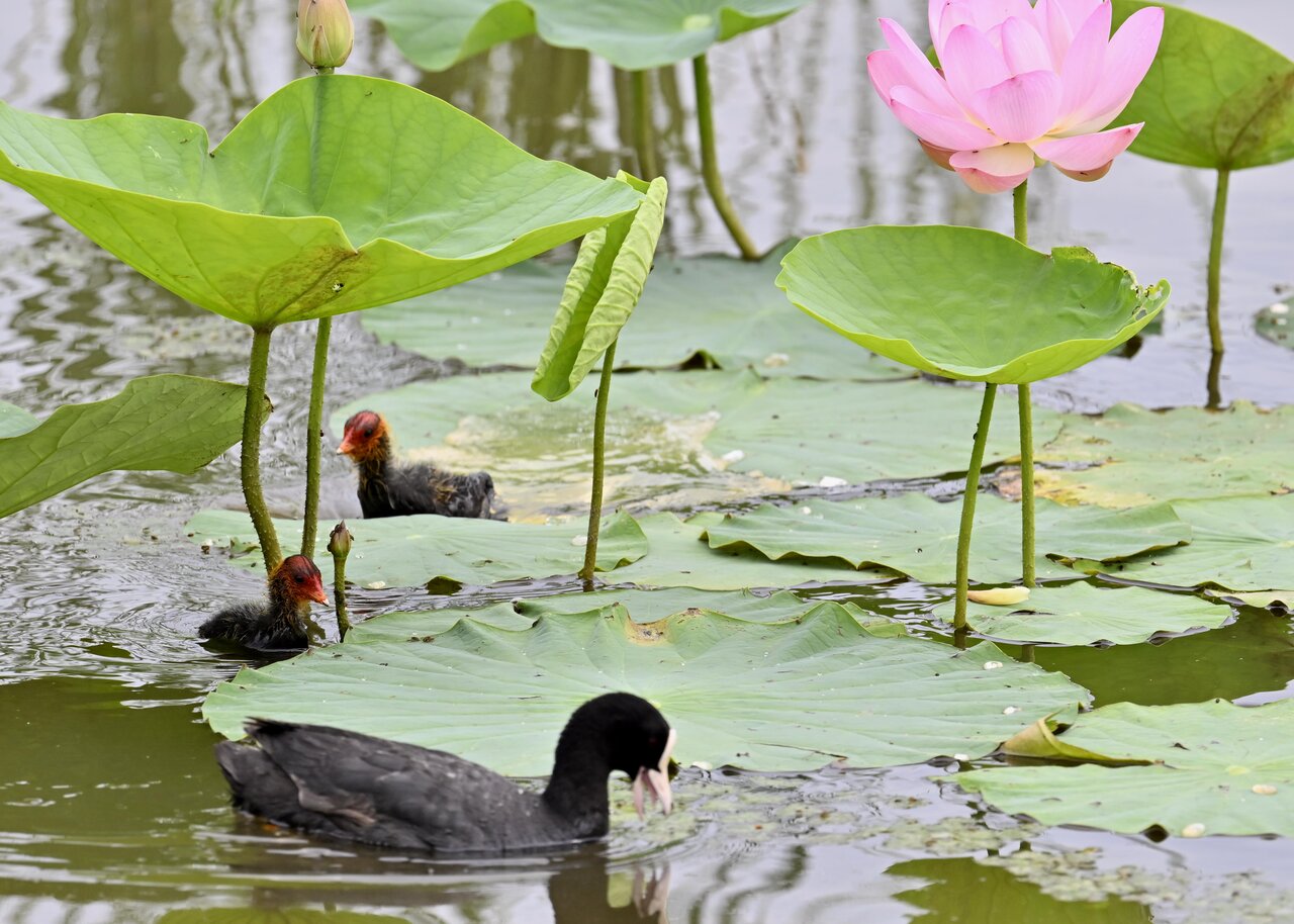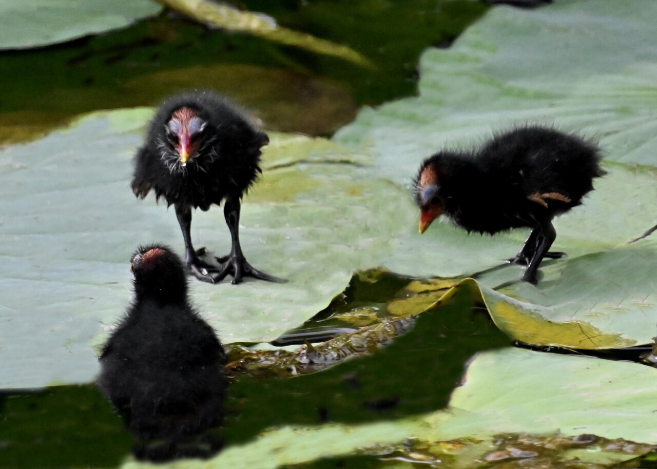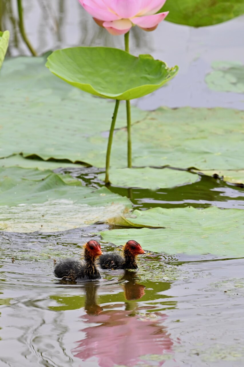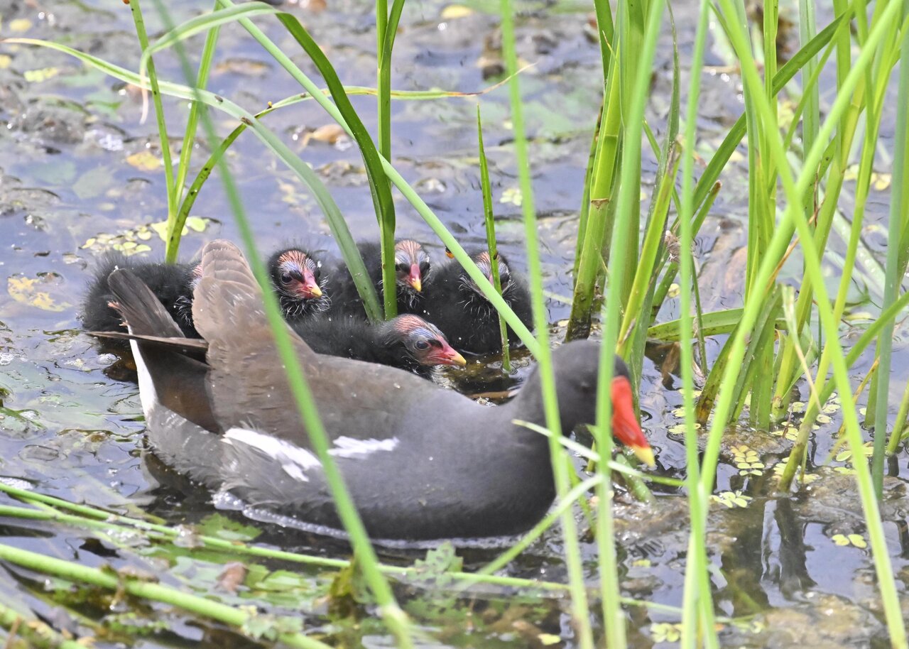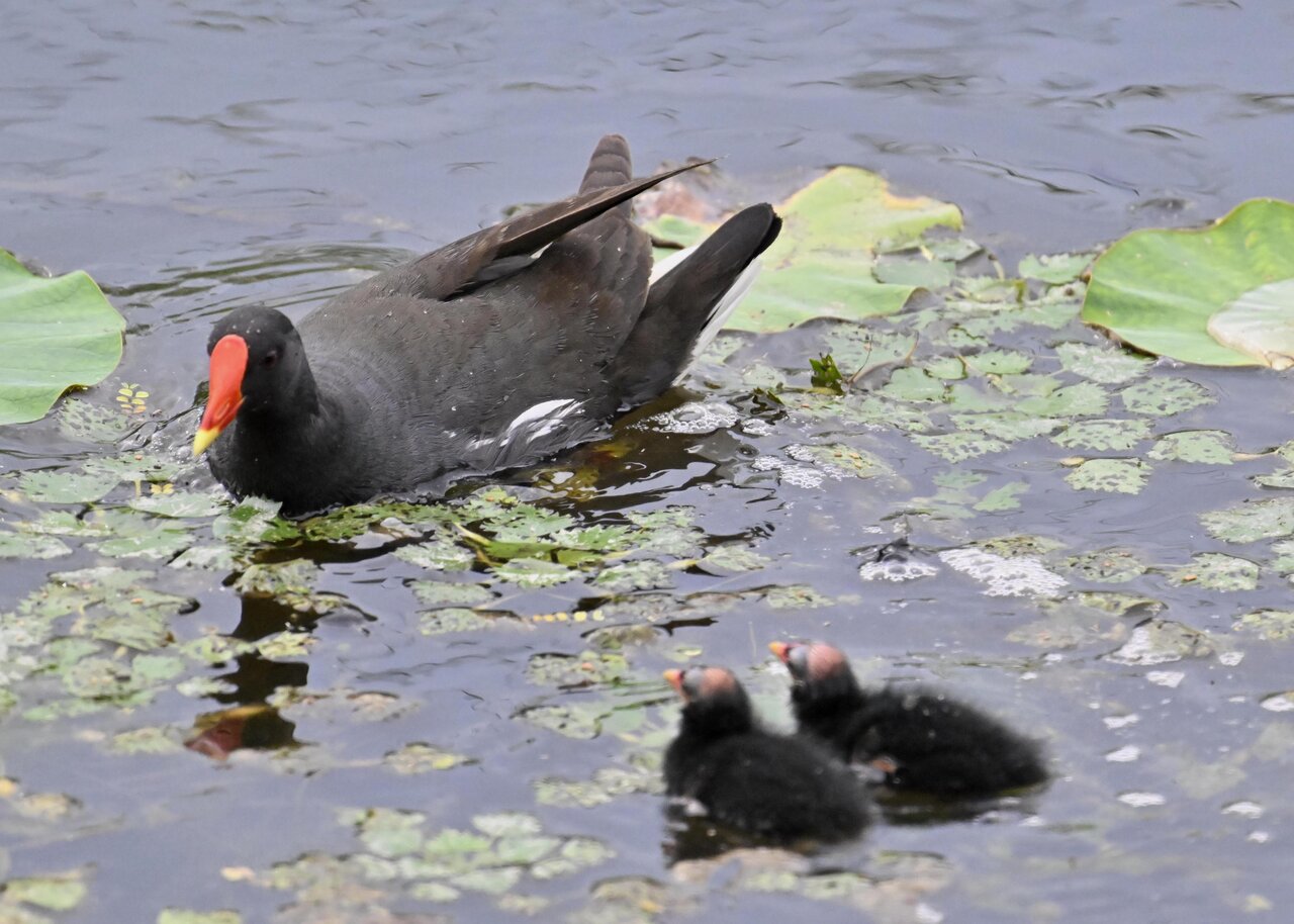今日は昨日に続き、バンを掲載しています。巣立ちヒナはまだ自力で十分な餌が捕れないので親鳥に付き纏い餌をもらっています。