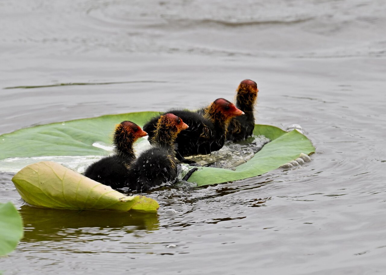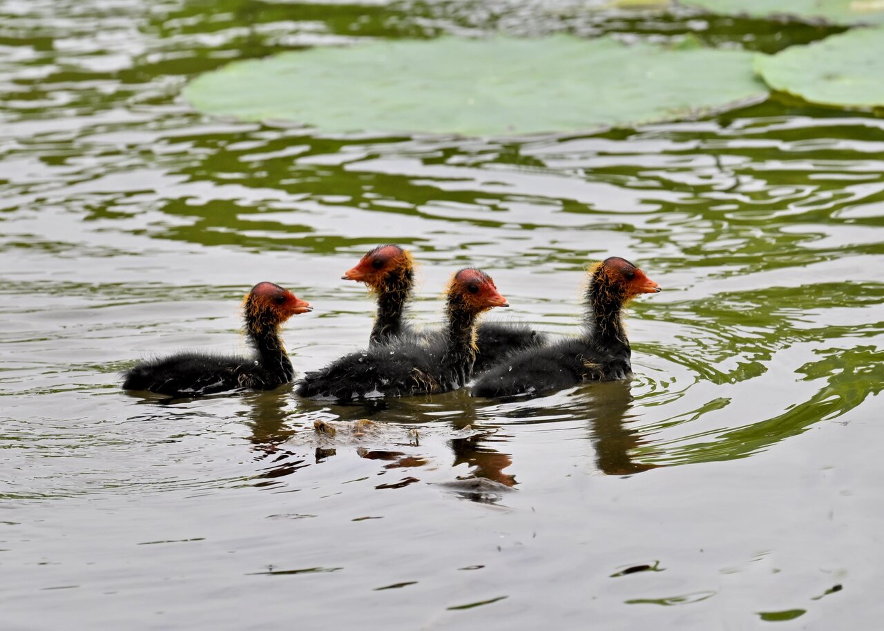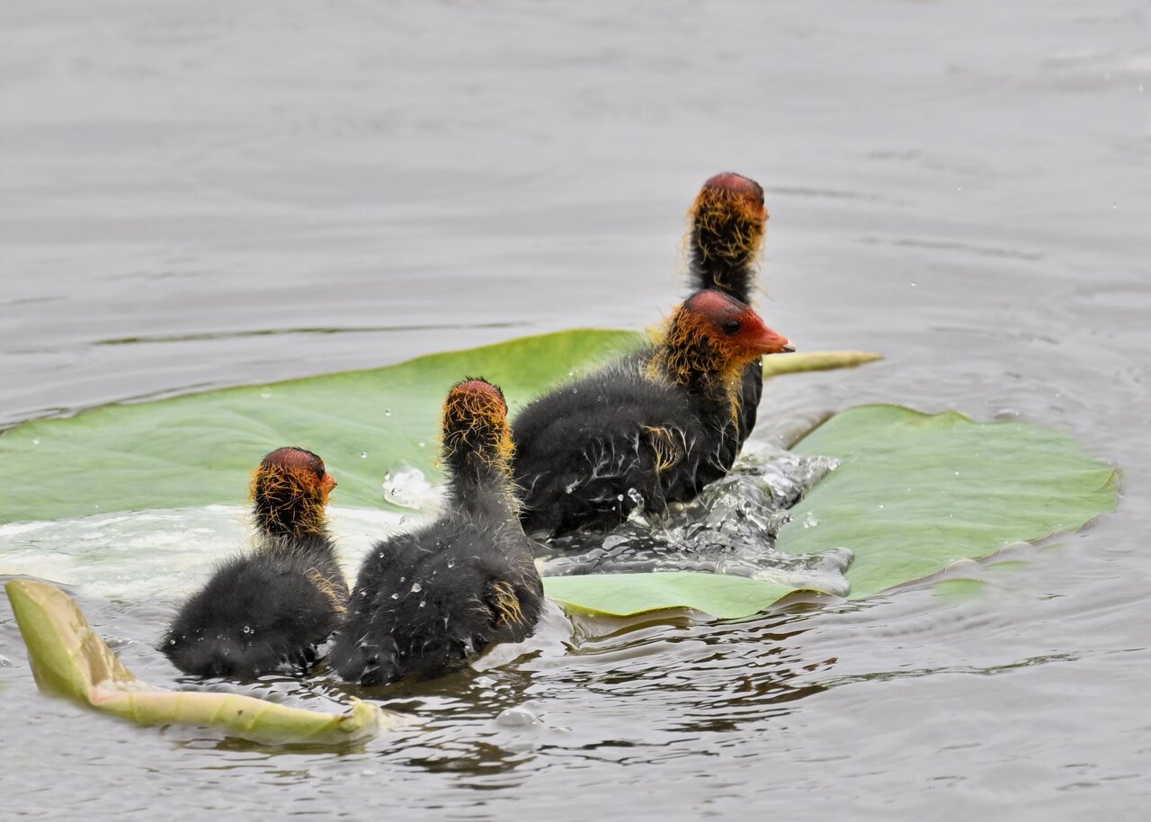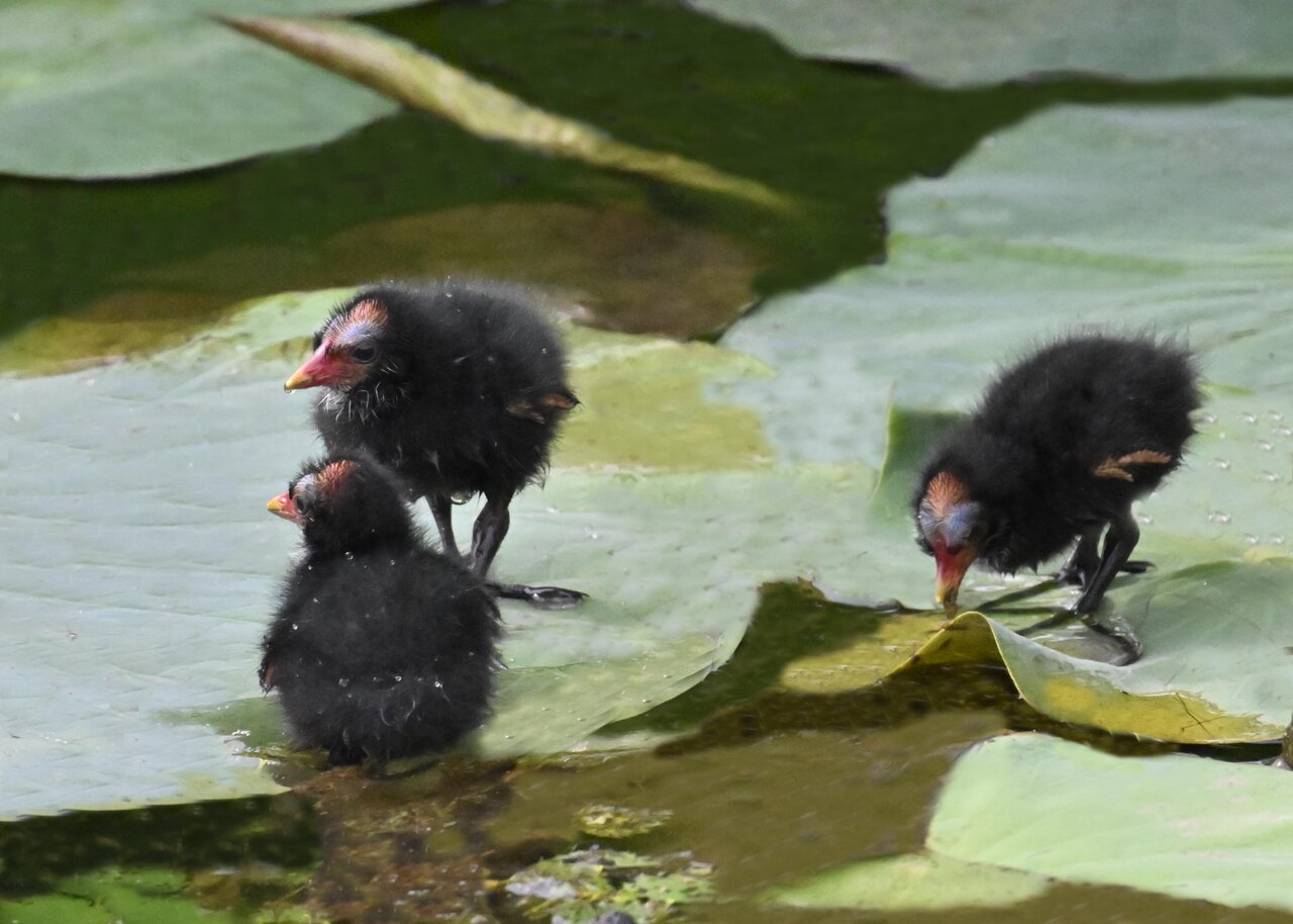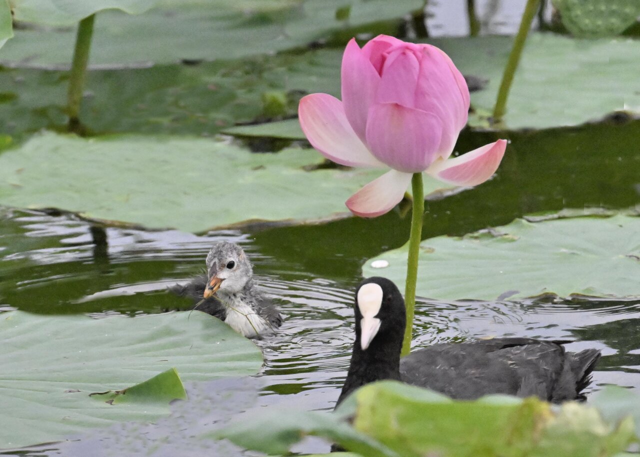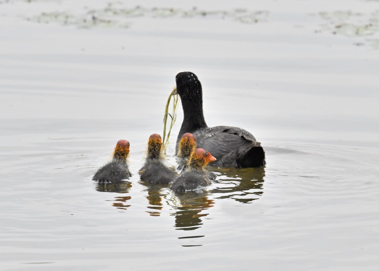 今日は昨日に続き、バンを掲載しています。巣立ちヒナはまだ自力で十分な餌が捕れないので親鳥に付き纏い餌をもらっています。