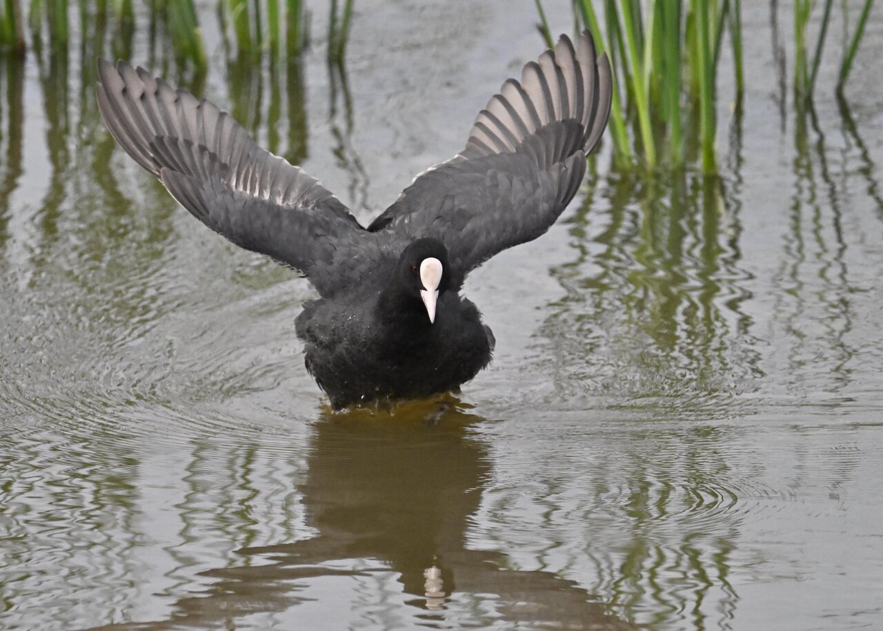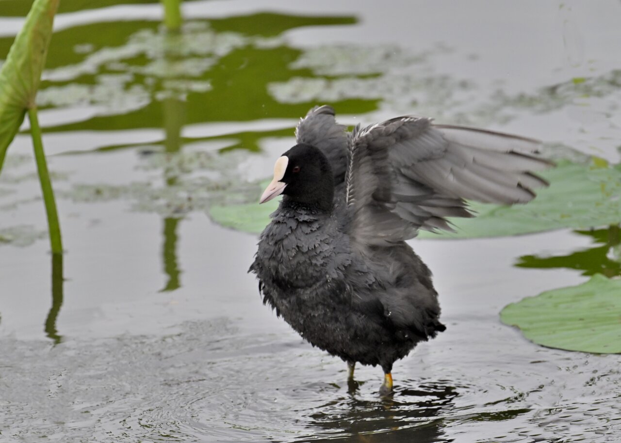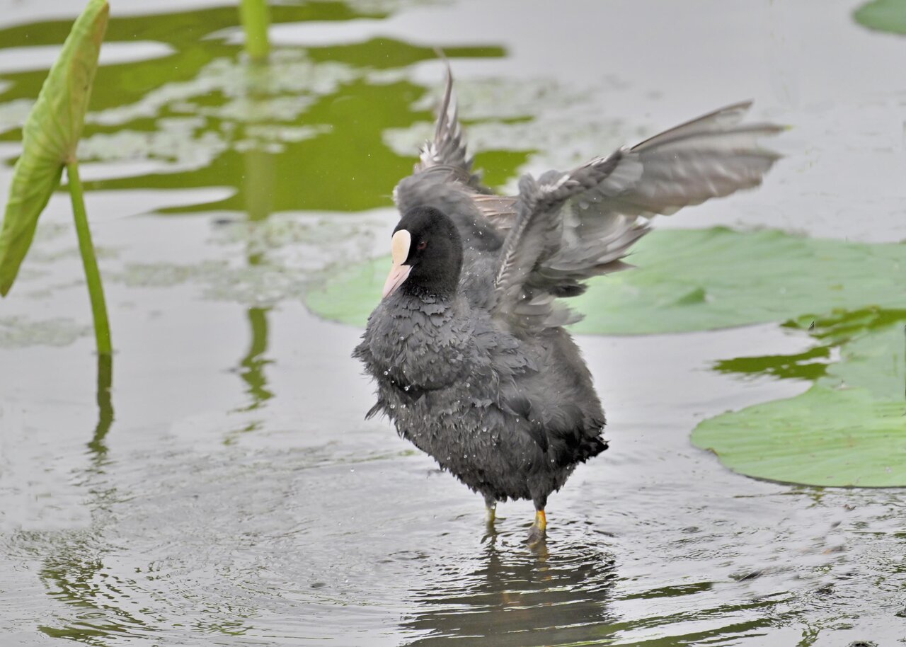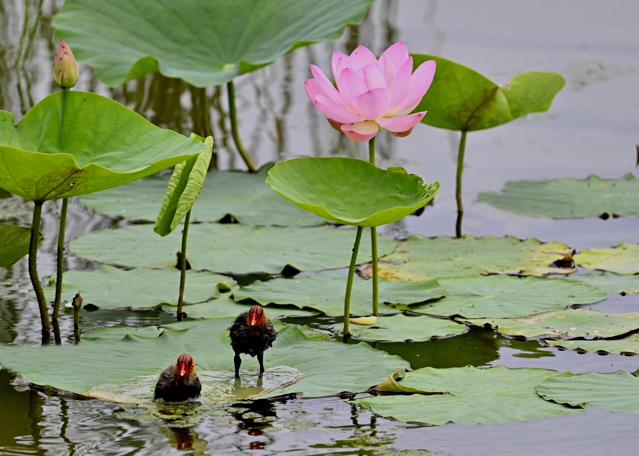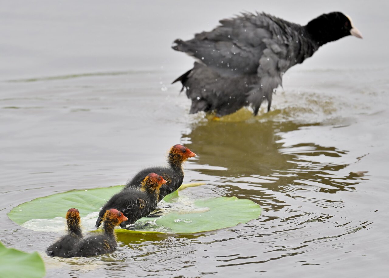 今日は昨日に続き、バンを掲載しています。巣立ちヒナはまだ自力で十分な餌が捕れないので親鳥に付き纏い餌をもらっています。