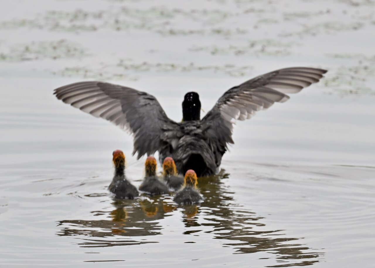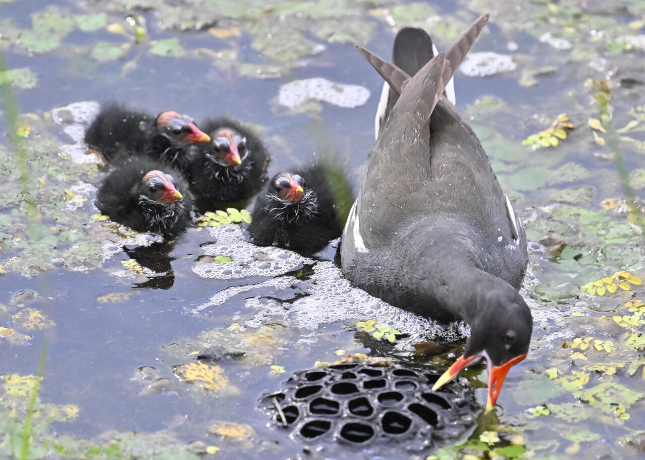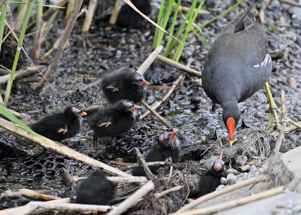このペアーは多産で1画面に入りませんでしたが、9羽のヒナが見られました。