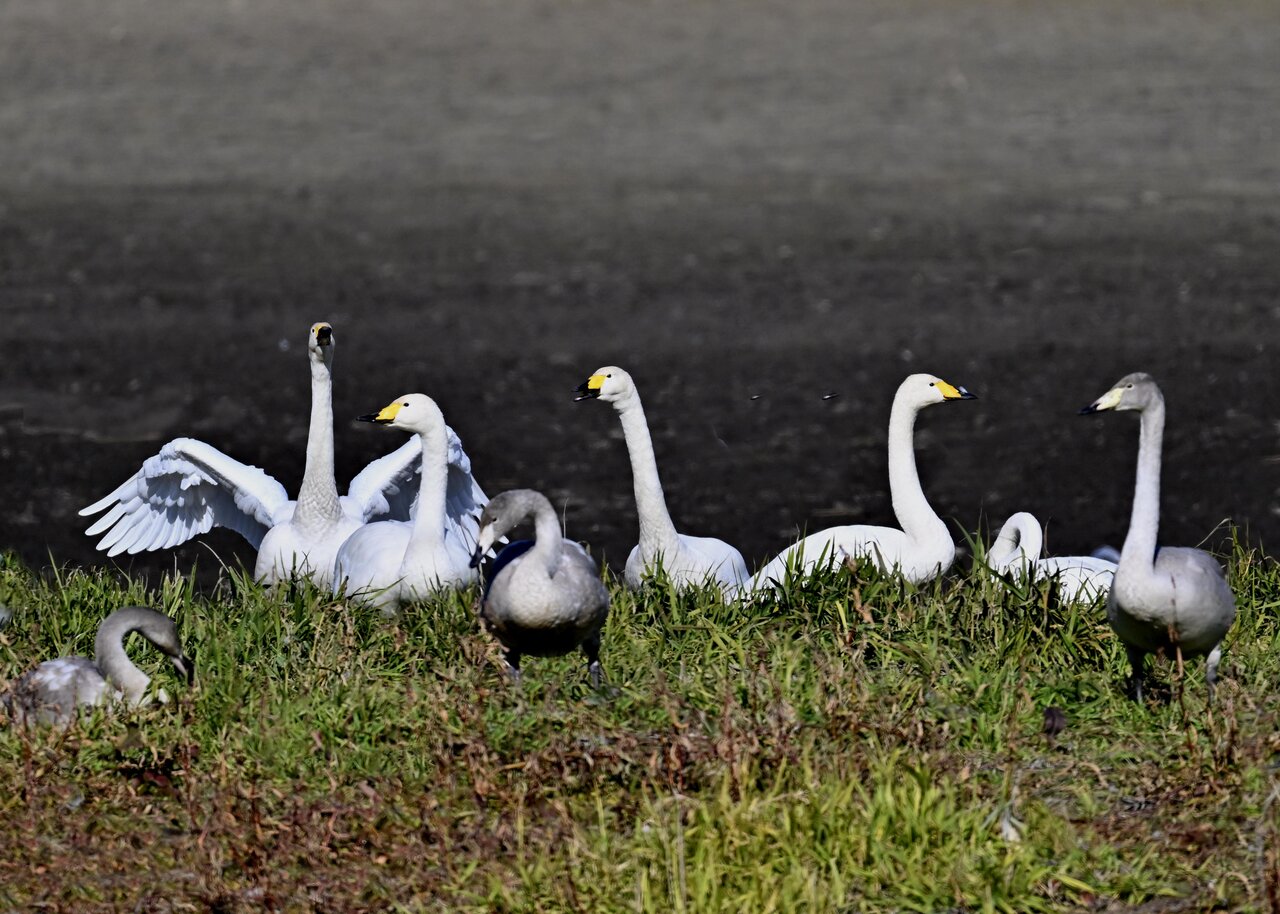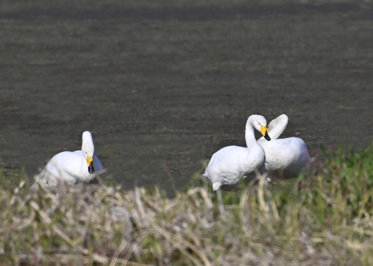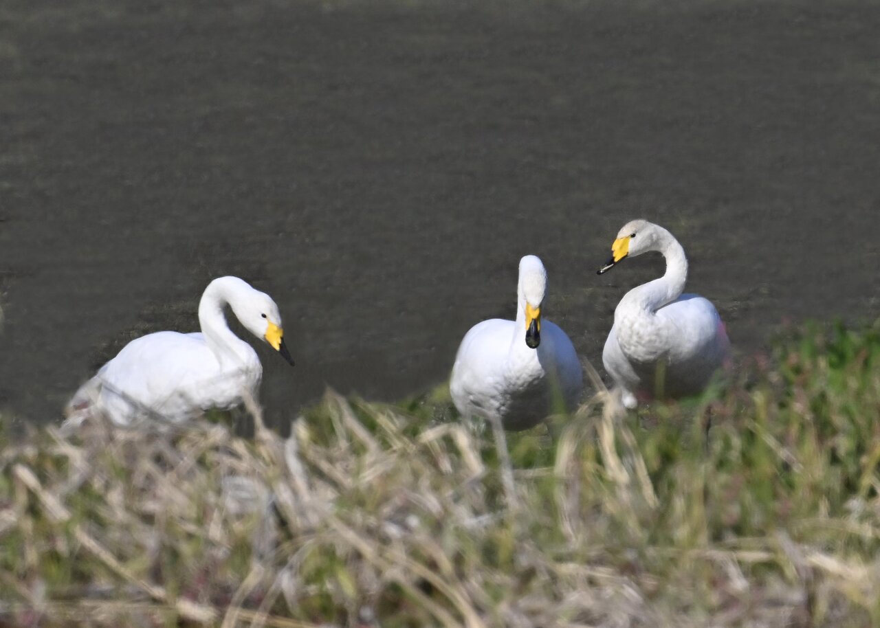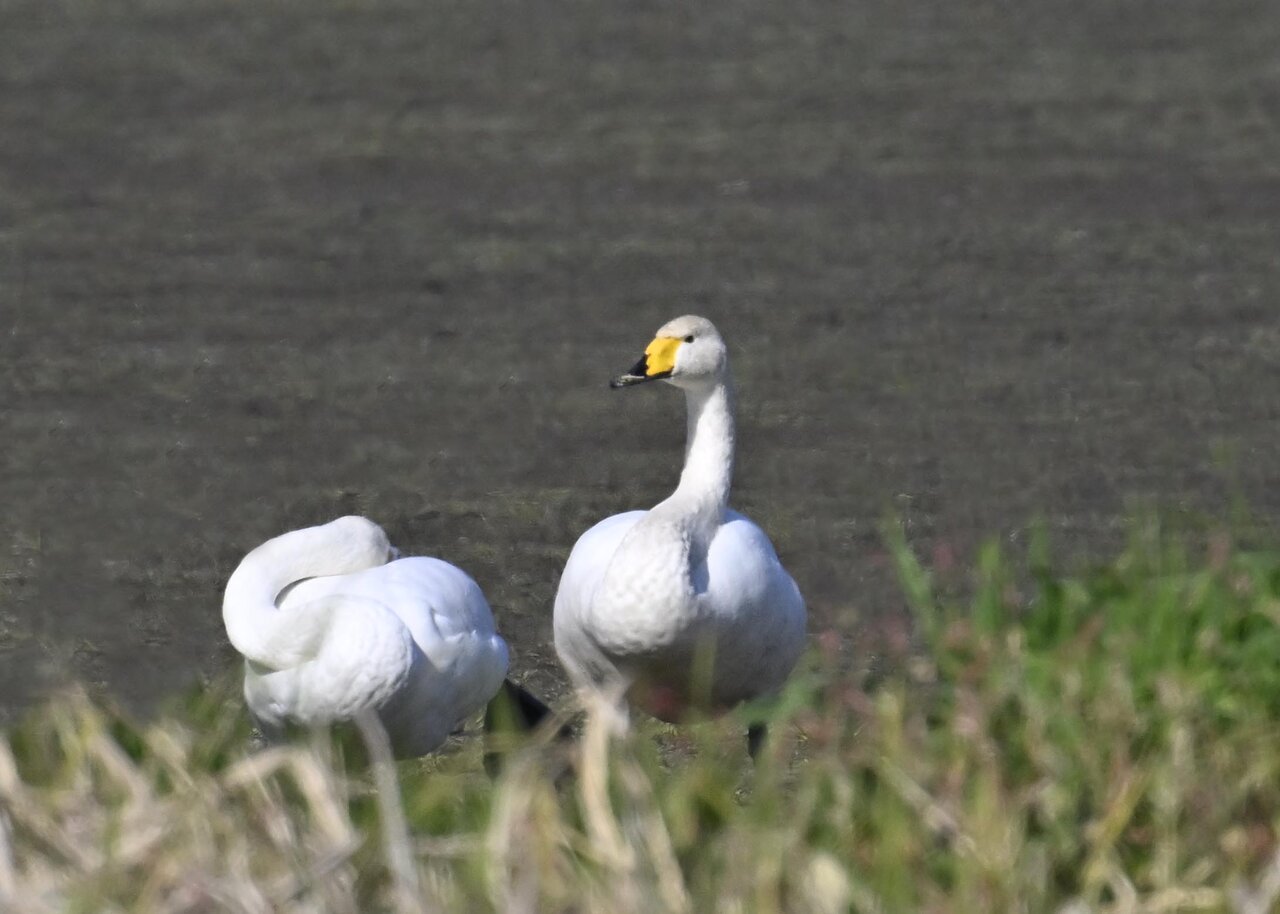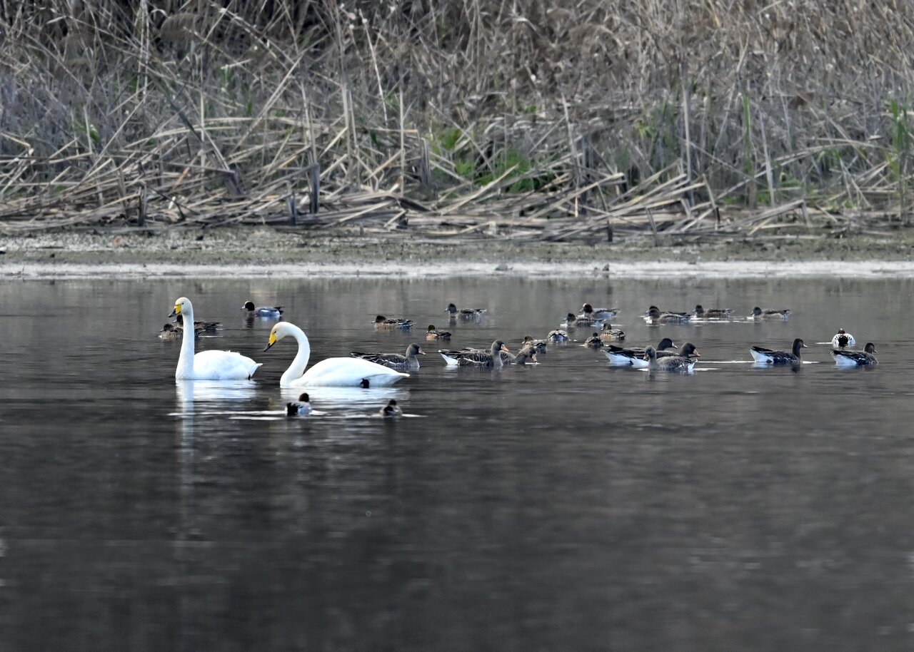 毎年やって来るアメリカコハクチョウのペアーもまだ飛来して無く、オオハクチョウとコハクチョウのみが見られました。