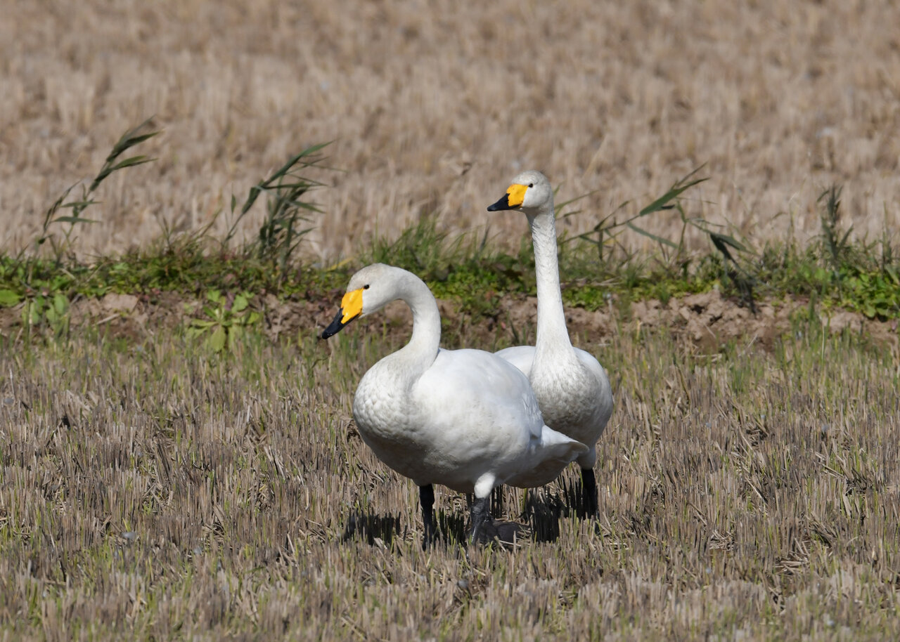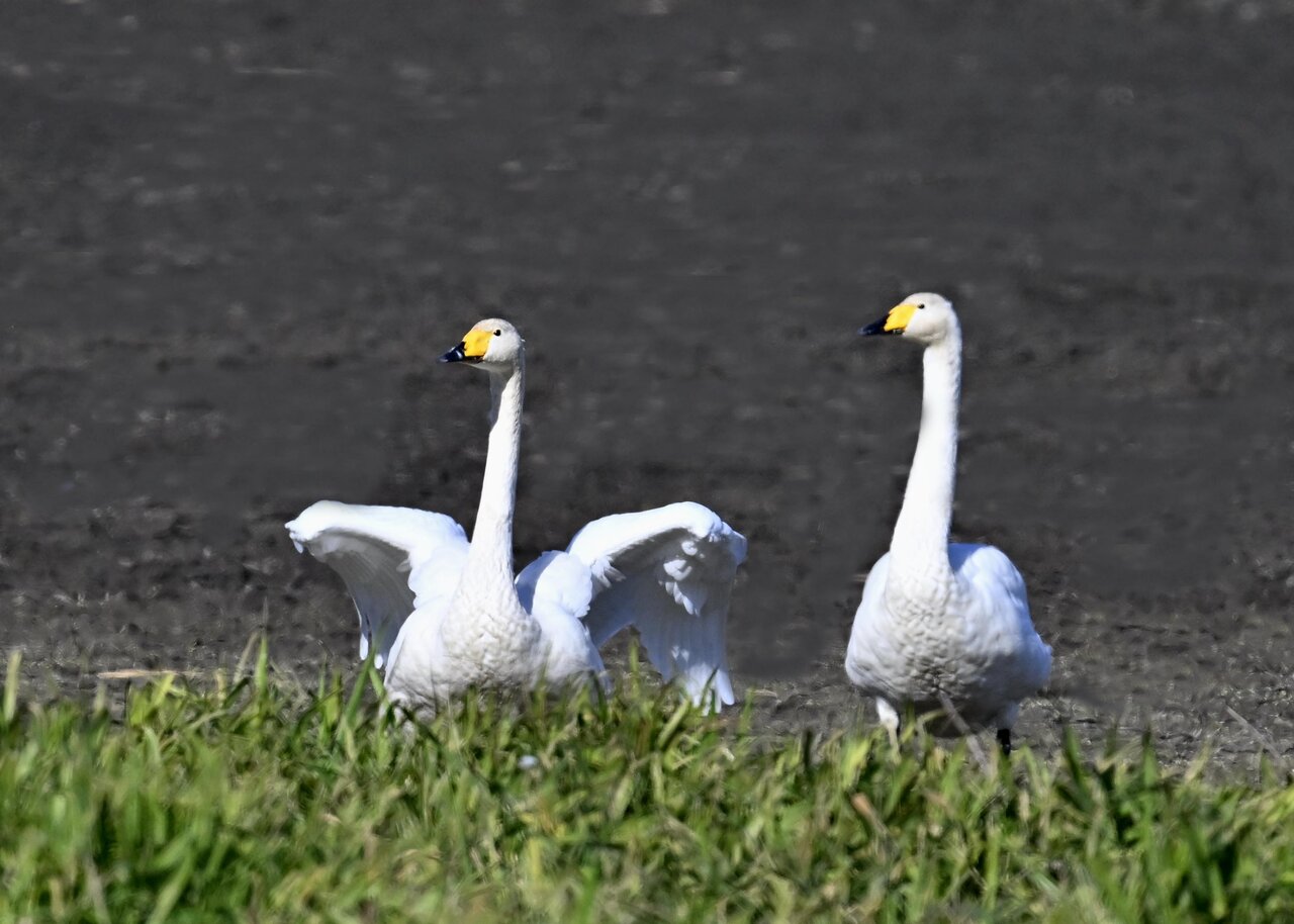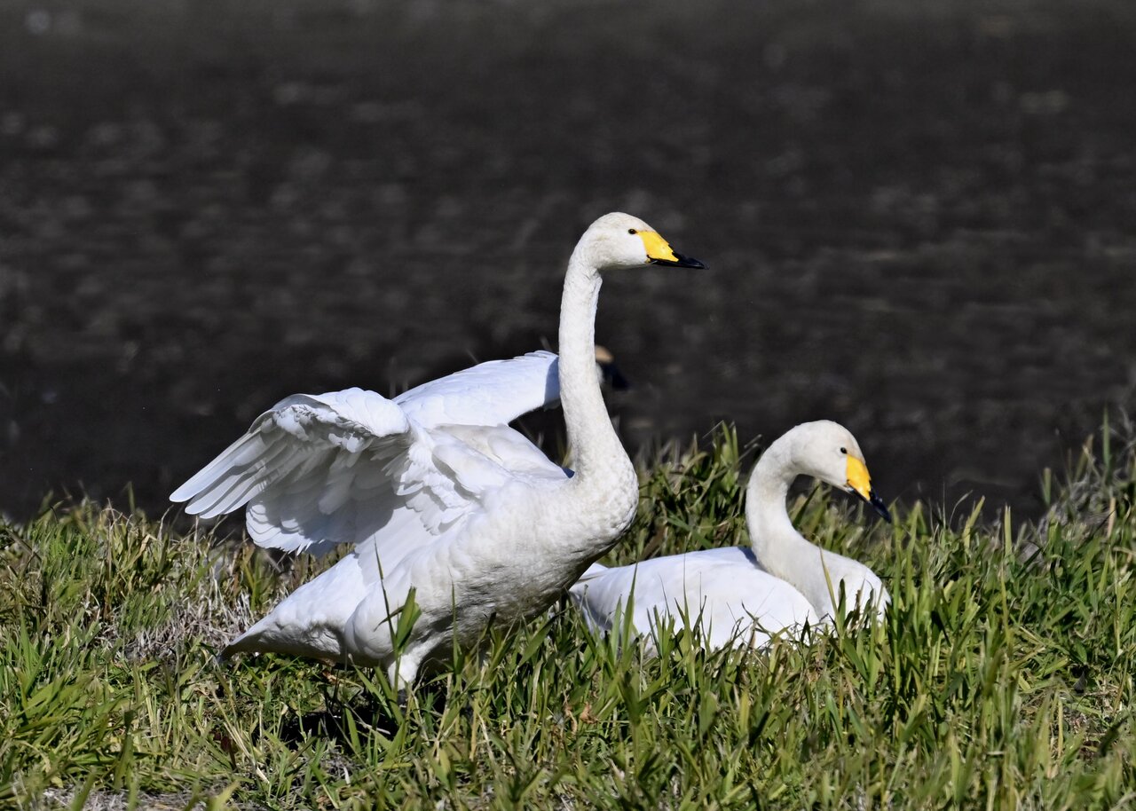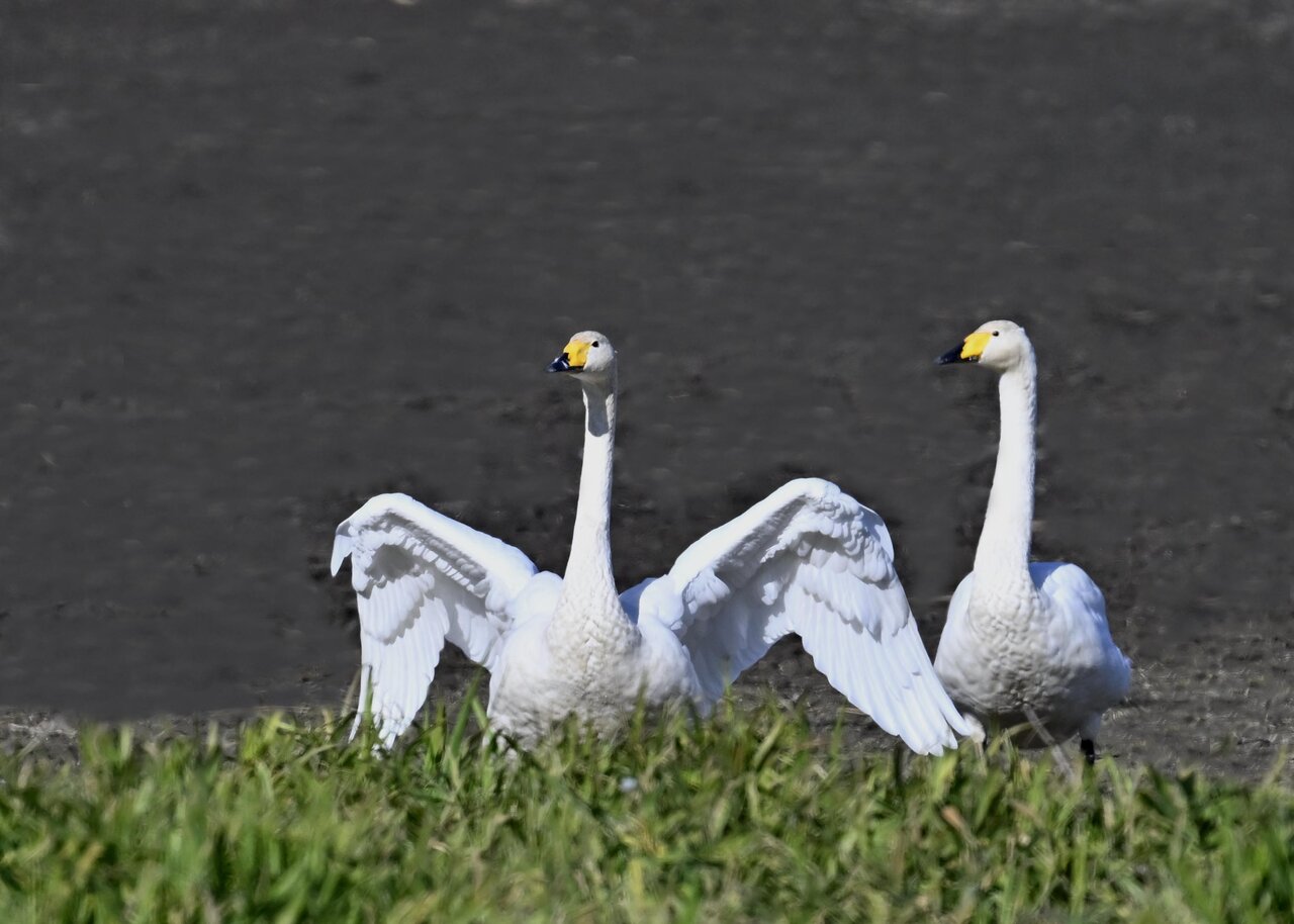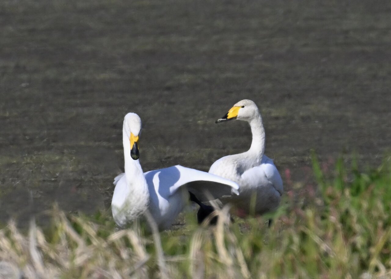 毎年やって来るアメリカコハクチョウのペアーもまだ飛来して無く、オオハクチョウとコハクチョウのみが見られました。