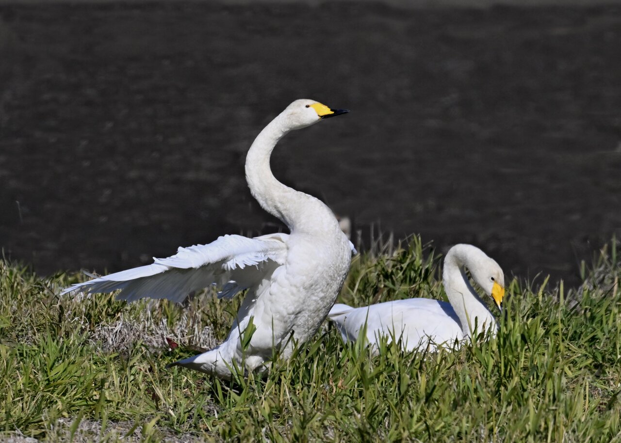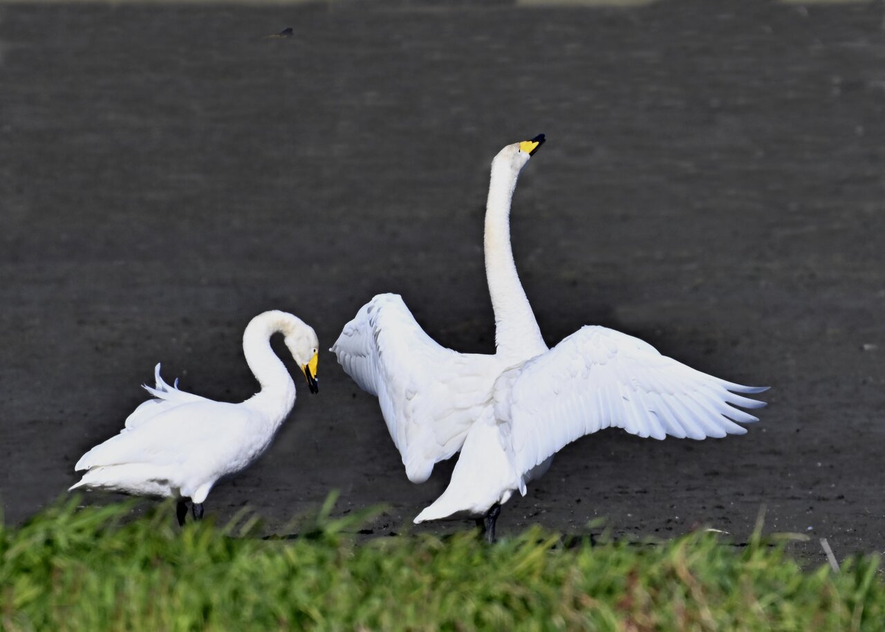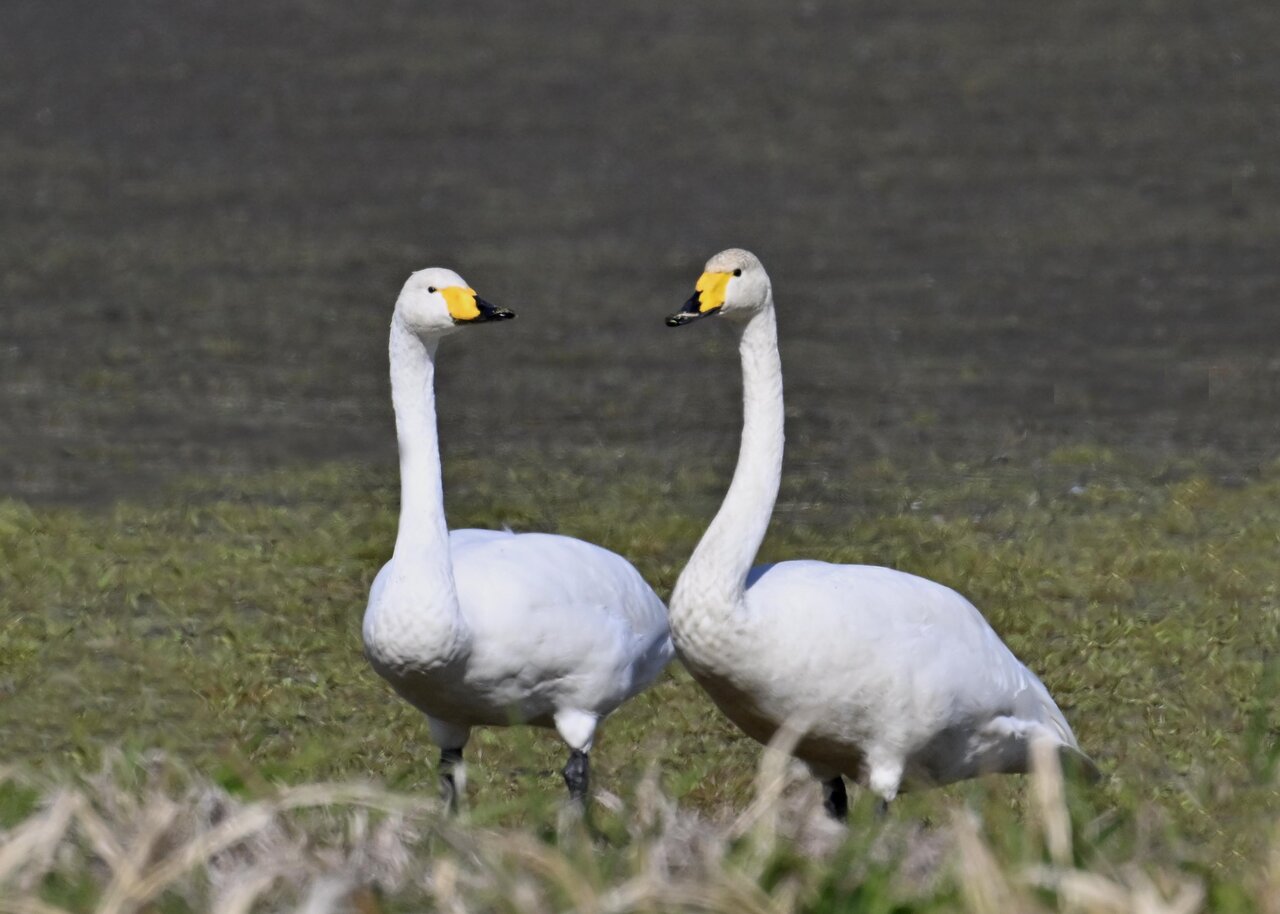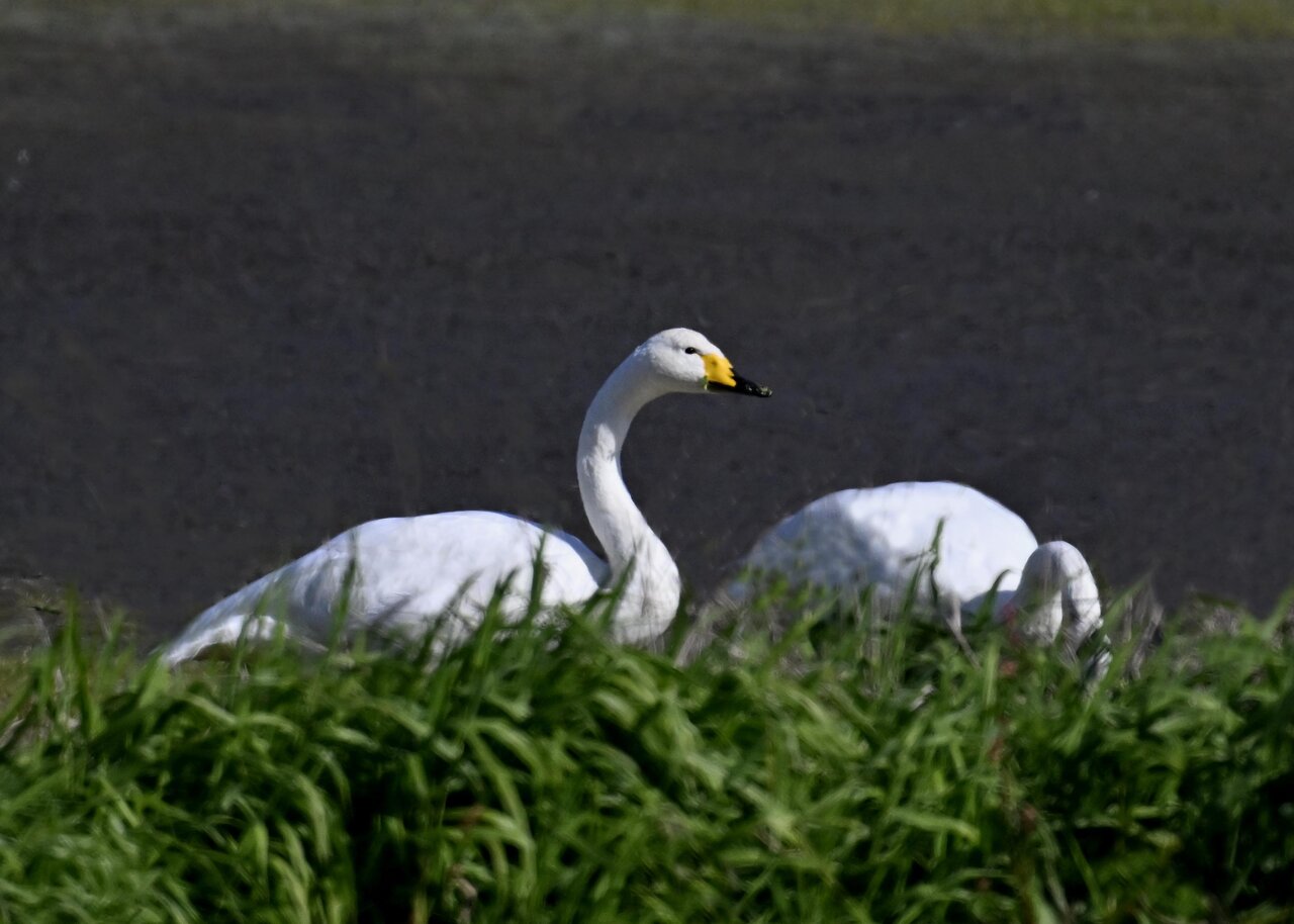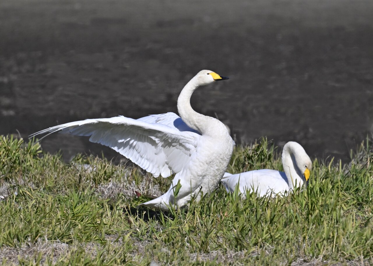 毎年やって来るアメリカコハクチョウのペアーもまだ飛来して無く、オオハクチョウとコハクチョウのみが見られました。