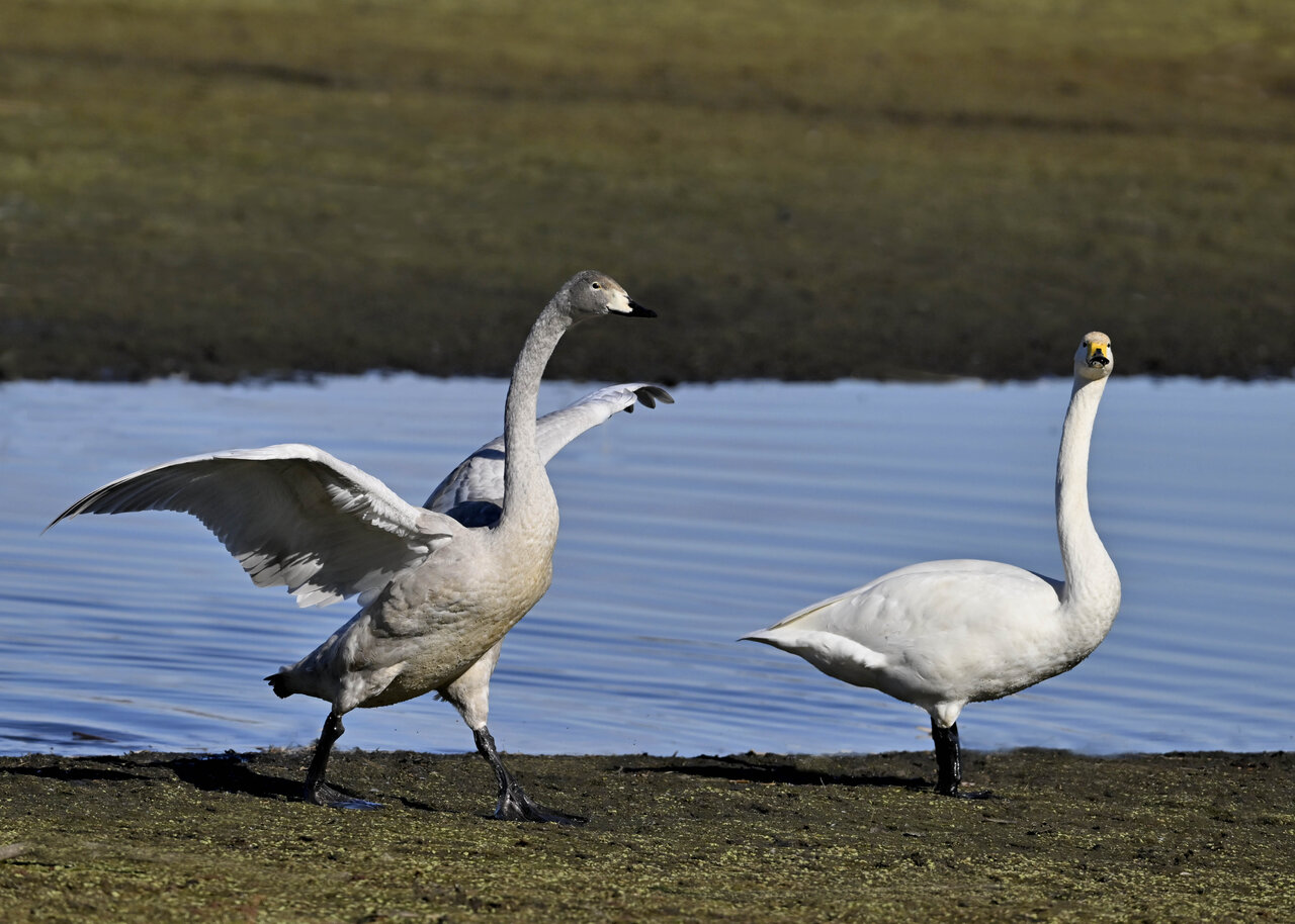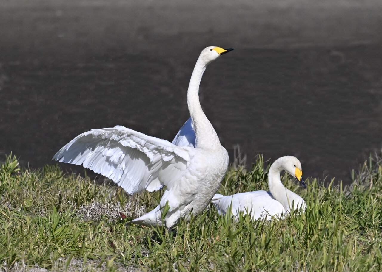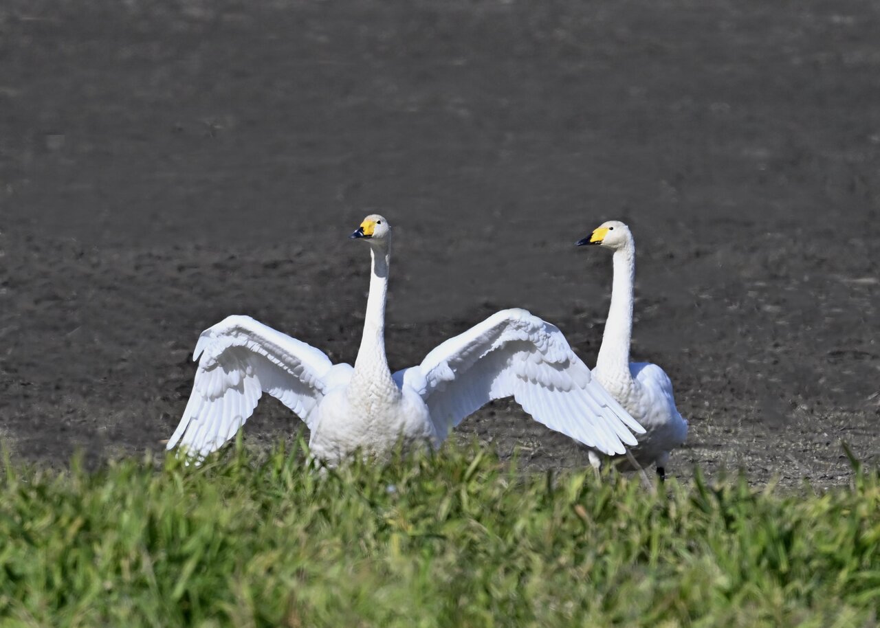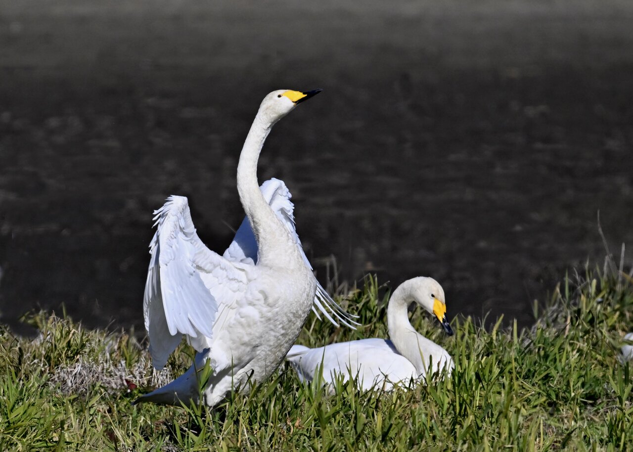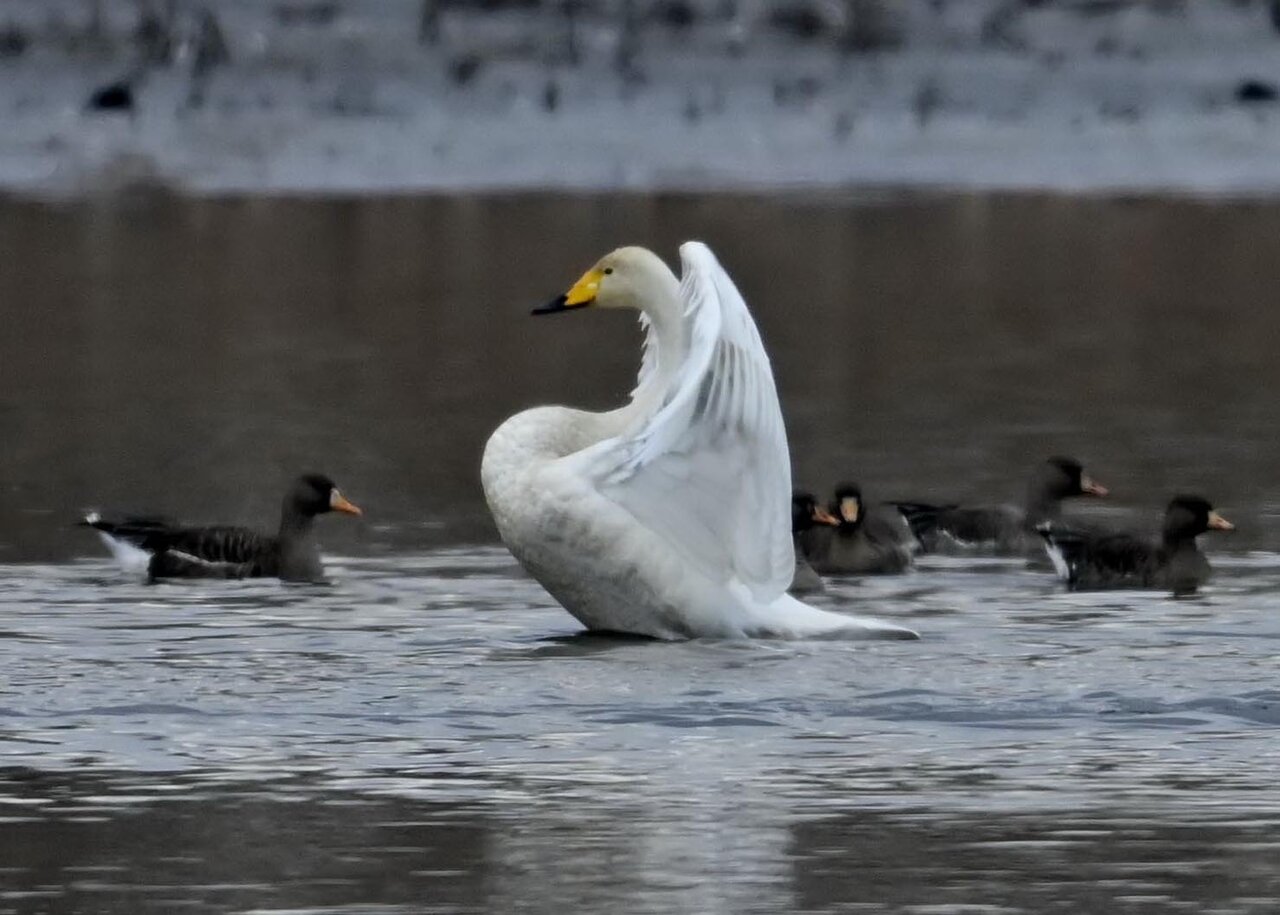 毎年やって来るアメリカコハクチョウのペアーもまだ飛来して無く、オオハクチョウとコハクチョウのみが見られました。