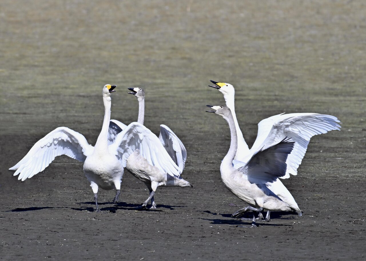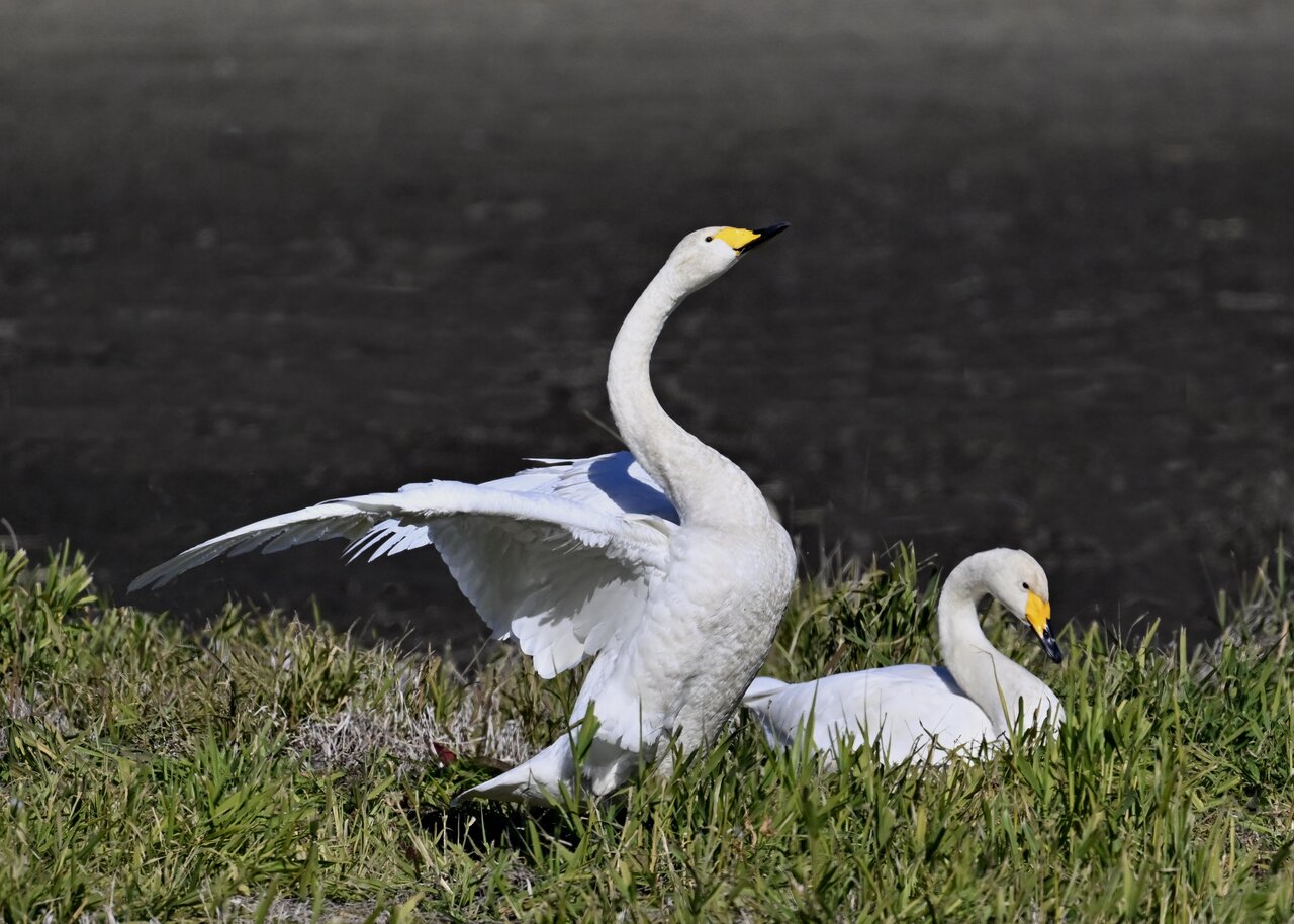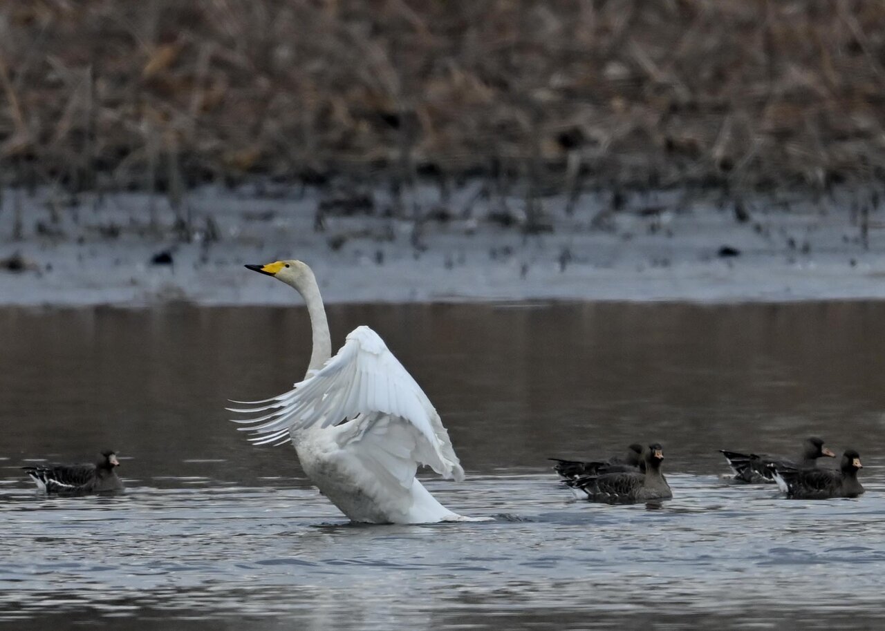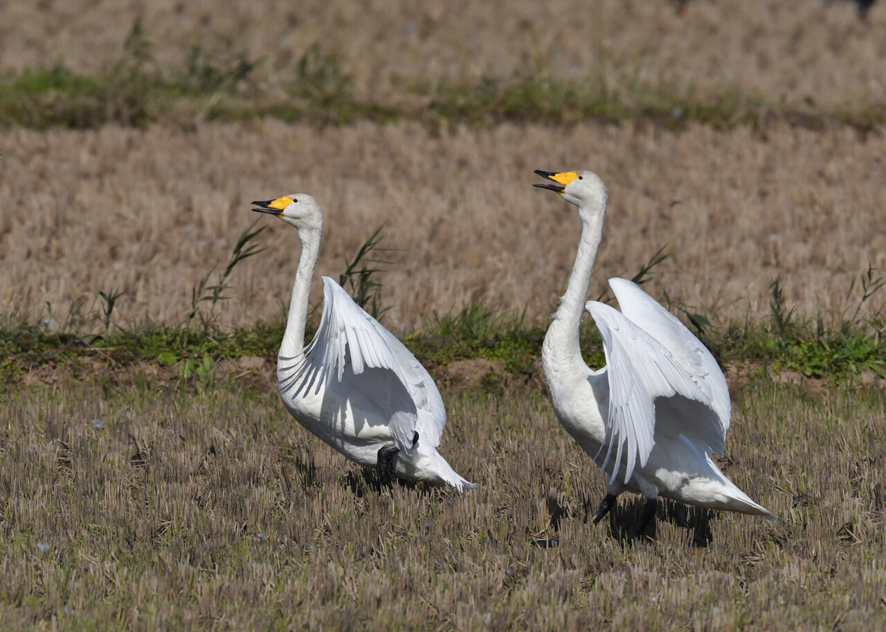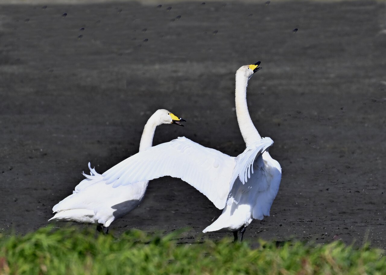 毎年やって来るアメリカコハクチョウのペアーもまだ飛来して無く、オオハクチョウとコハクチョウのみが見られました。