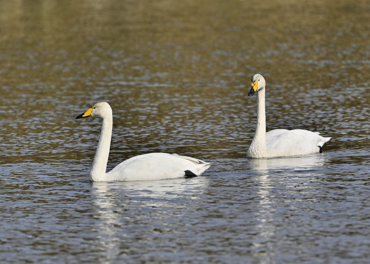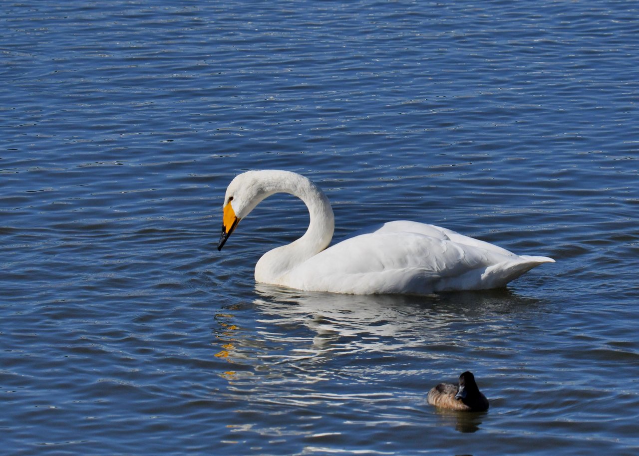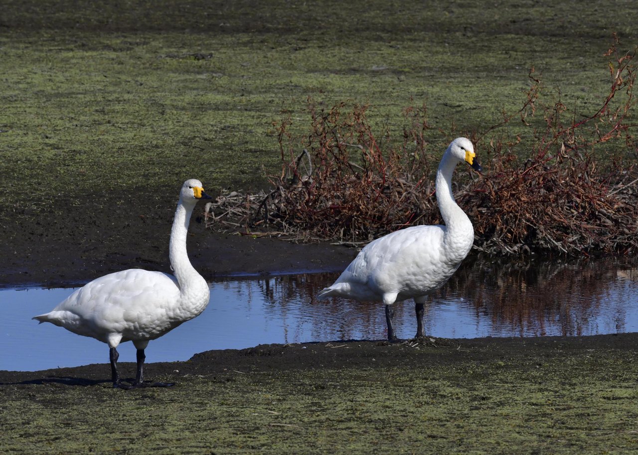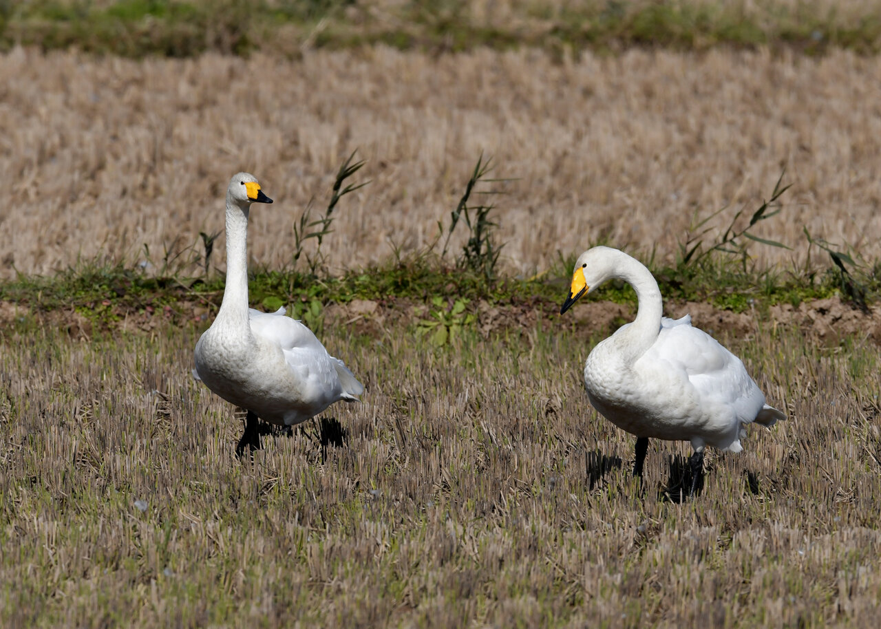 毎年やって来るアメリカコハクチョウのペアーもまだ飛来して無く、オオハクチョウとコハクチョウのみが見られました。