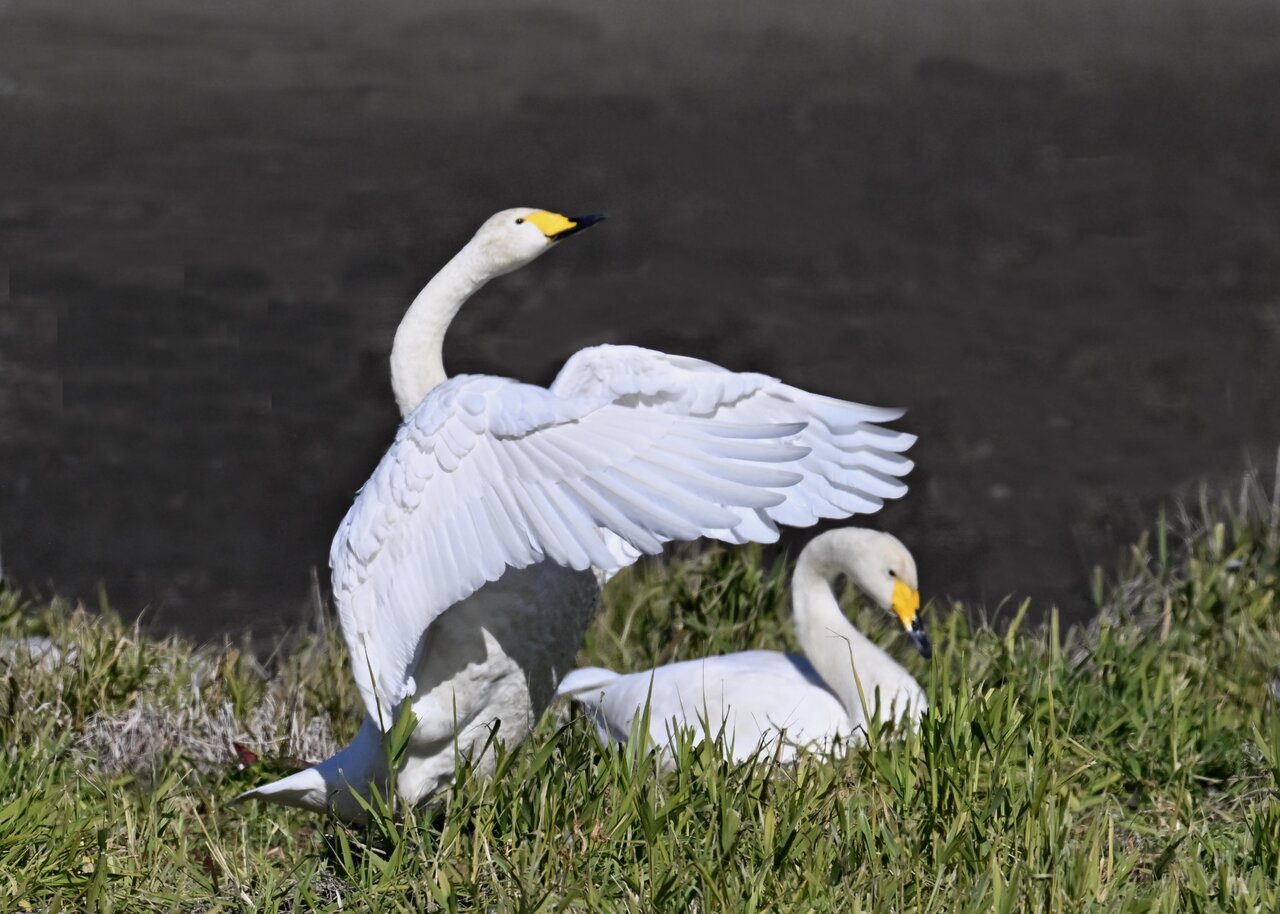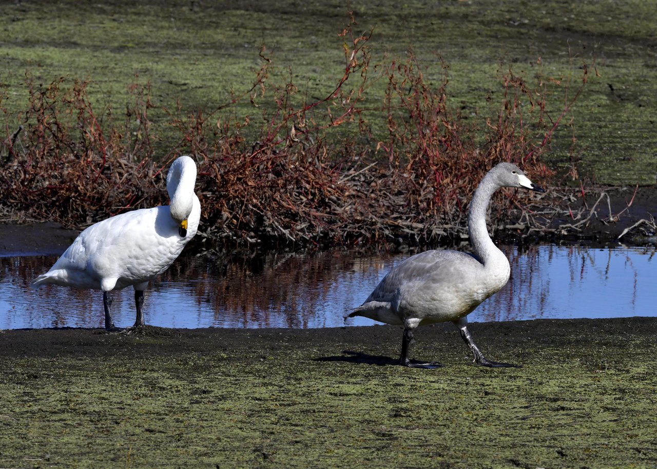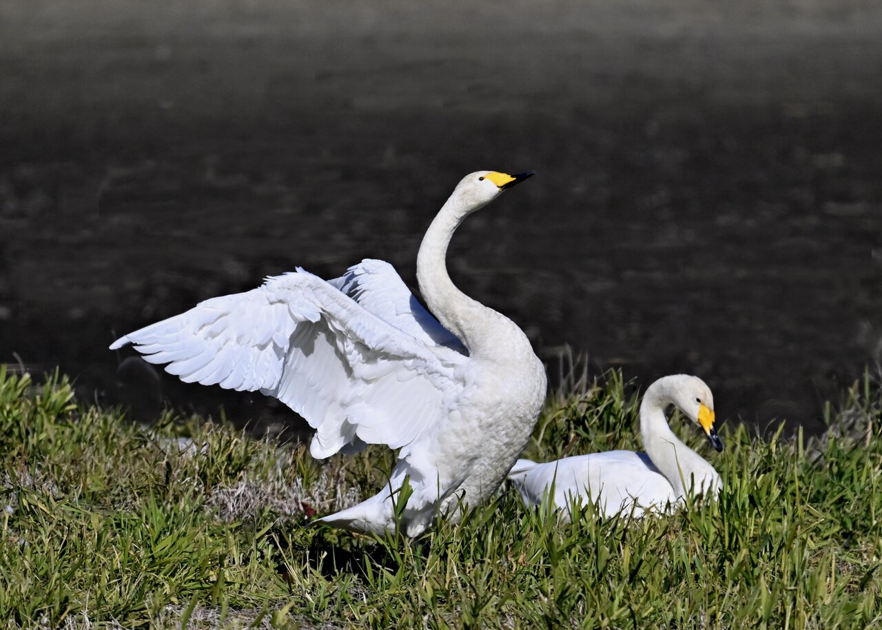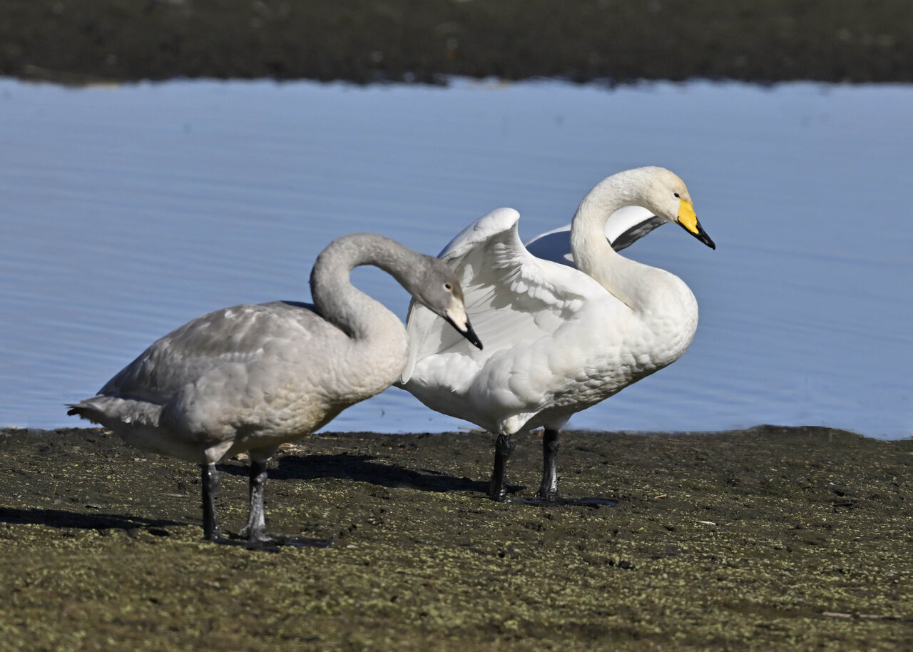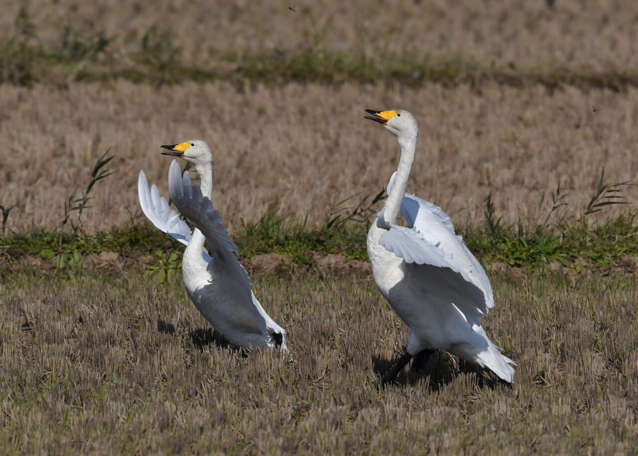 毎年やって来るアメリカコハクチョウのペアーもまだ飛来して無く、オオハクチョウとコハクチョウのみが見られました。